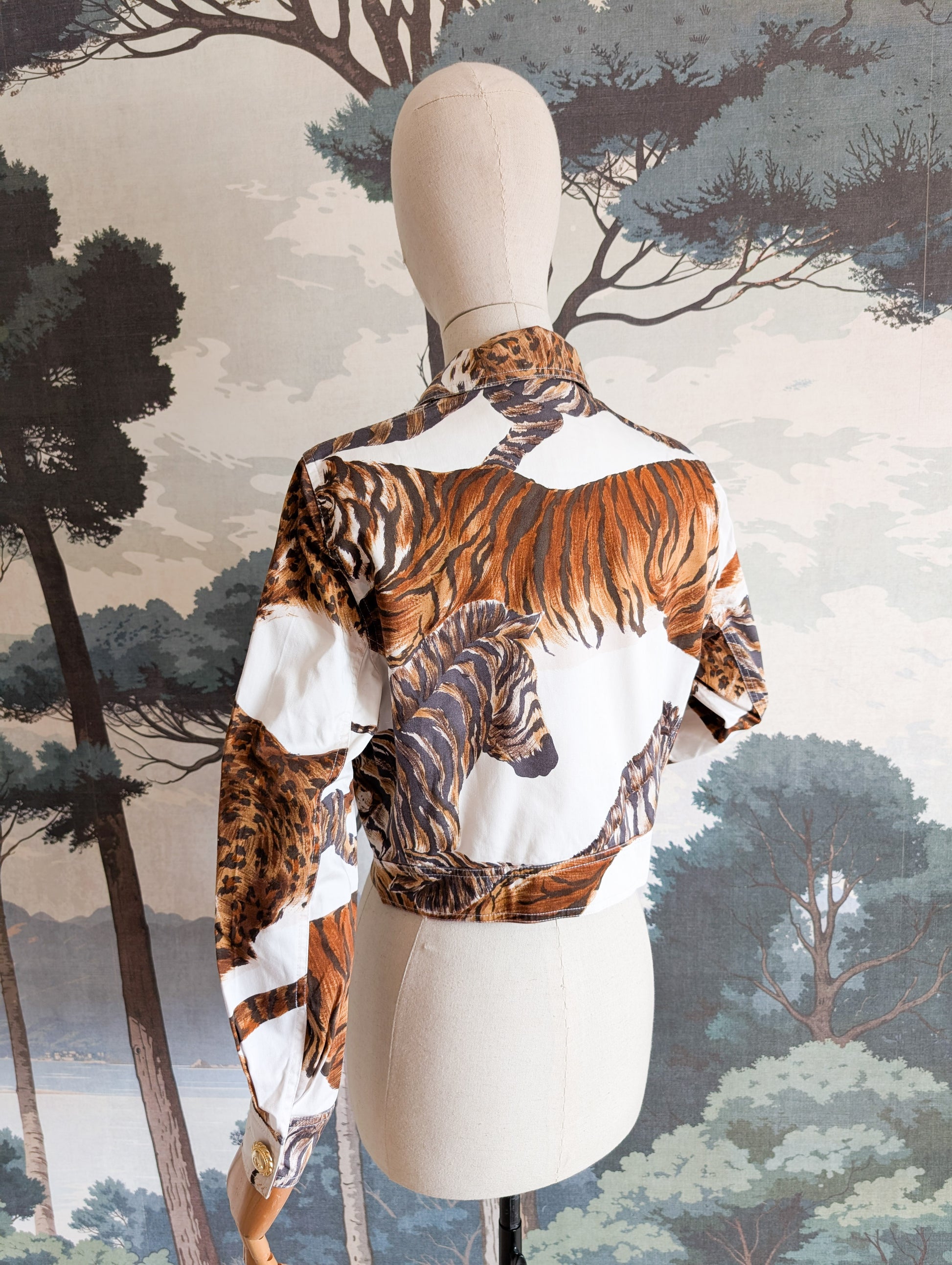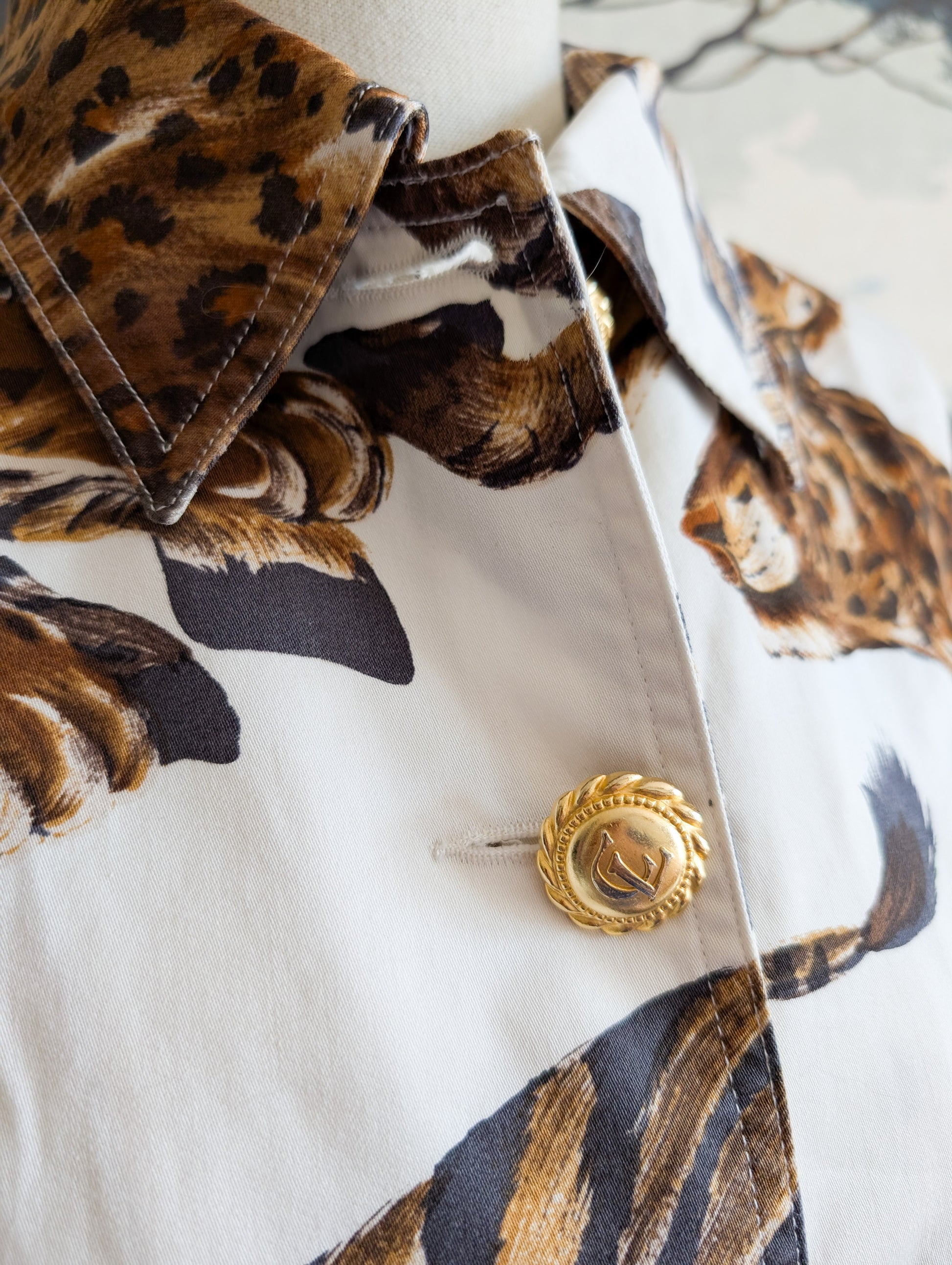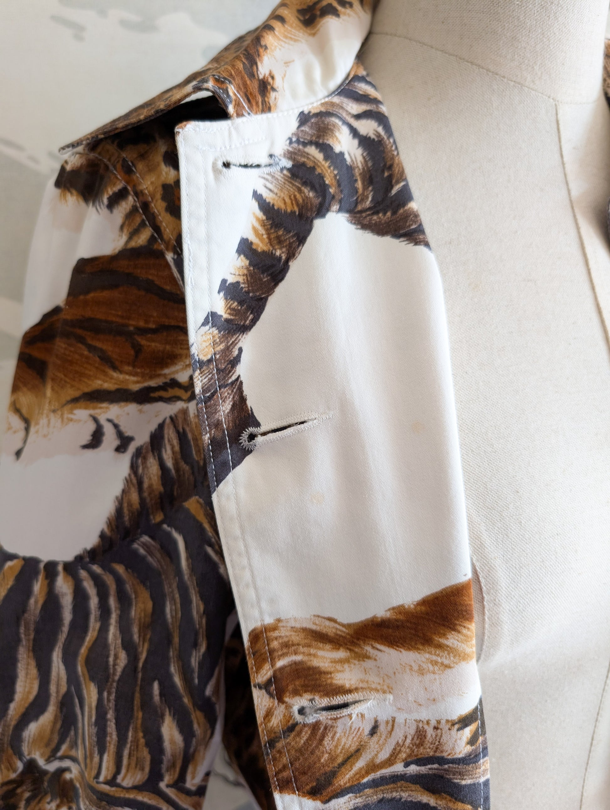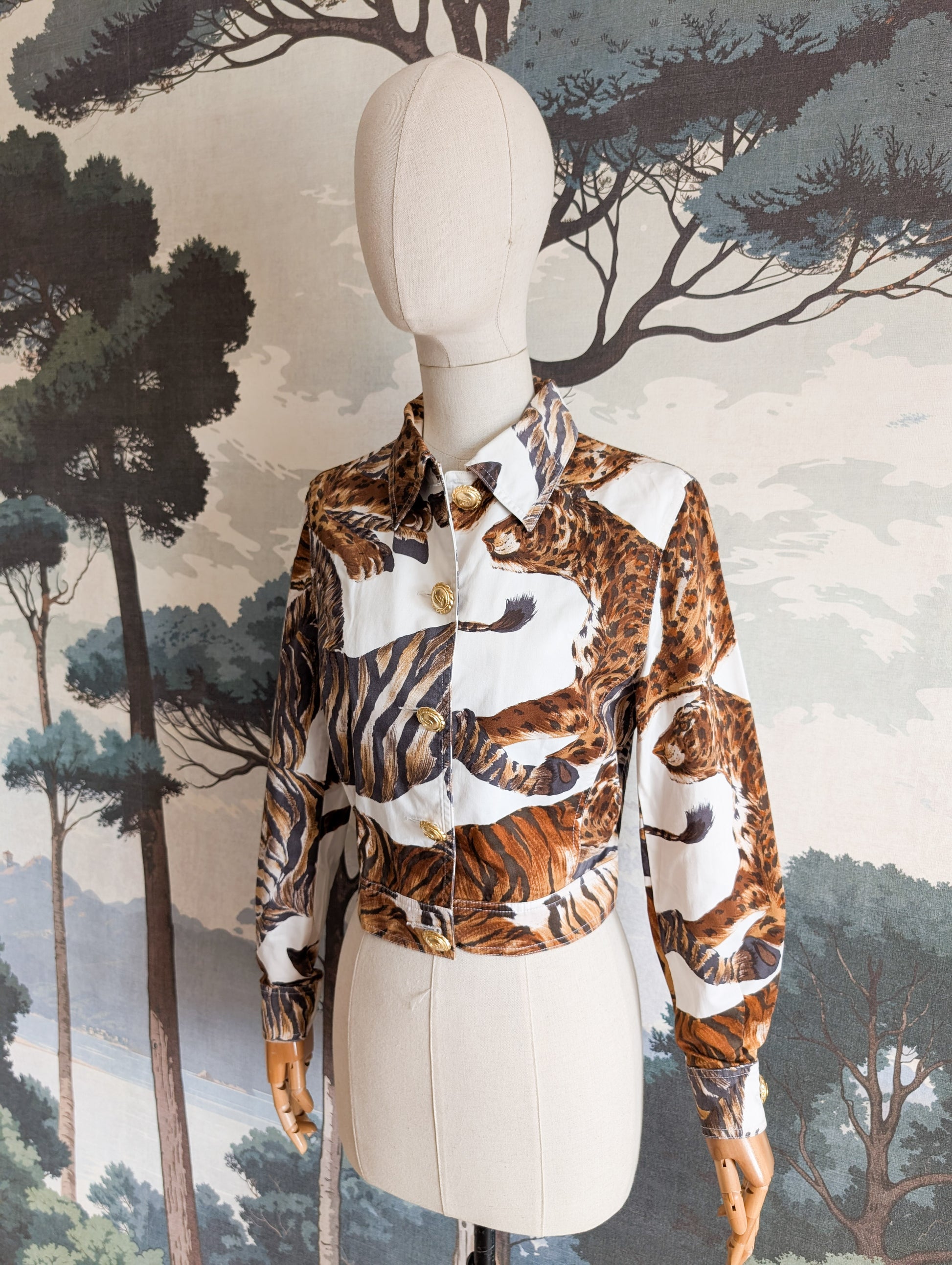 L'imprimé est absolument fantastique, iconique du travail de Christian linares. On retrouve un très beau dessin, représentant une cavalcade de tigres, panthères et zèbres.
