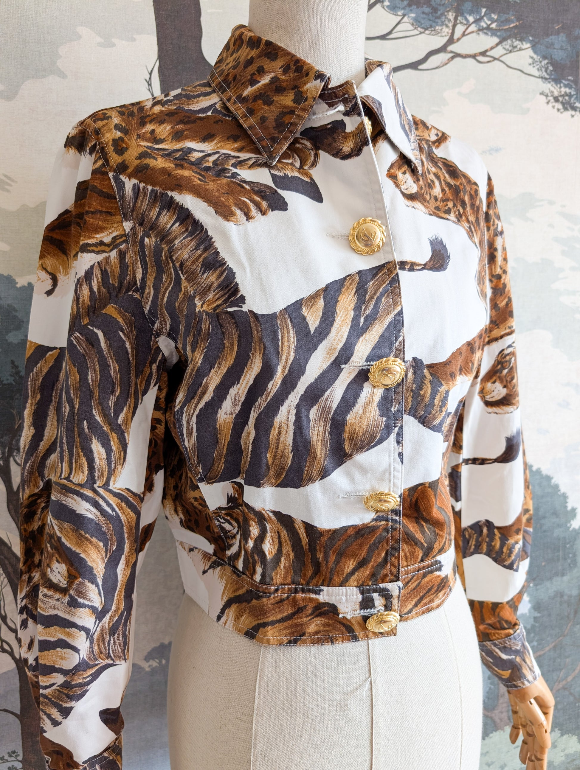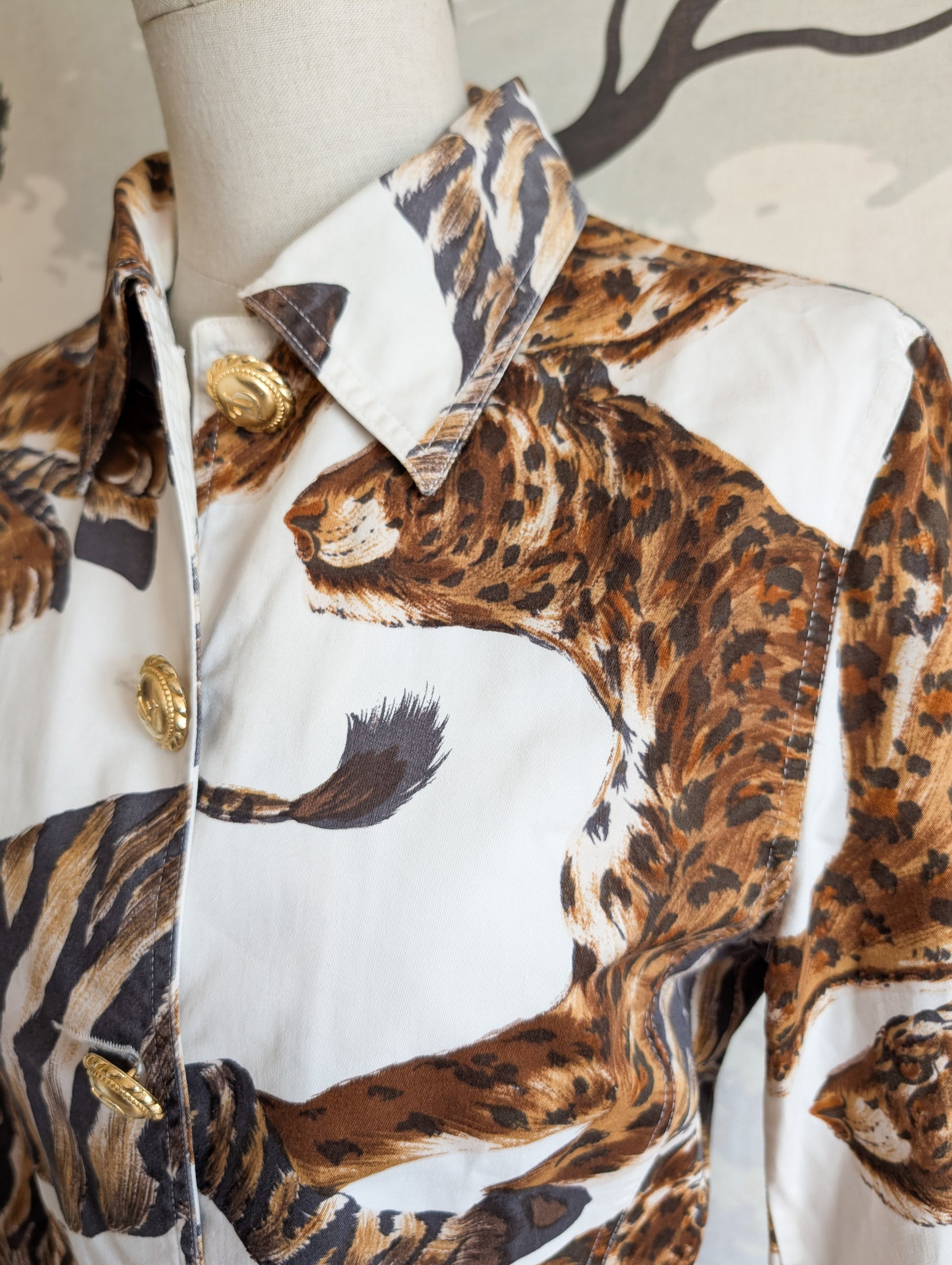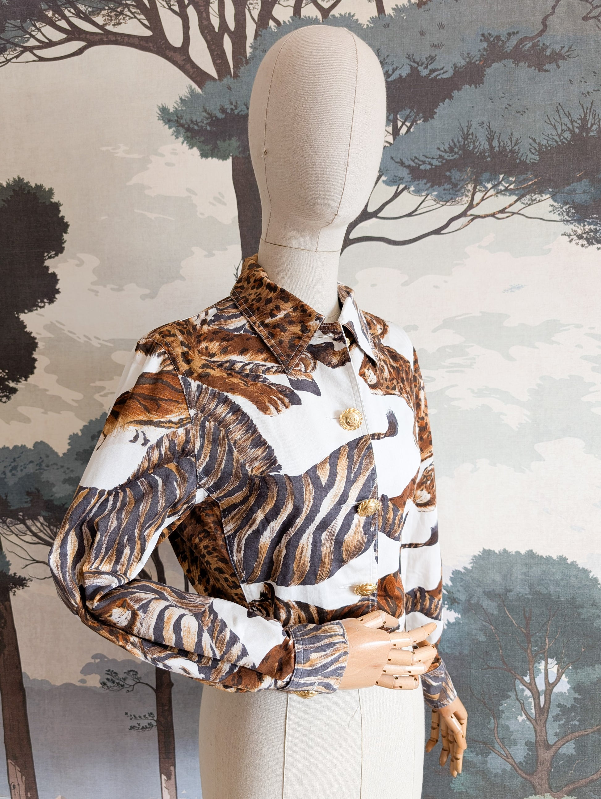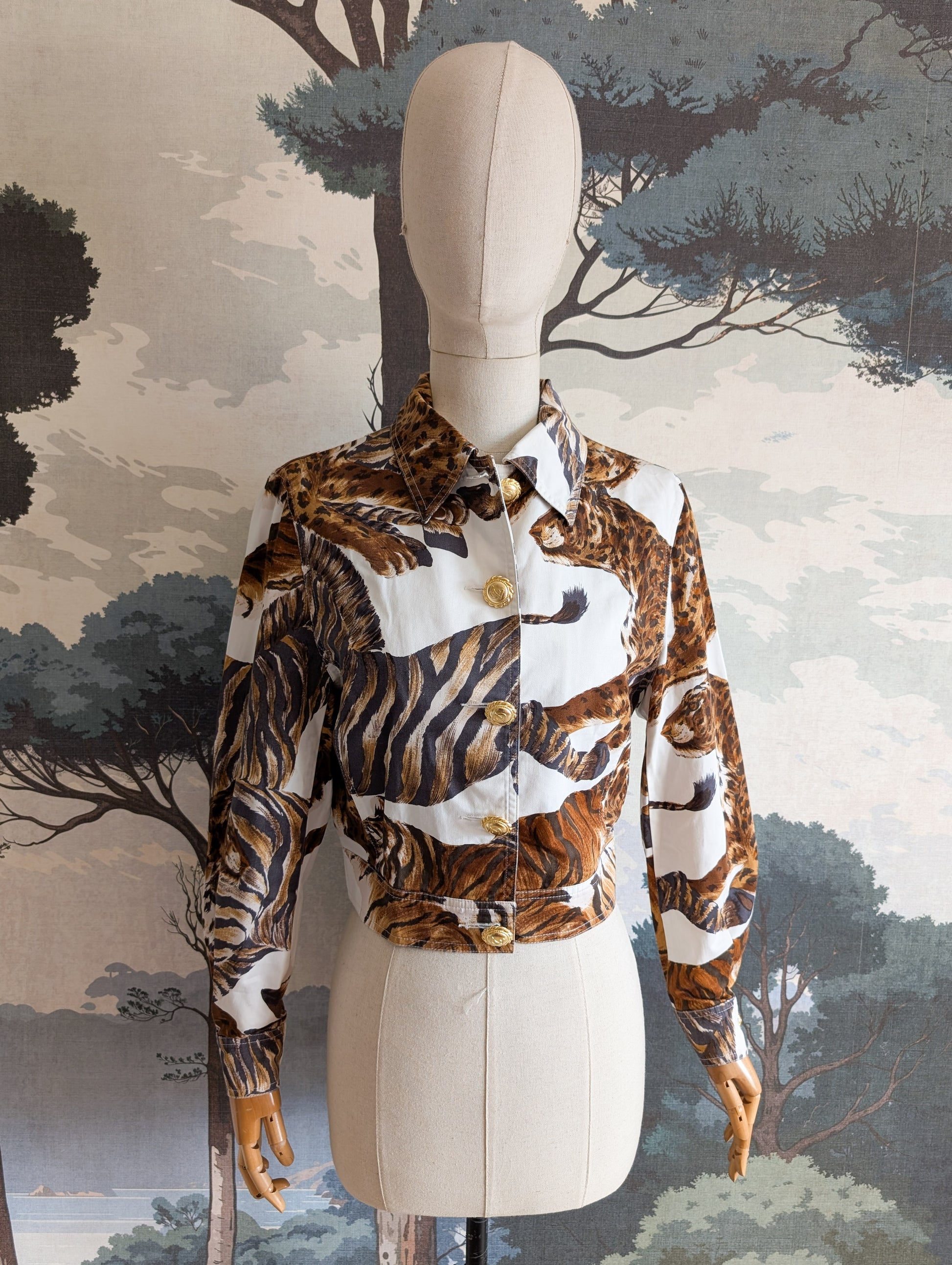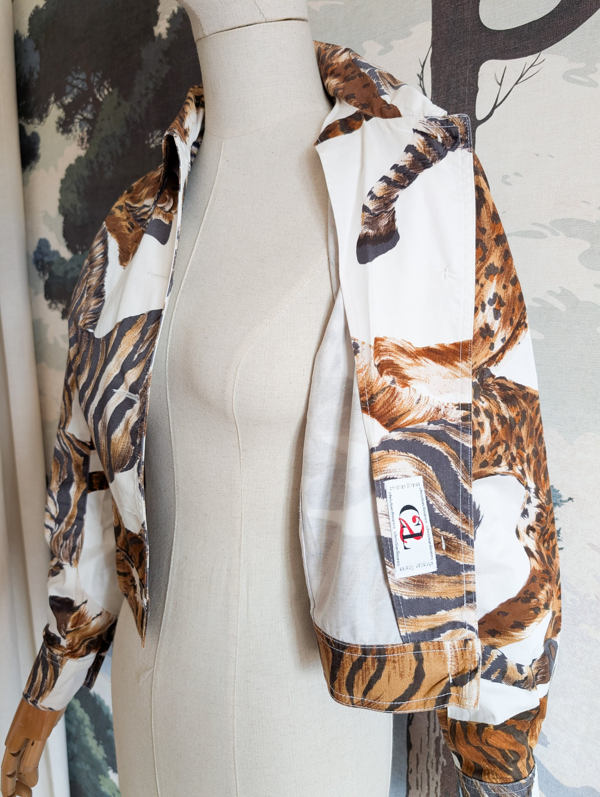 L'imprimé est absolument fantastique, iconique du travail de Christian linares. On retrouve un très beau dessin, représentant une cavalcade de tigres, panthères et zèbres.