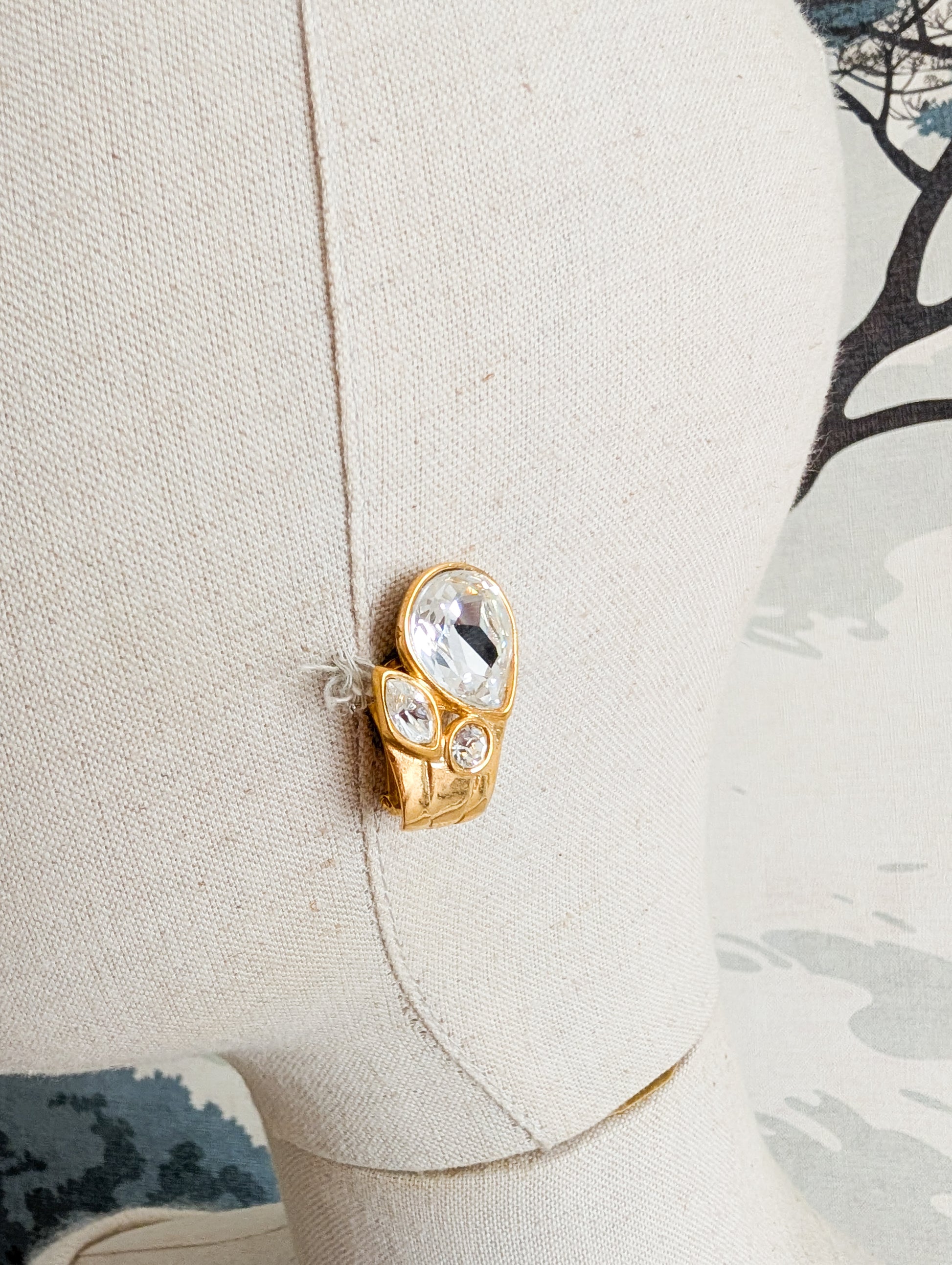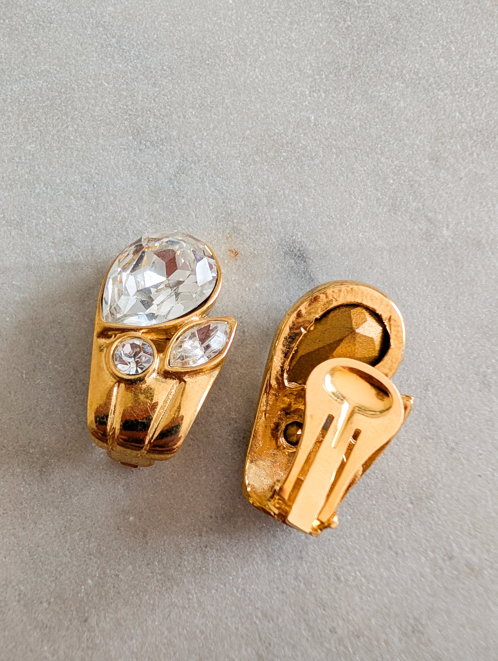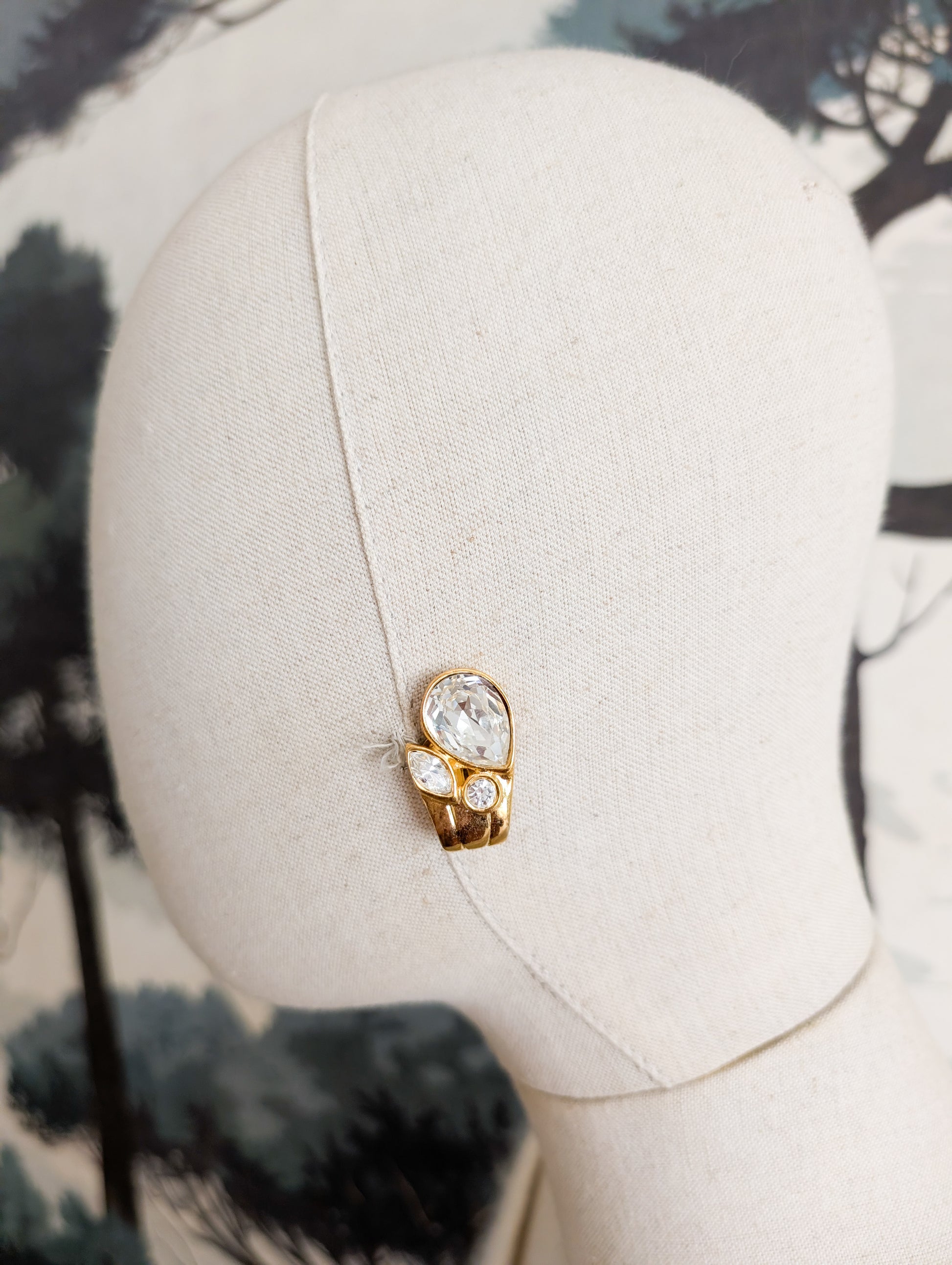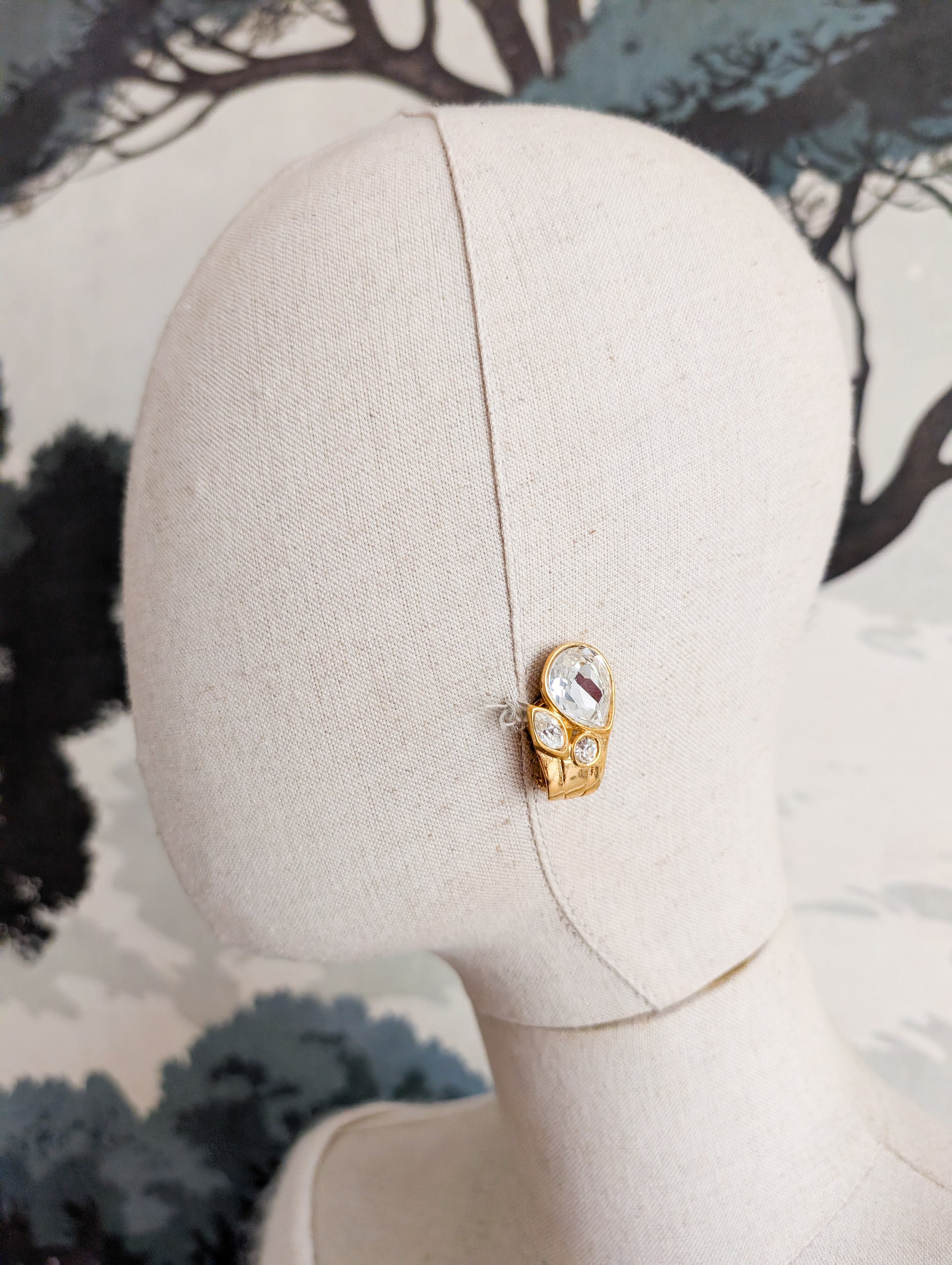 Les boucles sont en métal doré, pavées de strass blanc en verre.