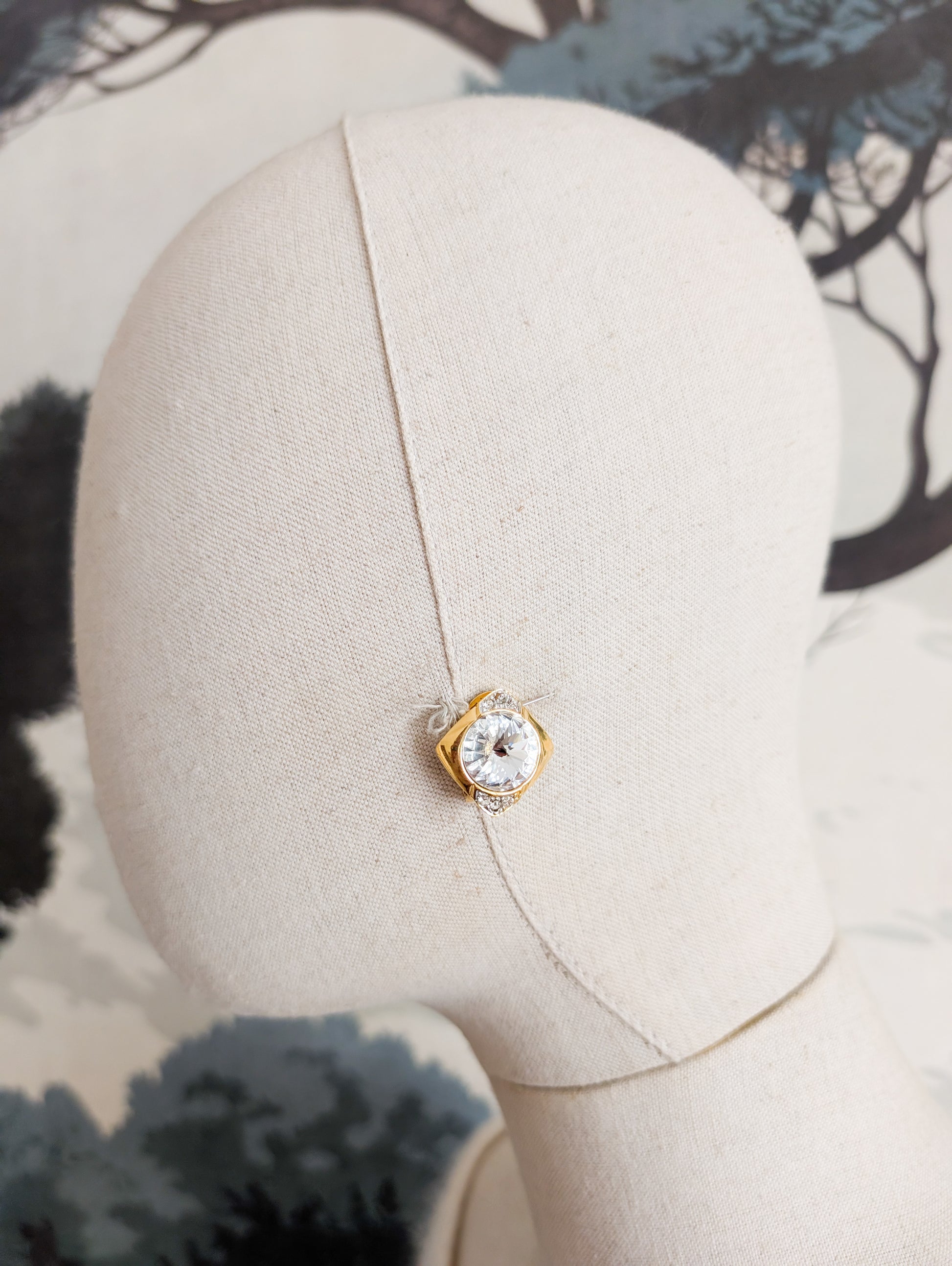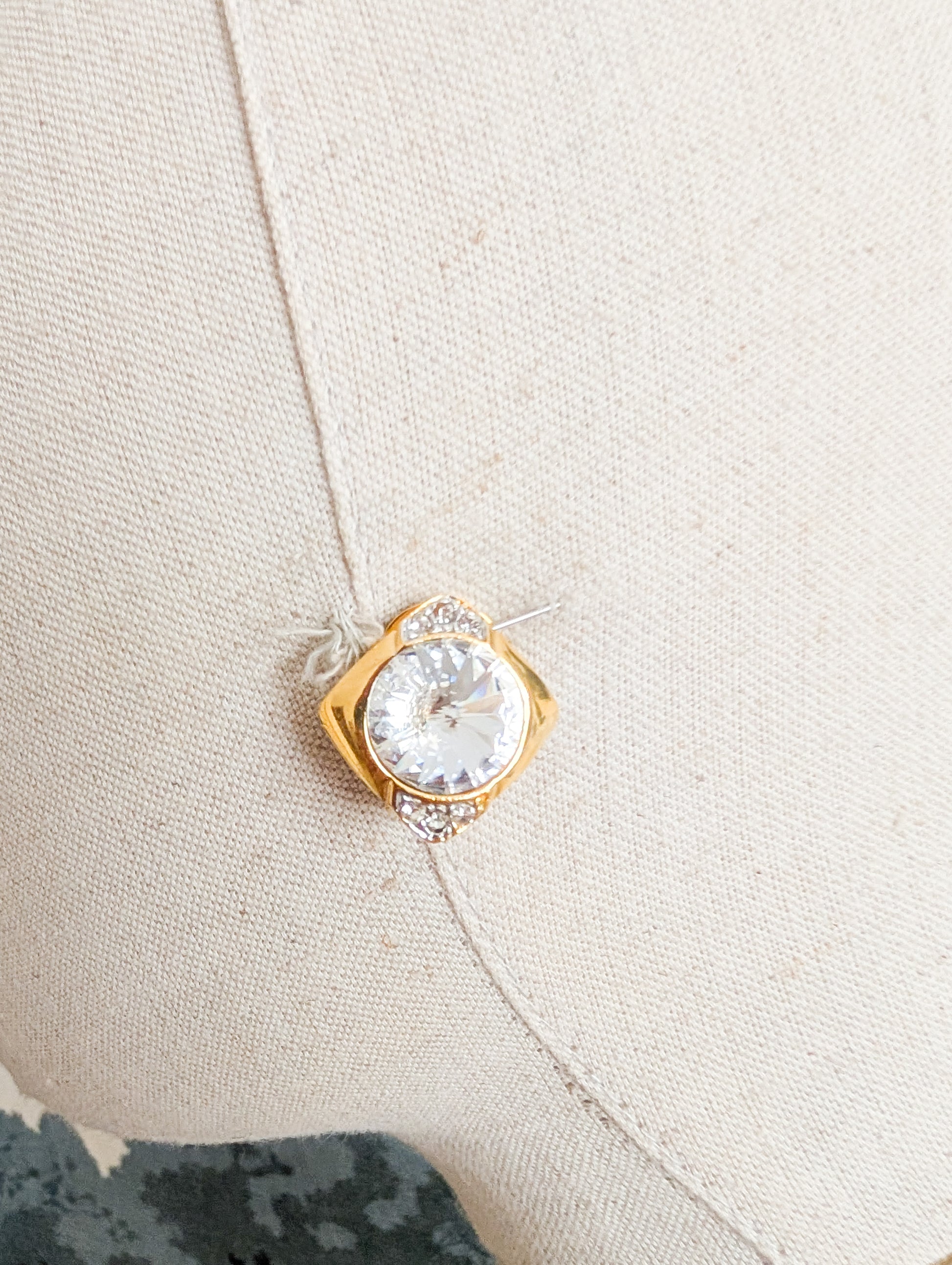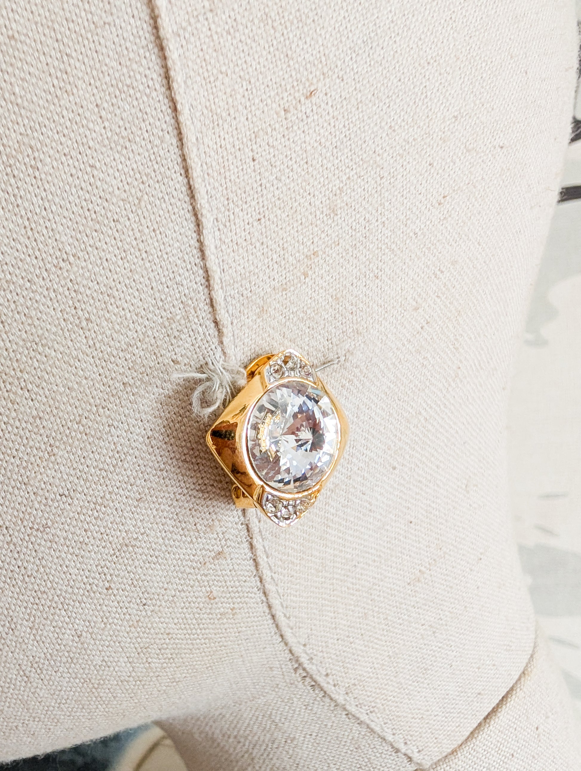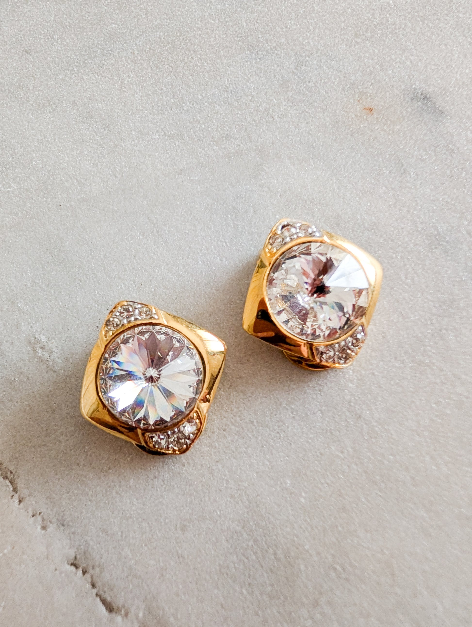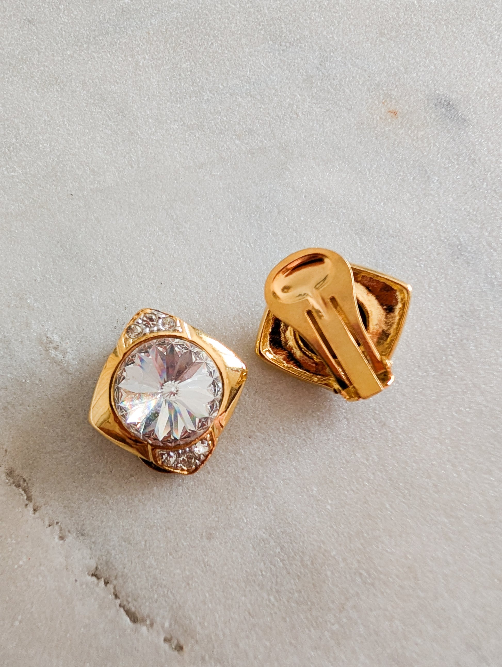 Les boucles sont en métal doré, pavées de strass blanc en verre.