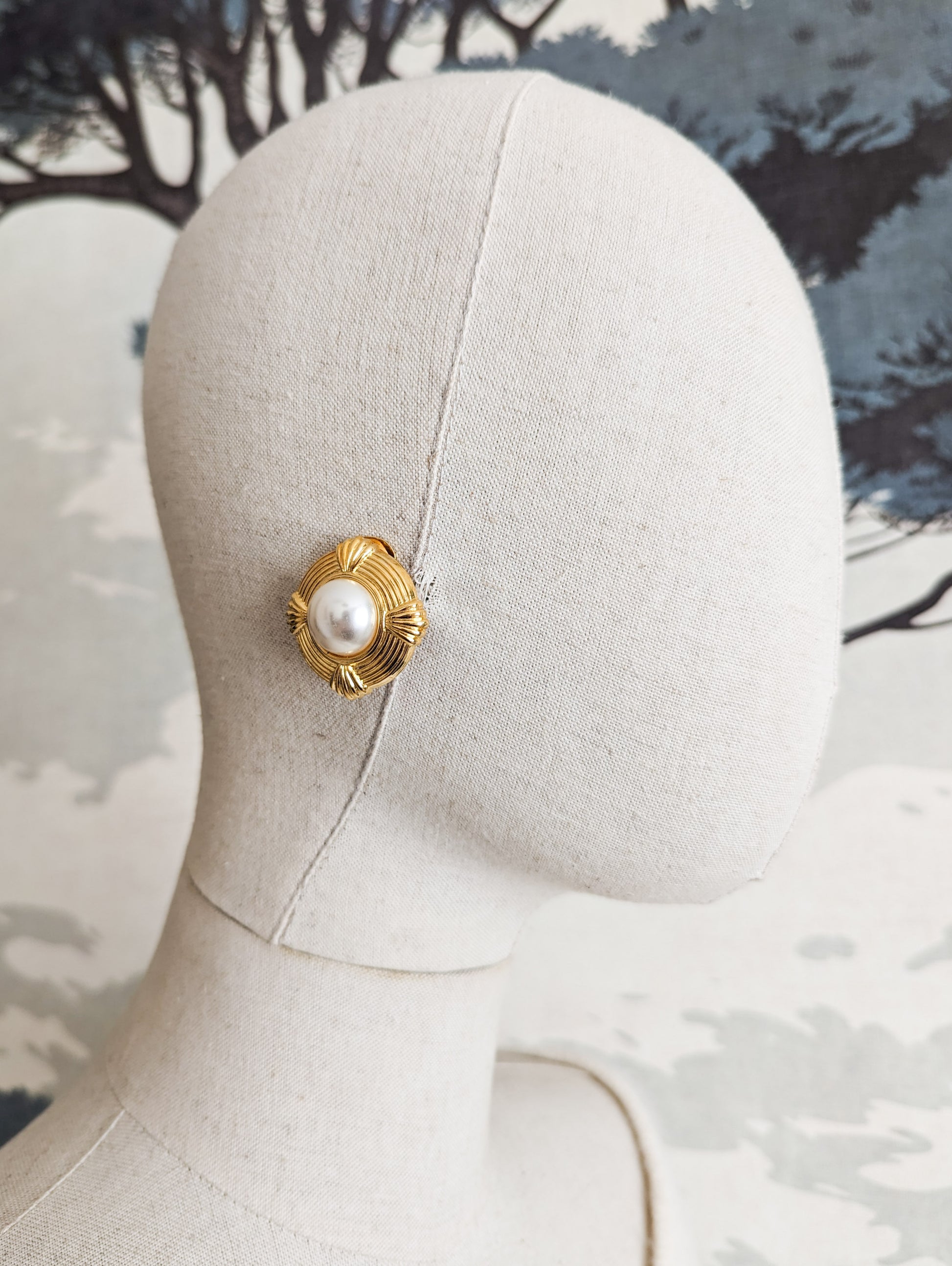 Les boucles sont en metal doré. Elles portent une grande perle nacrée blanche en plastique.