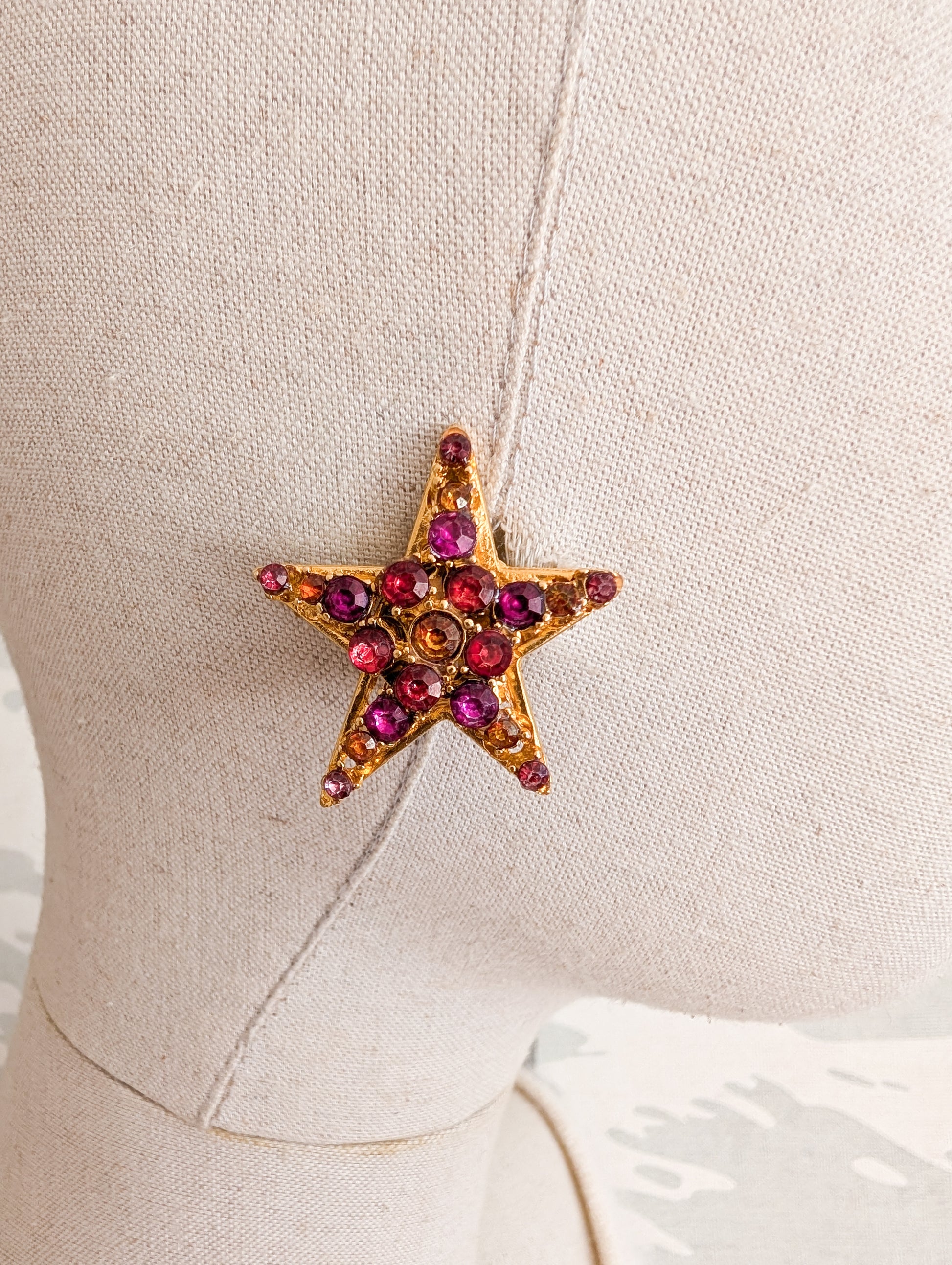 Magnifique paire de boucles d'oreilles à clips datant des années 80. Elles présentent une forme d'étoile en métal doré.