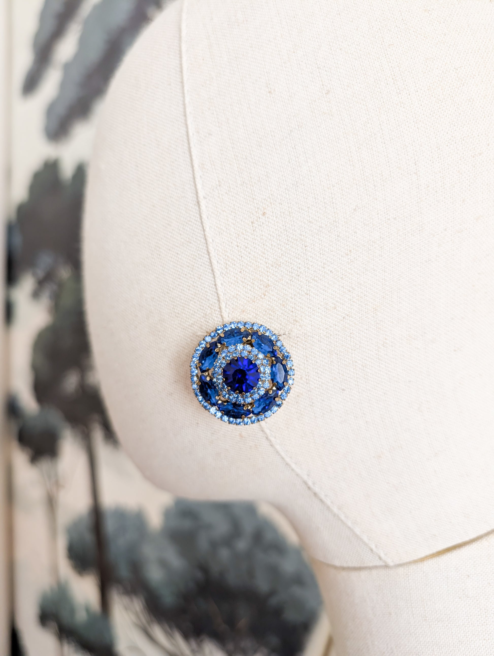 Elles sont pavées de strass en verre de deux teintes de bleu.