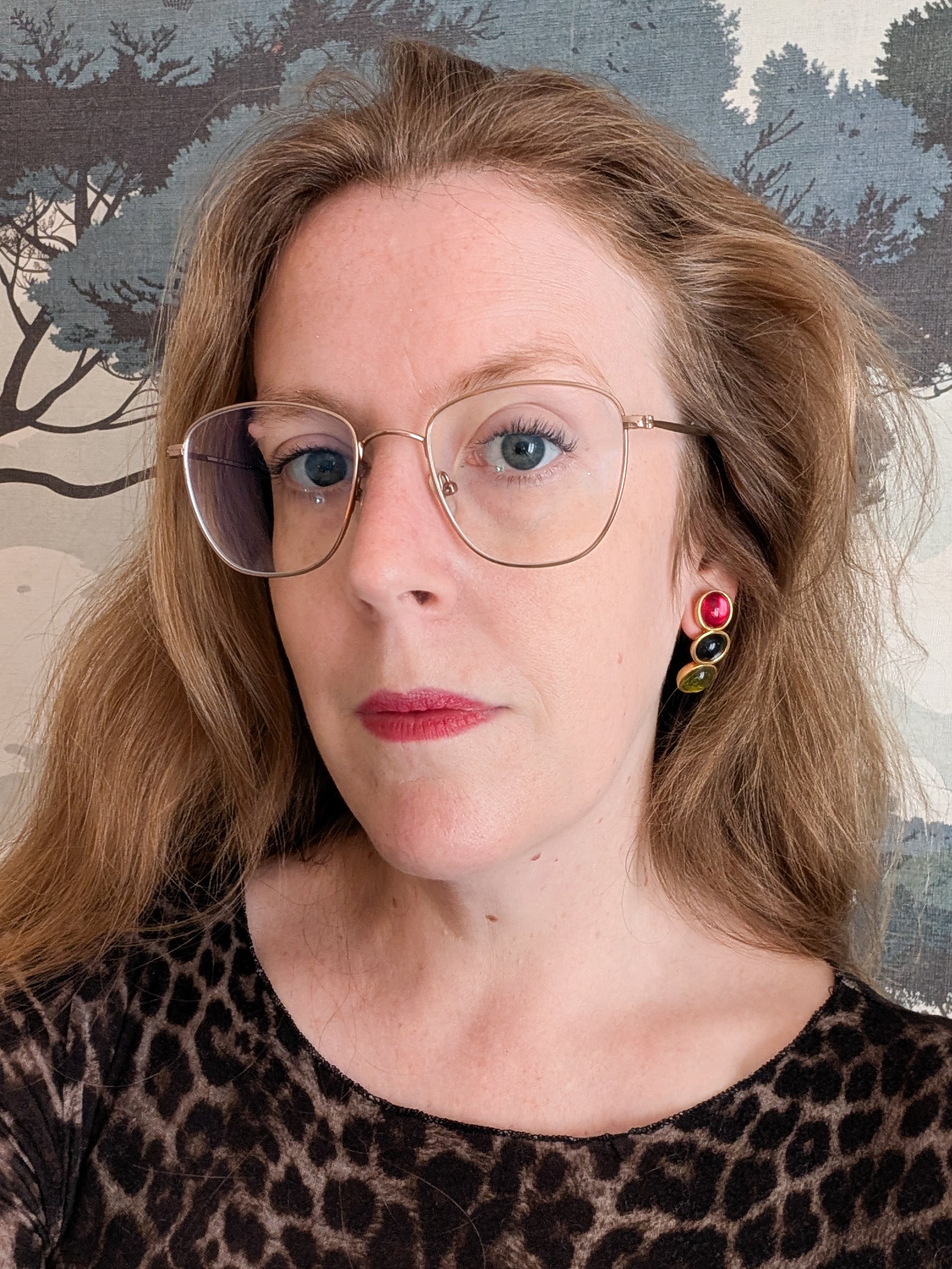 Elles sont en métal doré, pavées de cabochon roses, bleus et verts. L'accord de couleur est très beau!