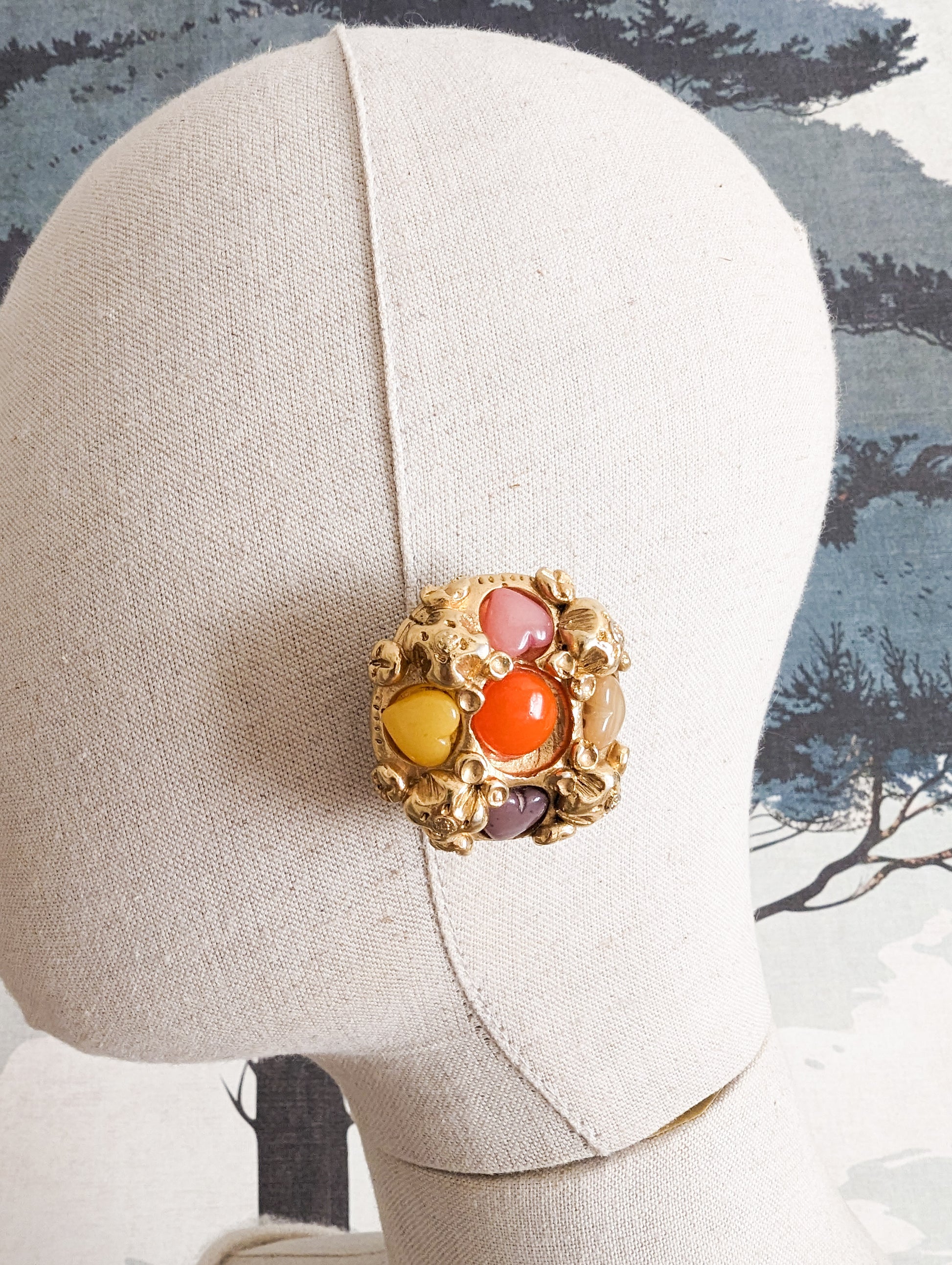 J'aime beaucoup les petits cabochons employés ici, particulièrement ceux autour du cabochon central qui sont en forme de cœurs !