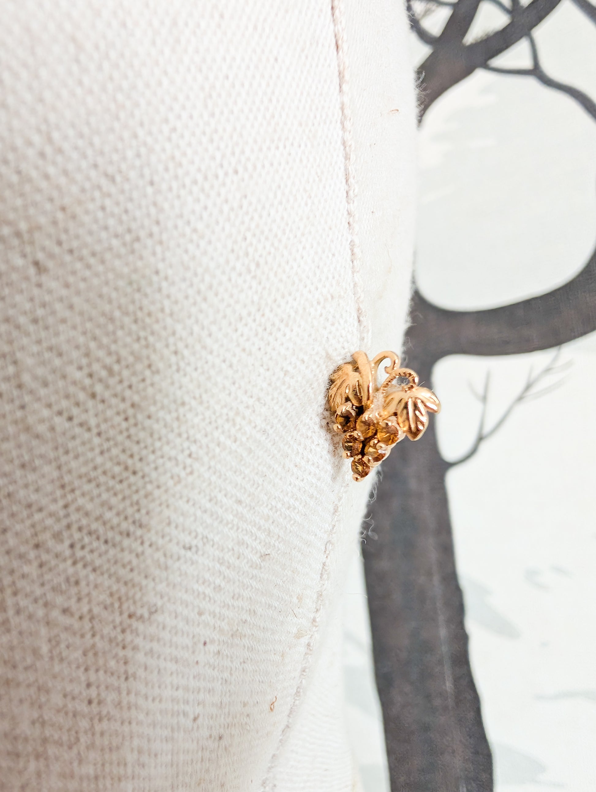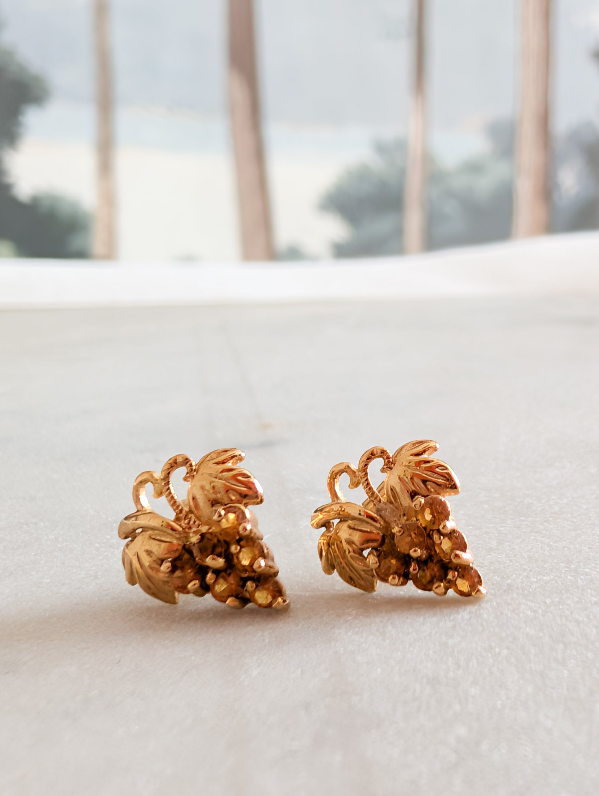 Elles représentent chacune une grappe de raisin. Les raisins sont figurées par de toutnpetits strass ambre. Chaque strass est serti à la main. Un travail long et minutieux qui témoigne la qualité du bijou.
