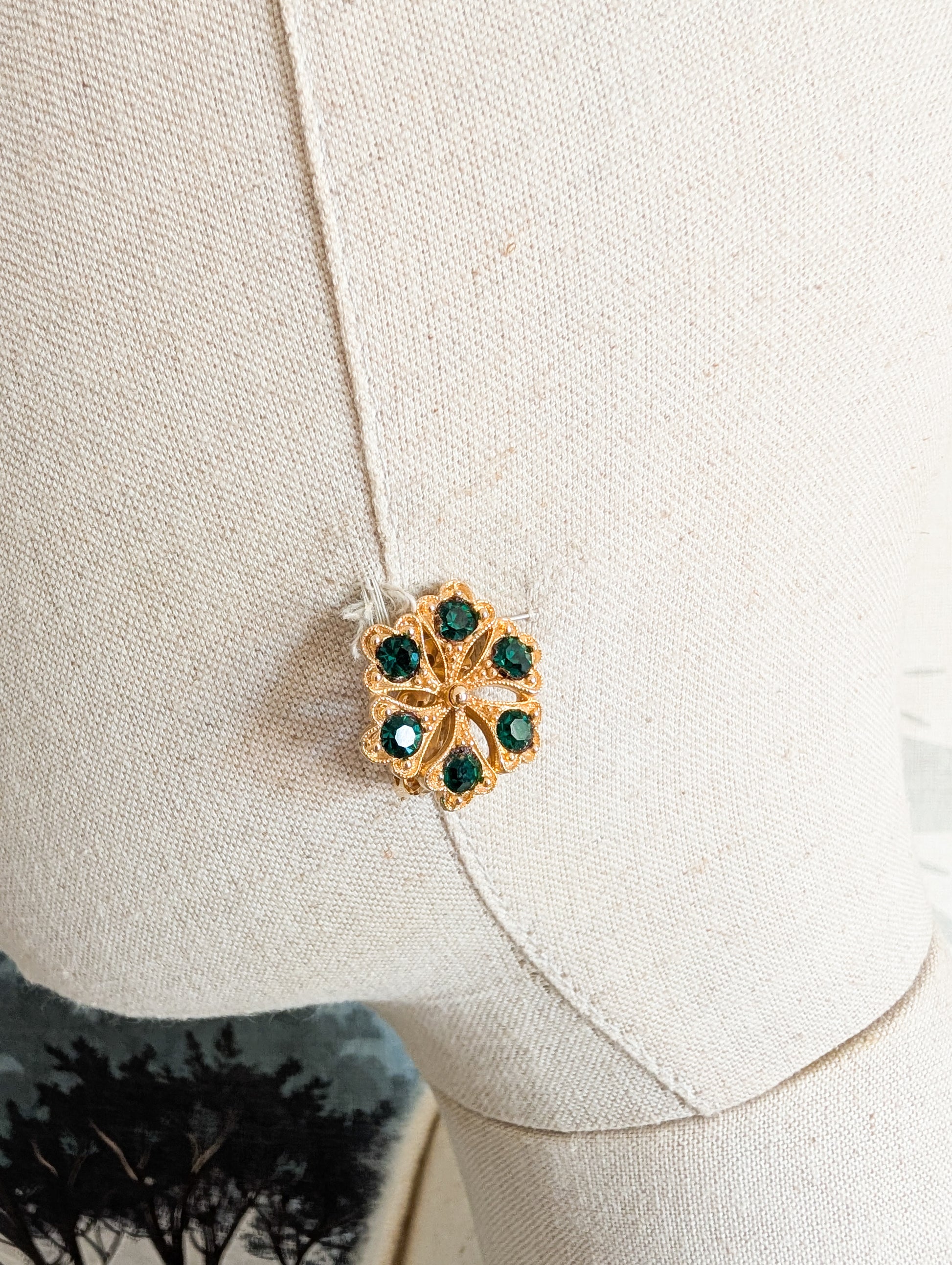 Très belle monture dorée. Elles sont pavées de strass en verre vert.