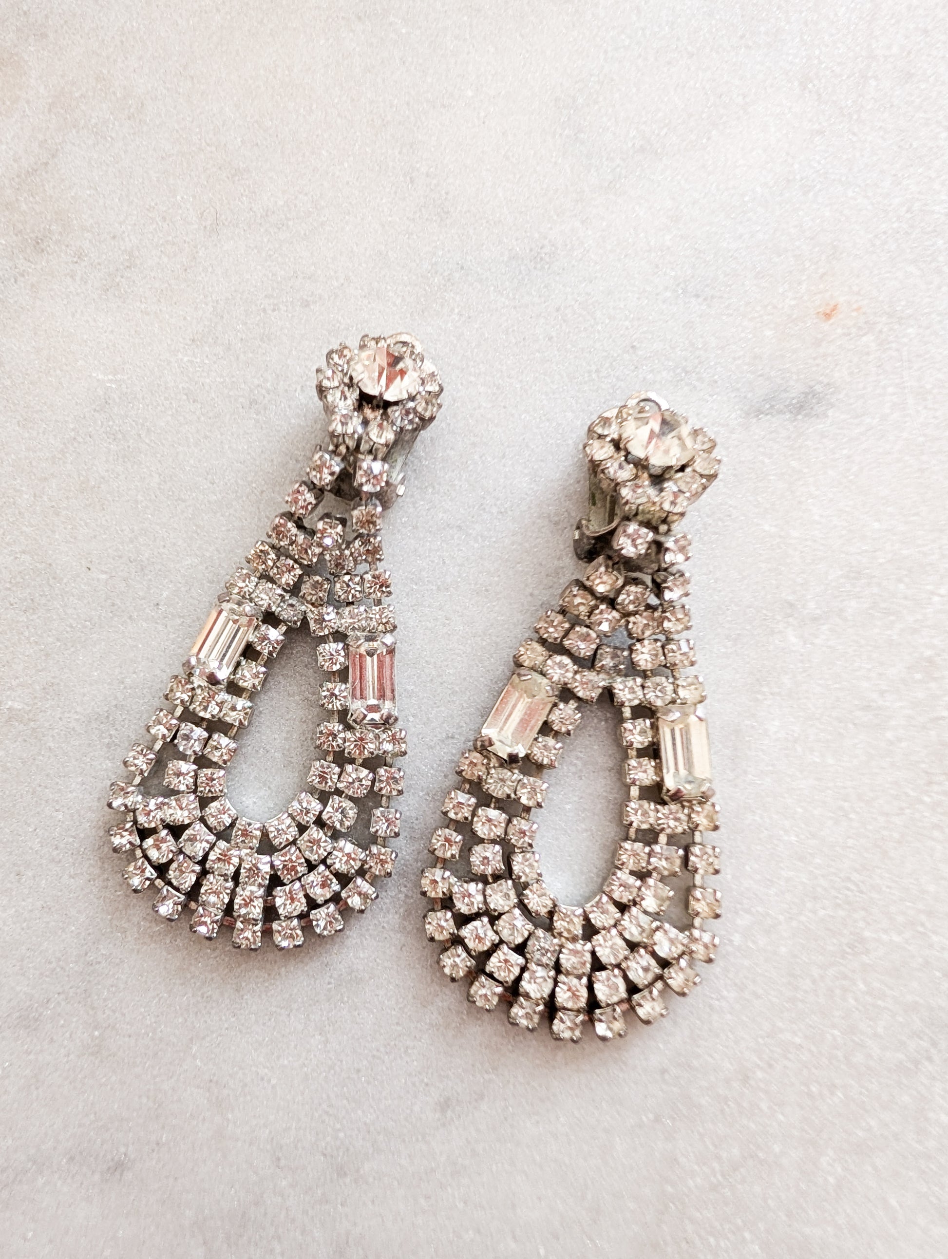 Très jolie paire de boucles d'oreilles à clips pavées de strass dites boucles Rhinestones.
