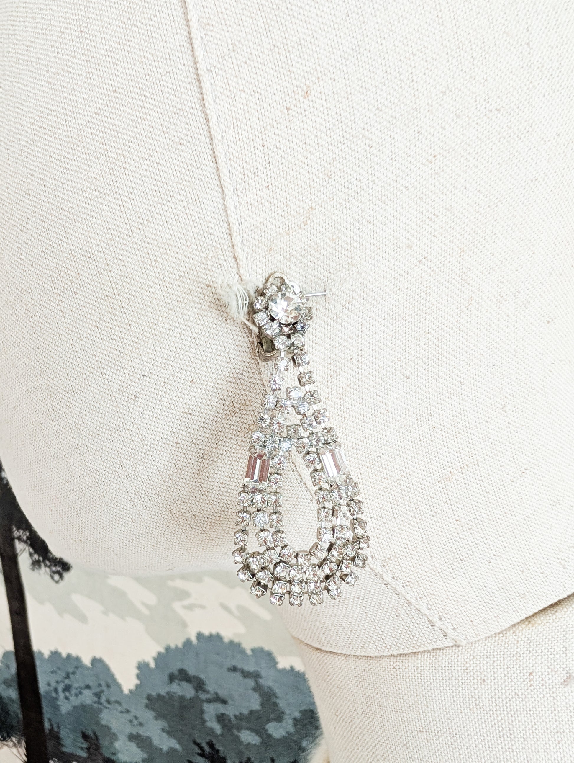 Ce type de boucles était particulièrement à la mode à cette époque. Au sortir de la guerre, les femmes n'ont pas les moyens de s'offrir des diamants. Elles se tournent vers ces jolis bijoux en verre.