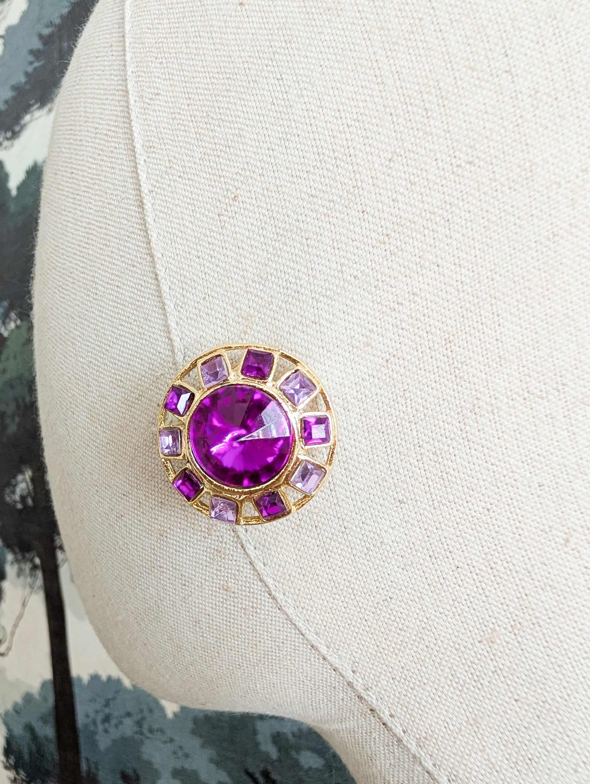 Les boucles sont en métal doré. Elles sont pavées de pierres en résine rose violettes.
