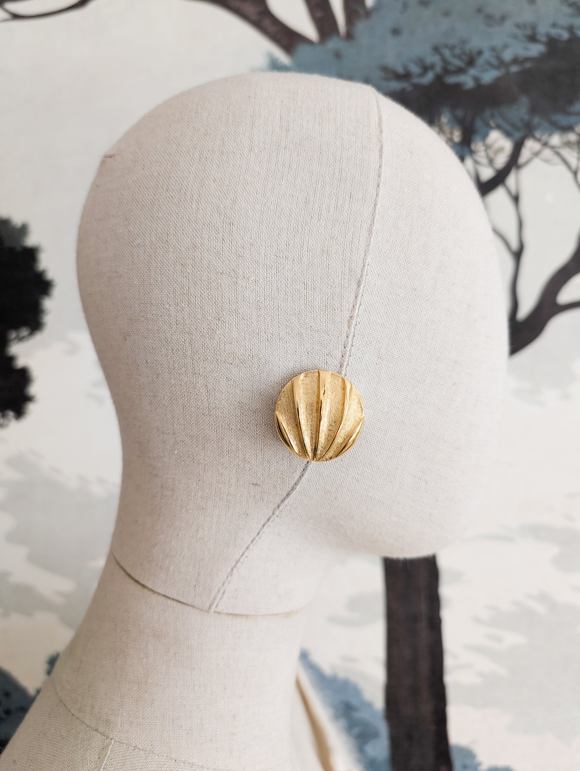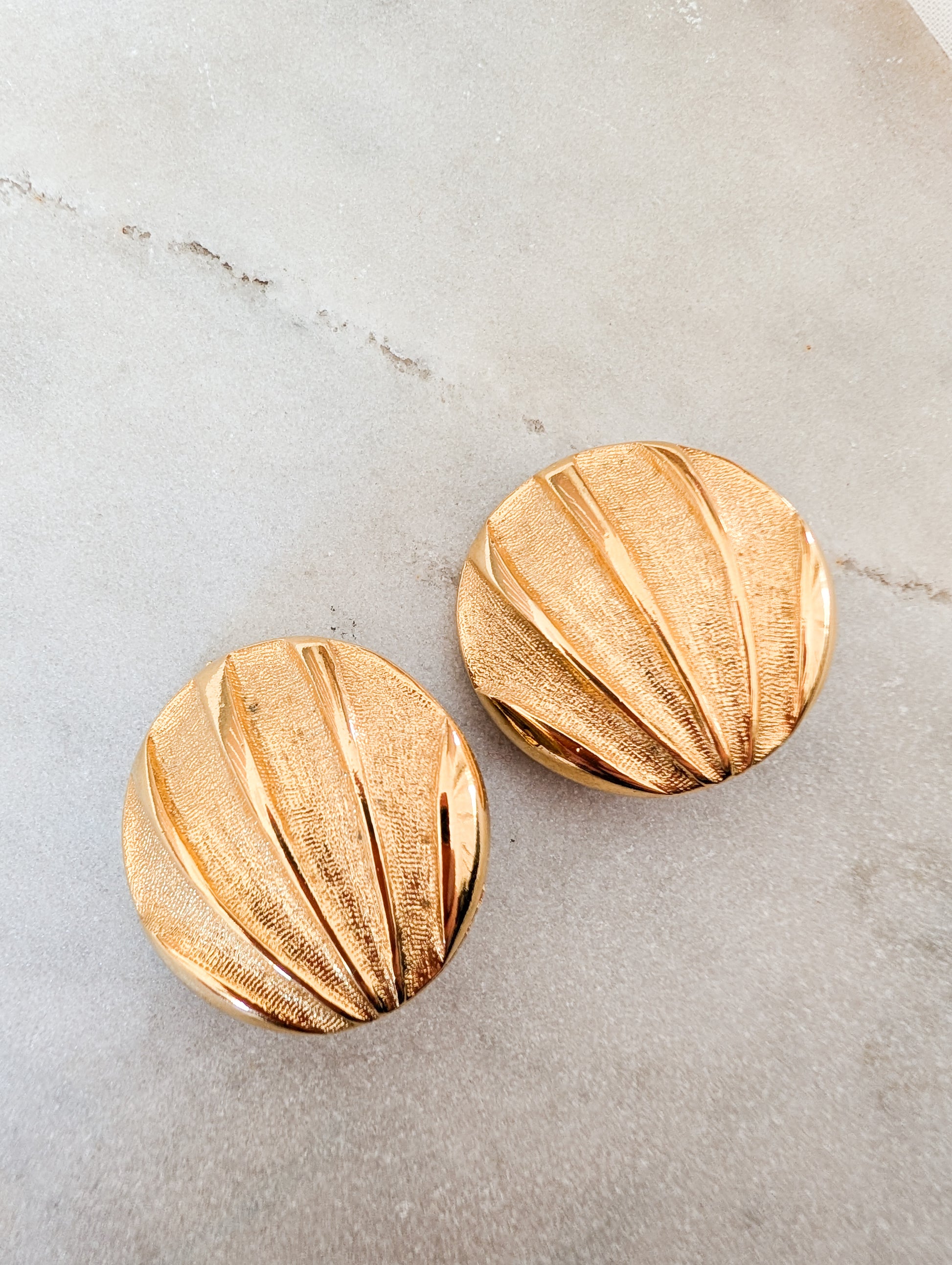 Les boucles sont en métal doré. Elles sont travaillées avec un jeu de texture entre métal brillant et métal gravé.