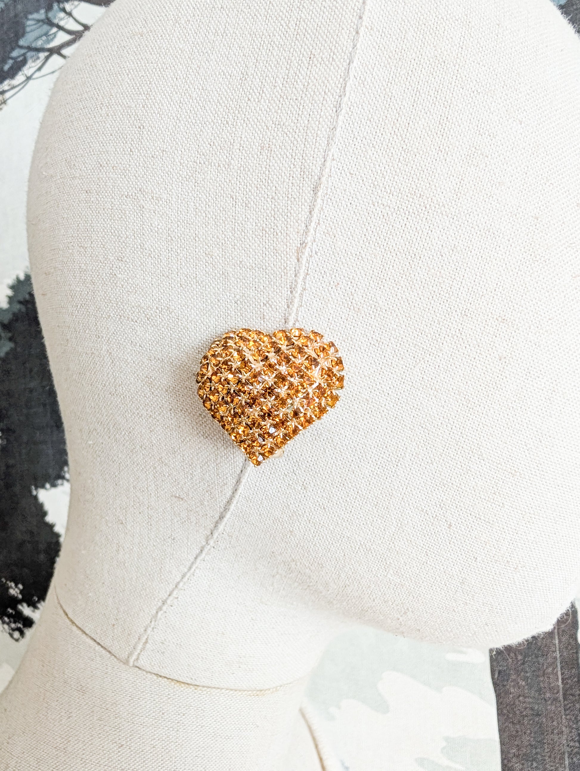 Elles sont en forme de cœur et entièrement pavées de strass en verre de couleur ambre.