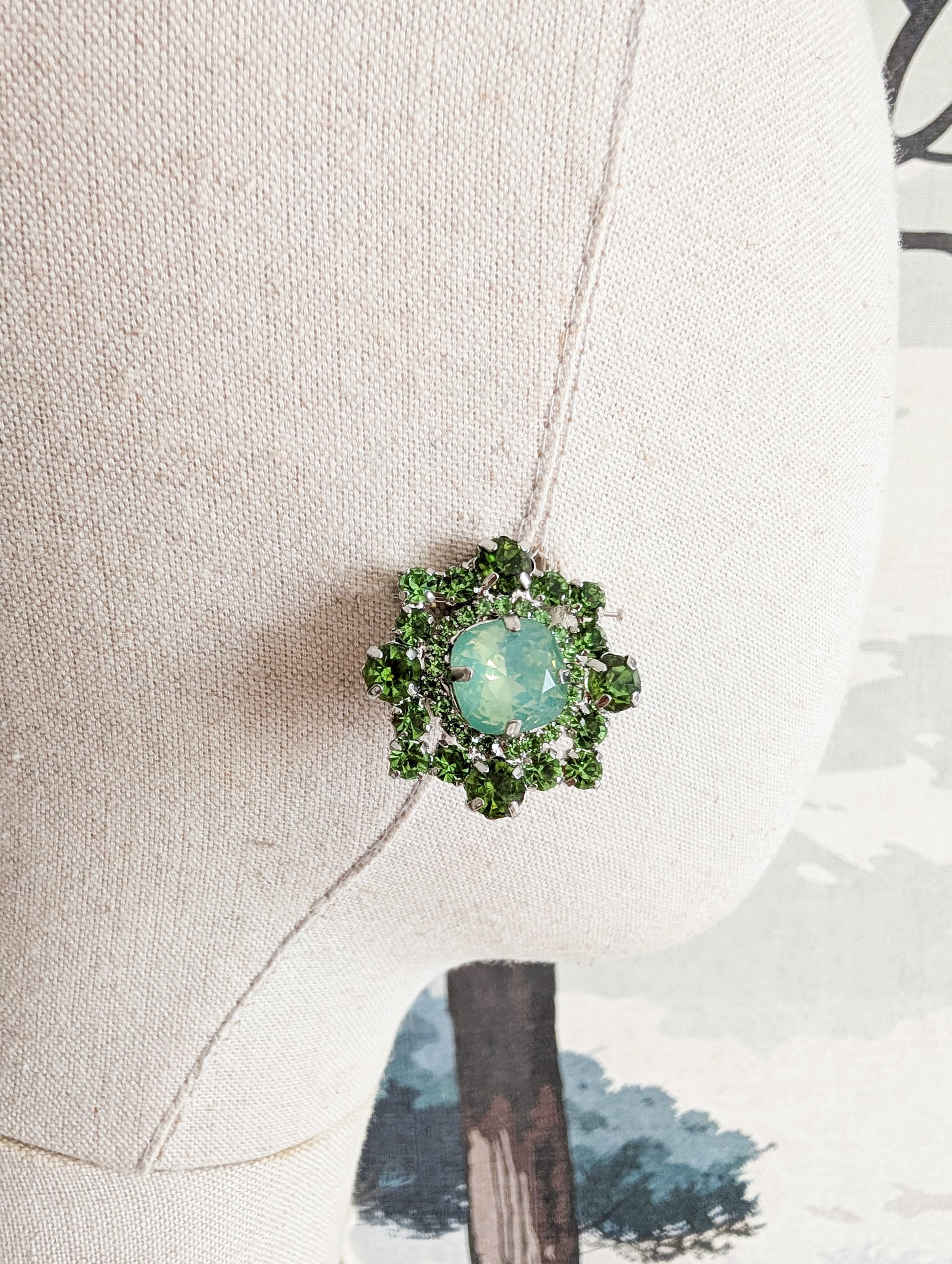 Elles sont pavées de strass en verre vert et d'une belle pierre en résine vert jade.