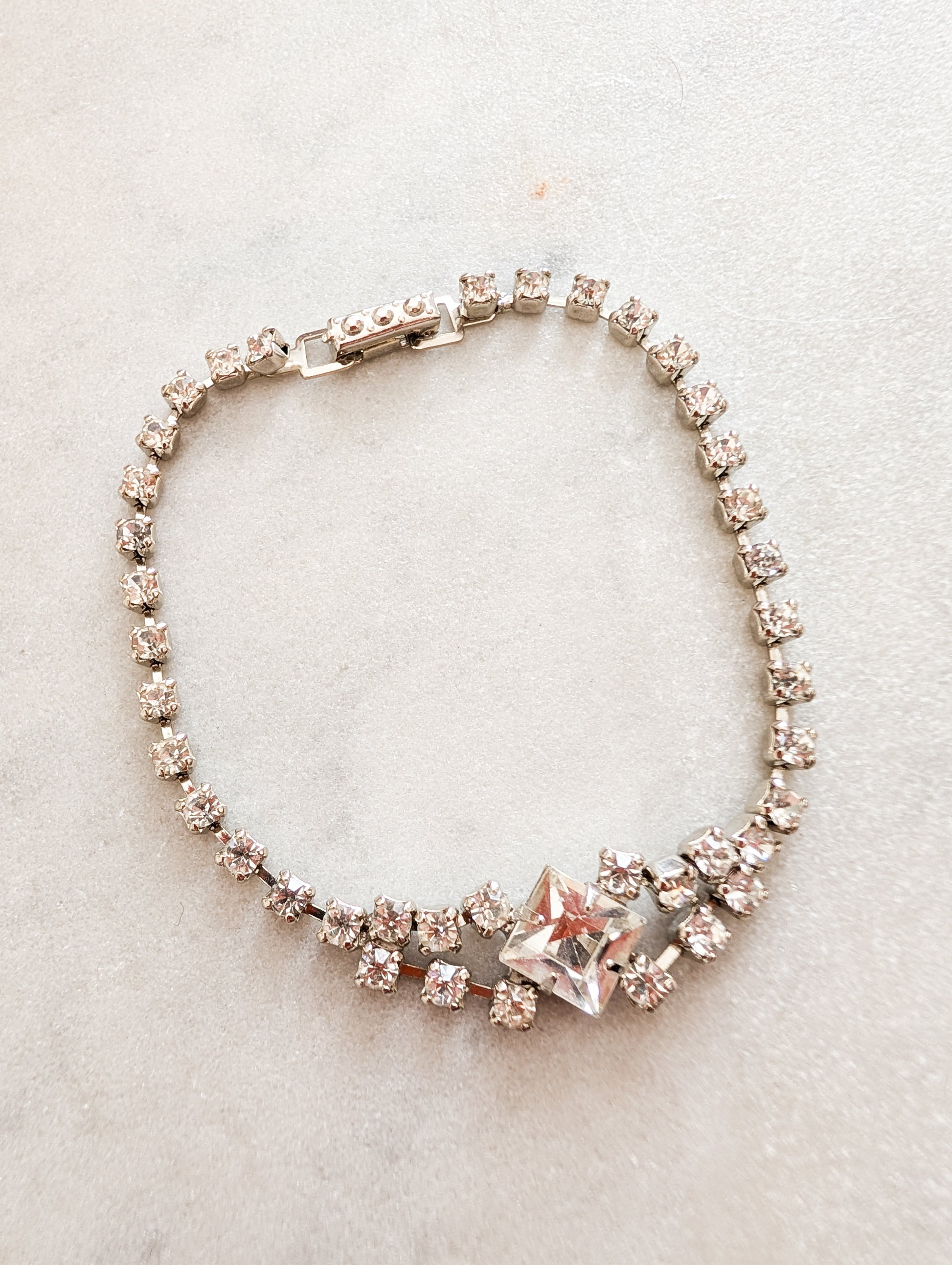 Très joli bracelet de strass dit bracelet Rhinestones. Il date des années 50/60.