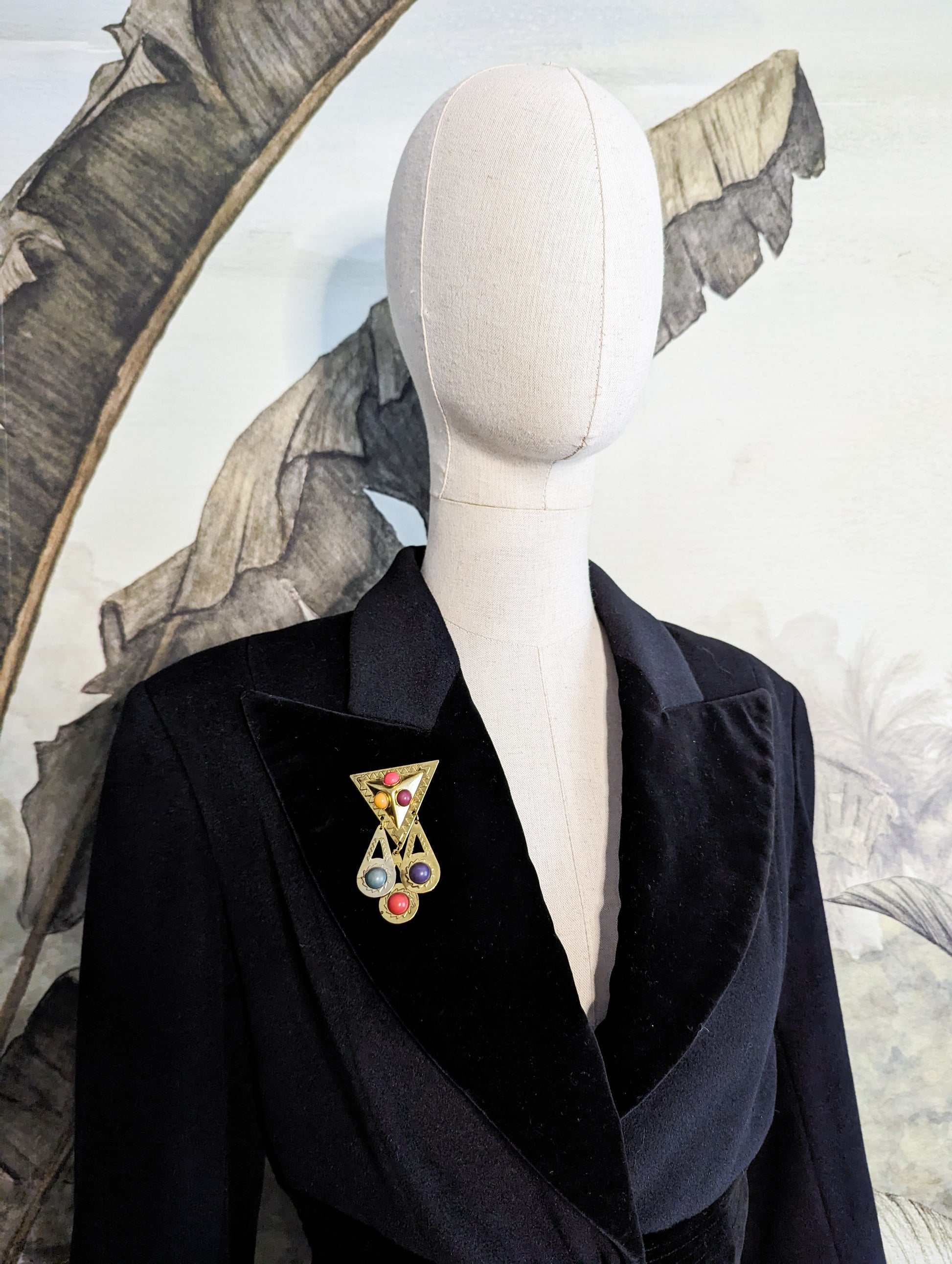 Superbe broche datant des années 80. Elle est en métal doré. La monture est creuse, le bijou est donc léger.