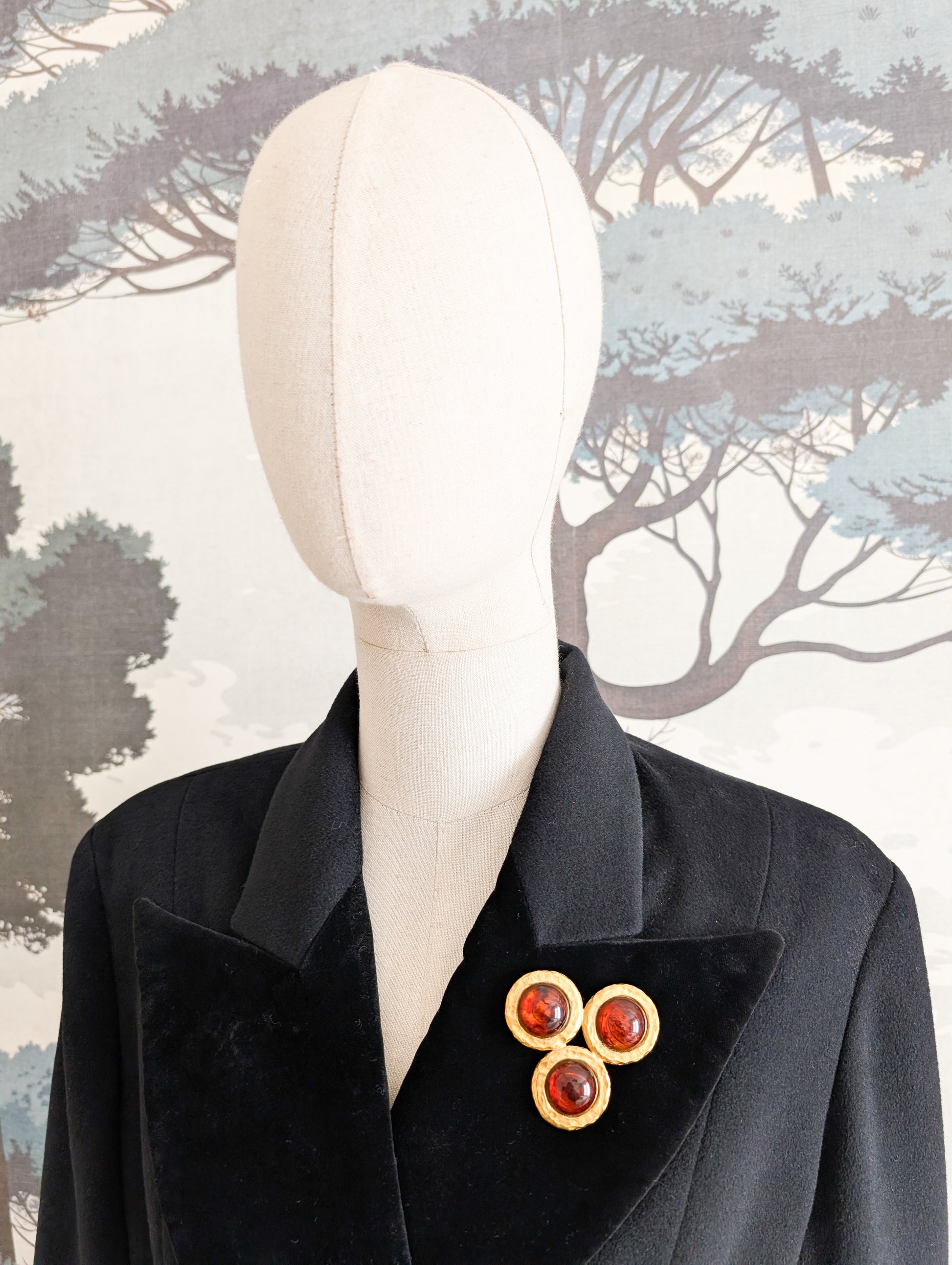 Le bijou n'est pas signé, mais c'est une très belle broche qui a été fabriquée en France, dans le pire style 80's avec des matériaux de grande qualité et un très beau savoir faire.