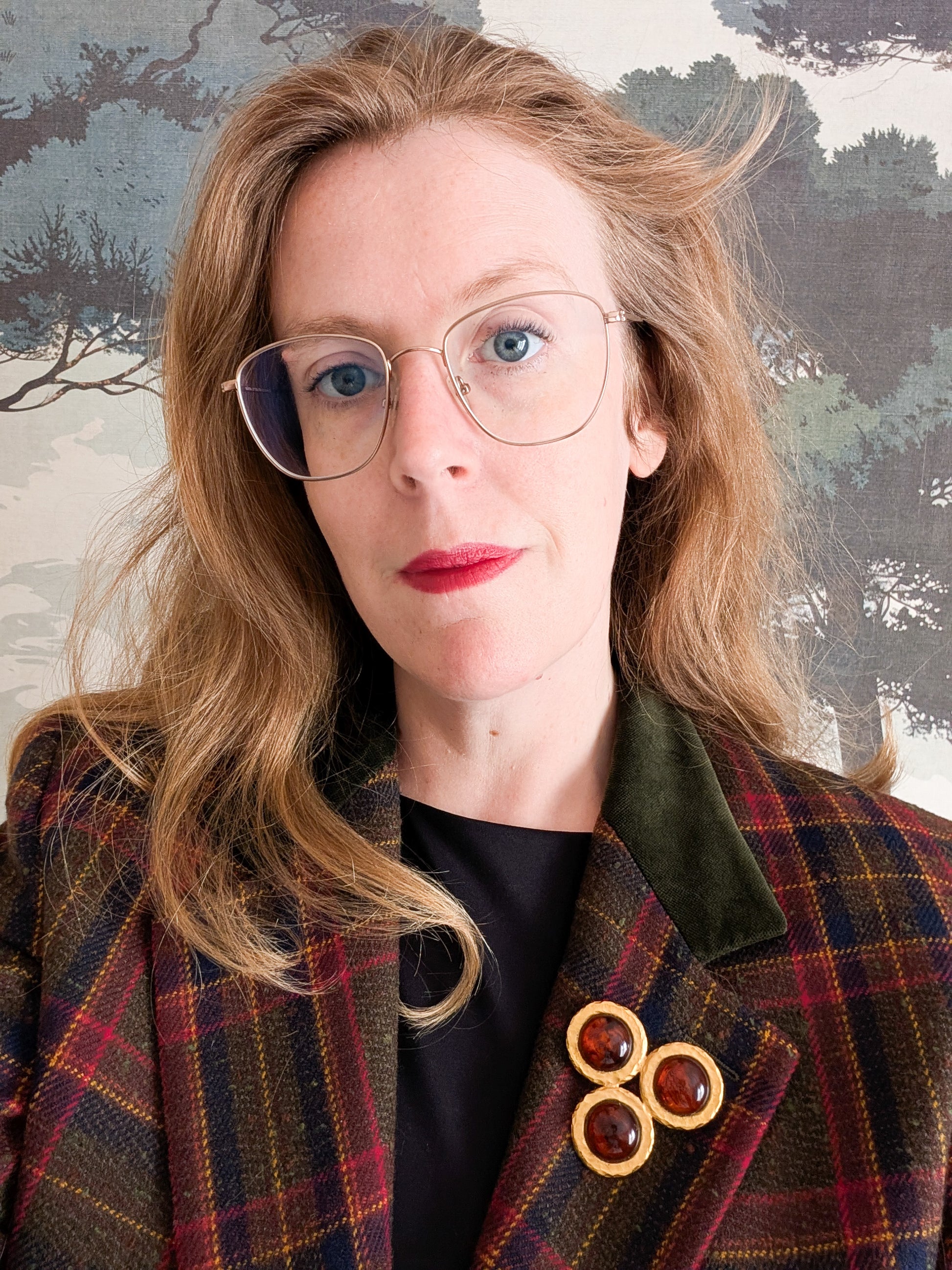 La broche présente une très belle monture en métal doré mat. Le métal est travaillé pour paraître martelé.