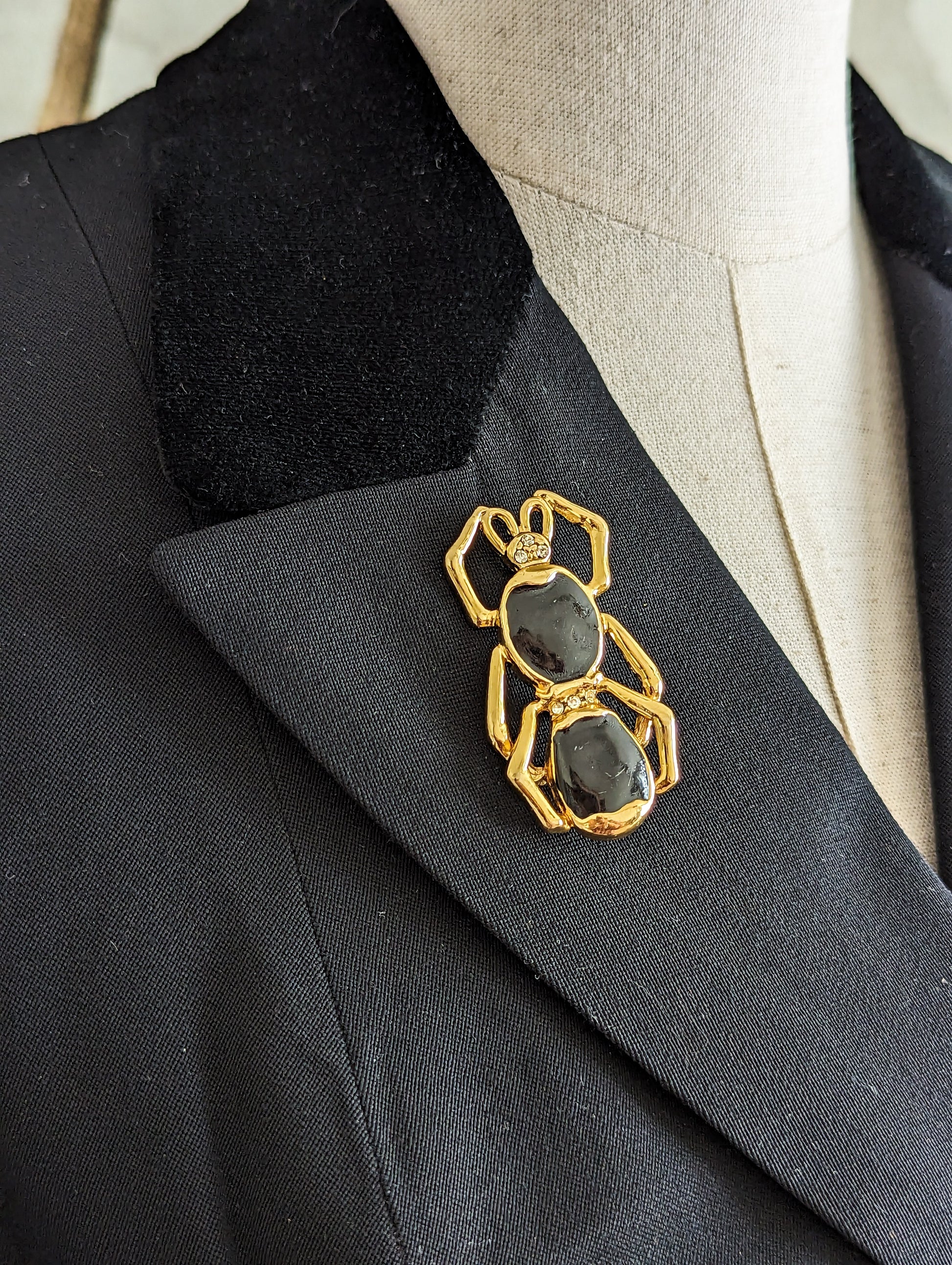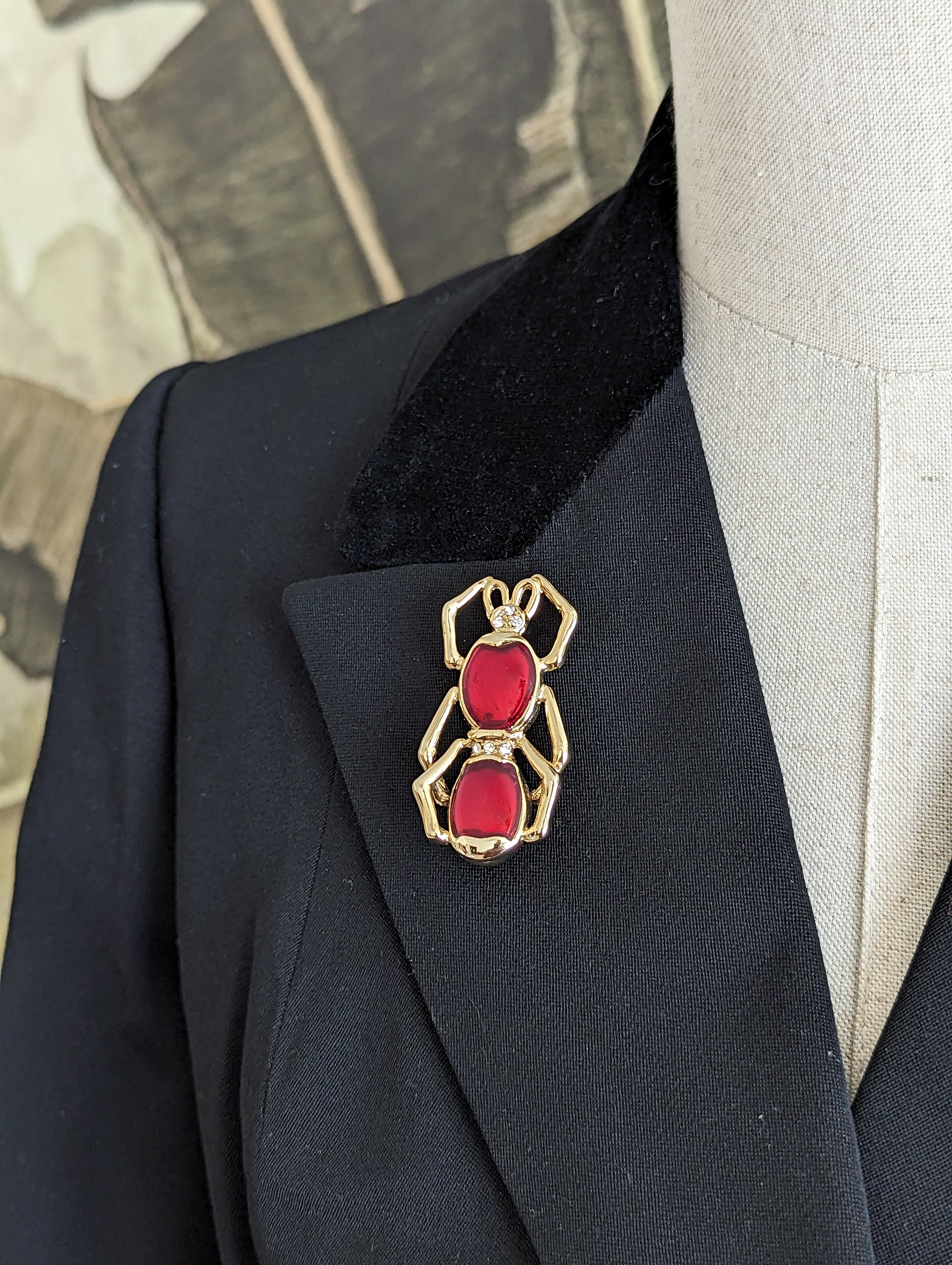Belle broche représentant deux scarabées. La broche existe en 3 variantes, laquée de rouge, de bleu ou de noir.