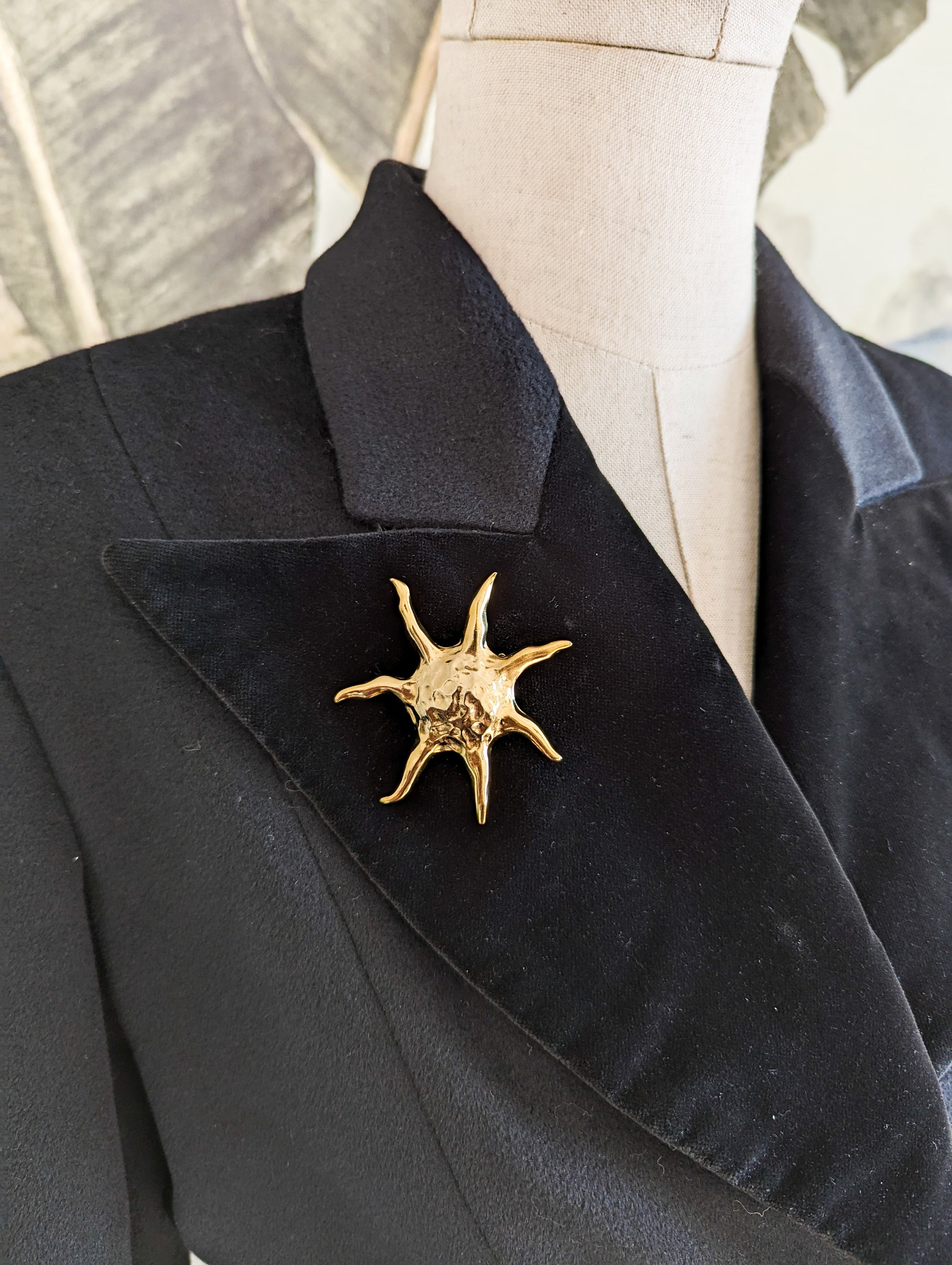 Très belle broche datant des années 80. Elle est en forme de soleil.