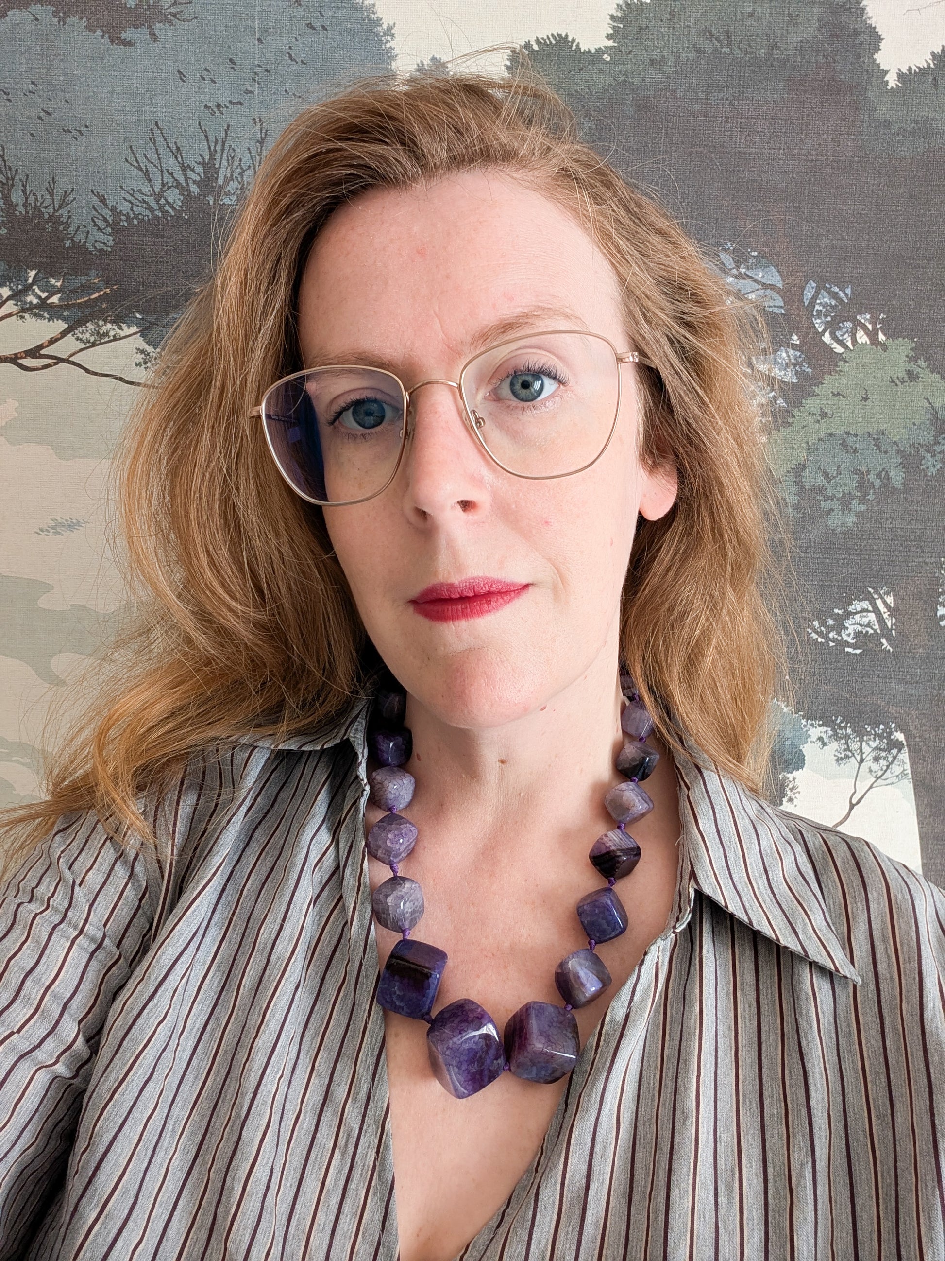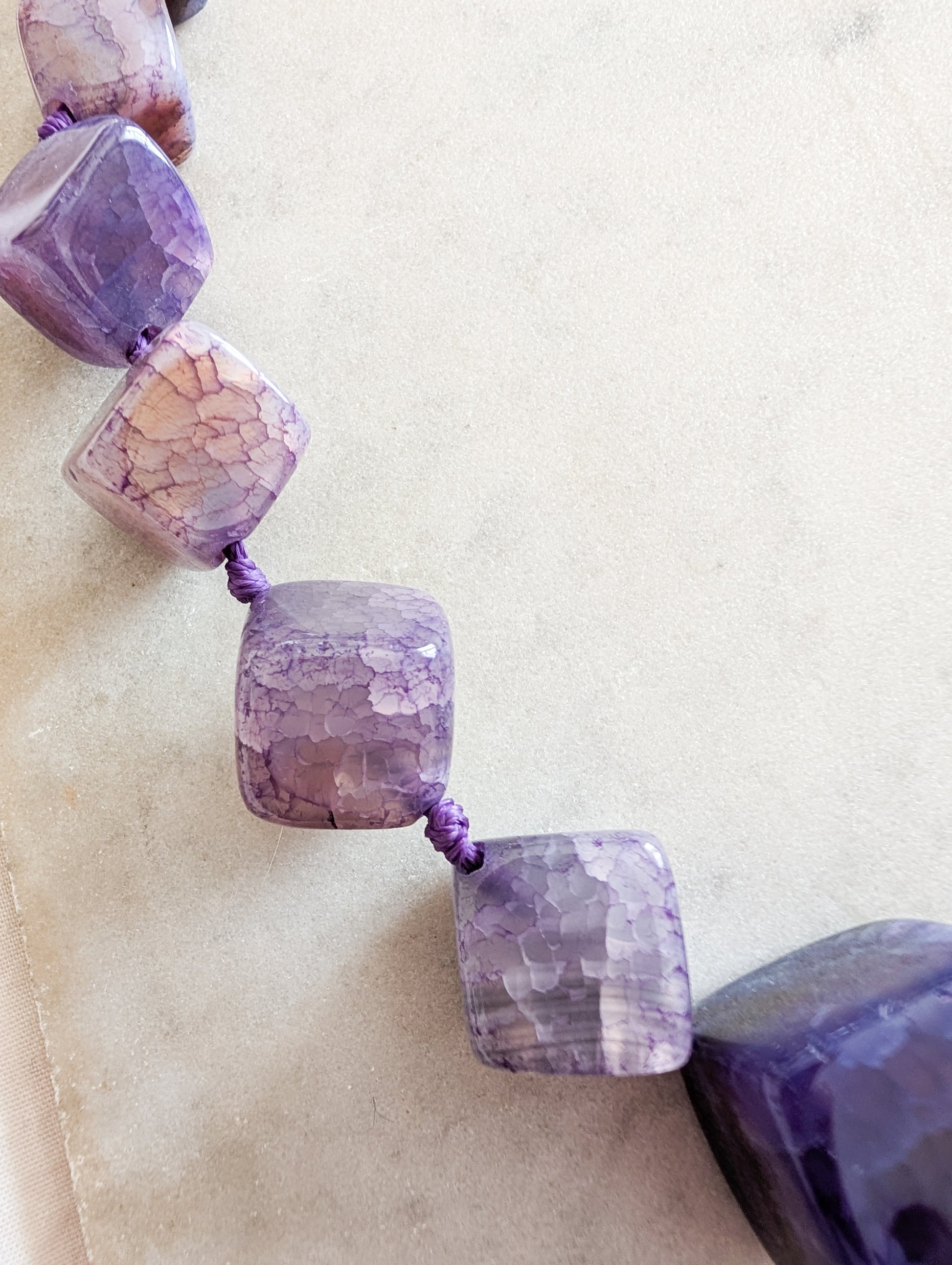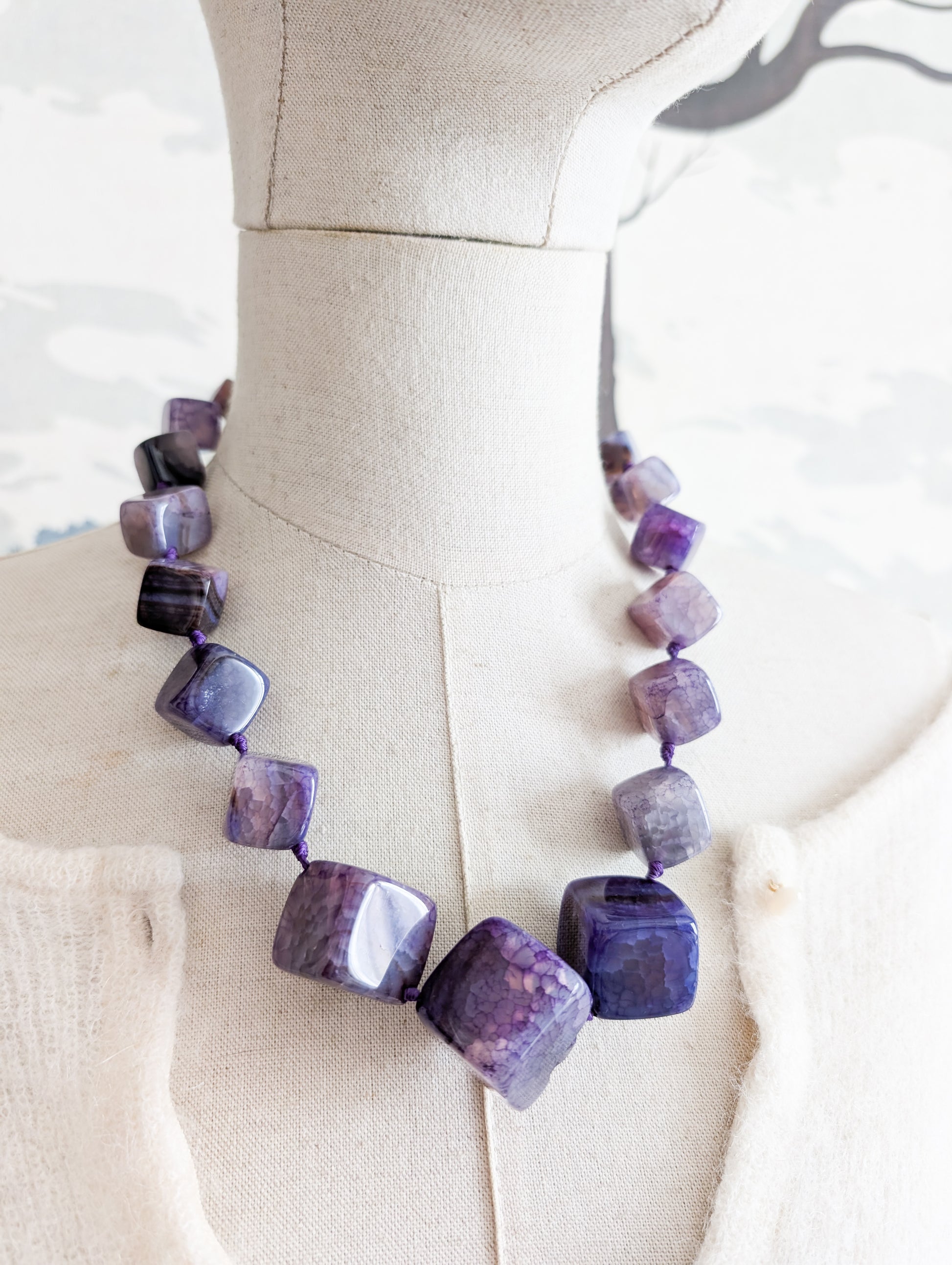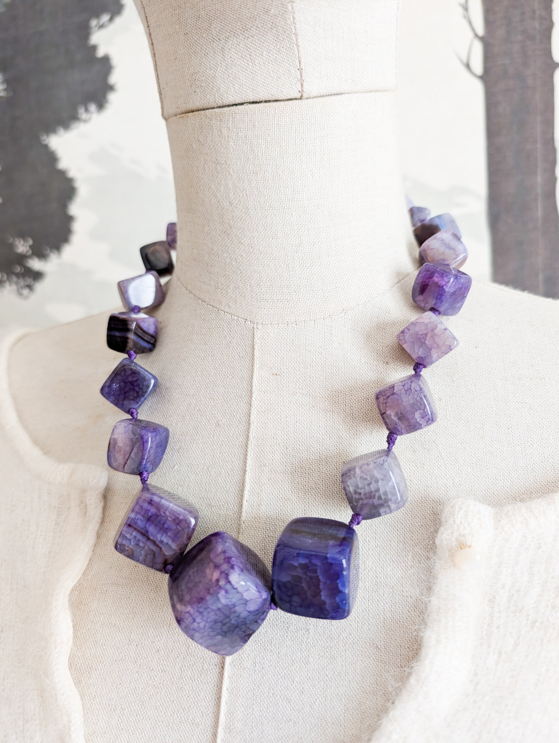 Il présentés de grandes pierres cubiques en pierre veine de dragon. La pierre est teintée dans ces belles teintes violettes.