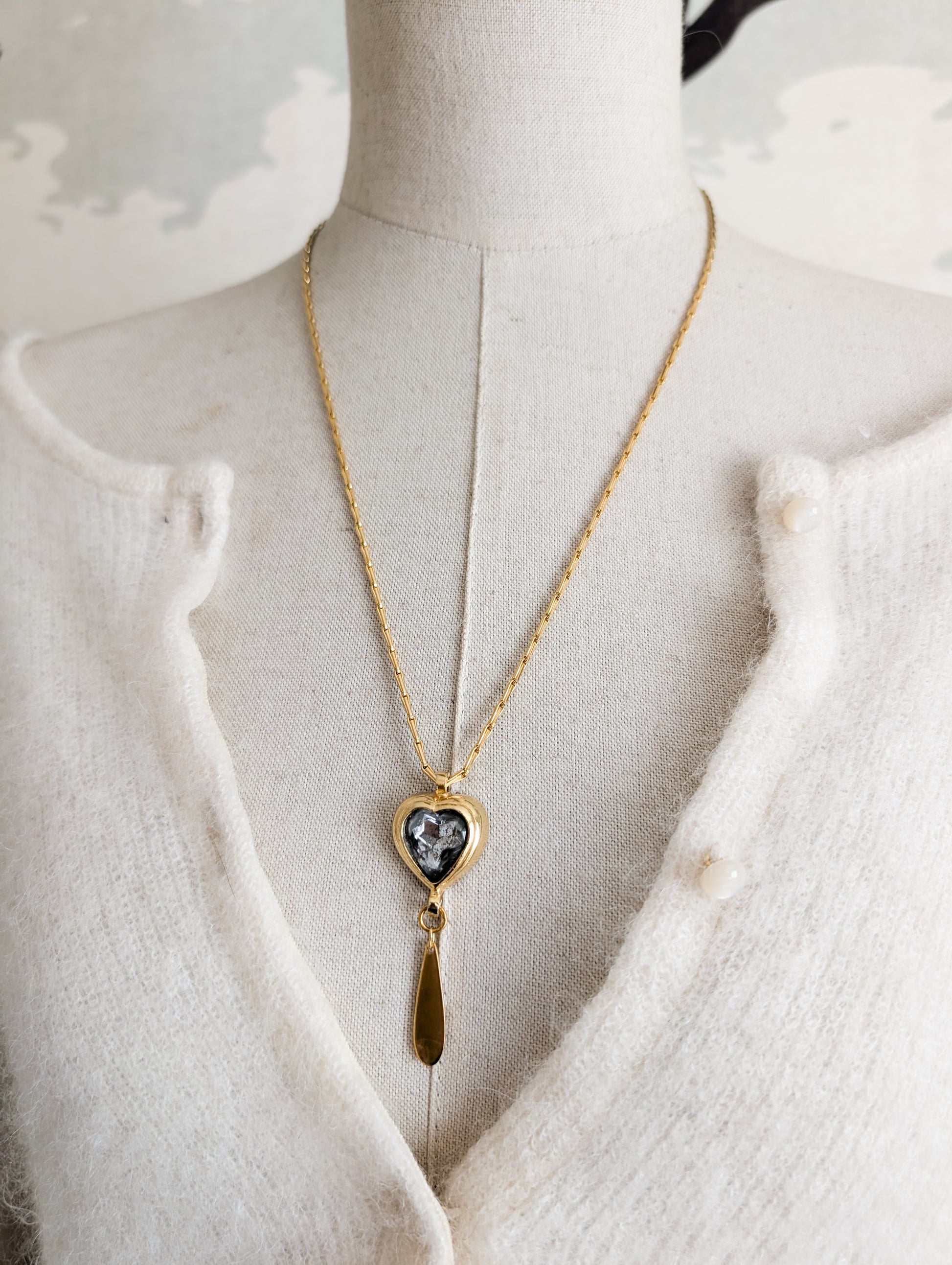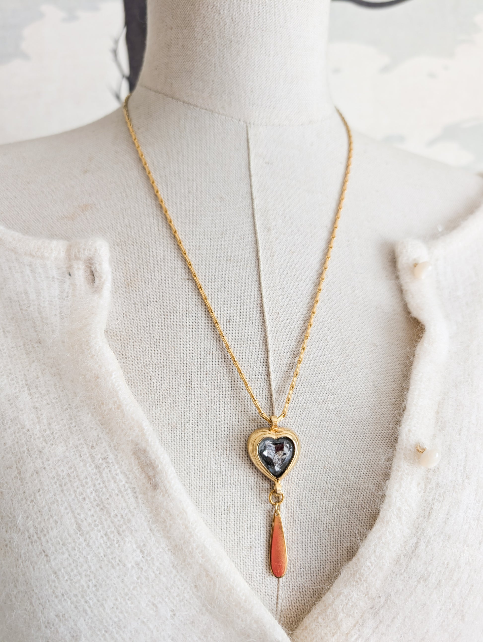 Très beau collier coeur datant des années 70. Il est signé Corocraft.