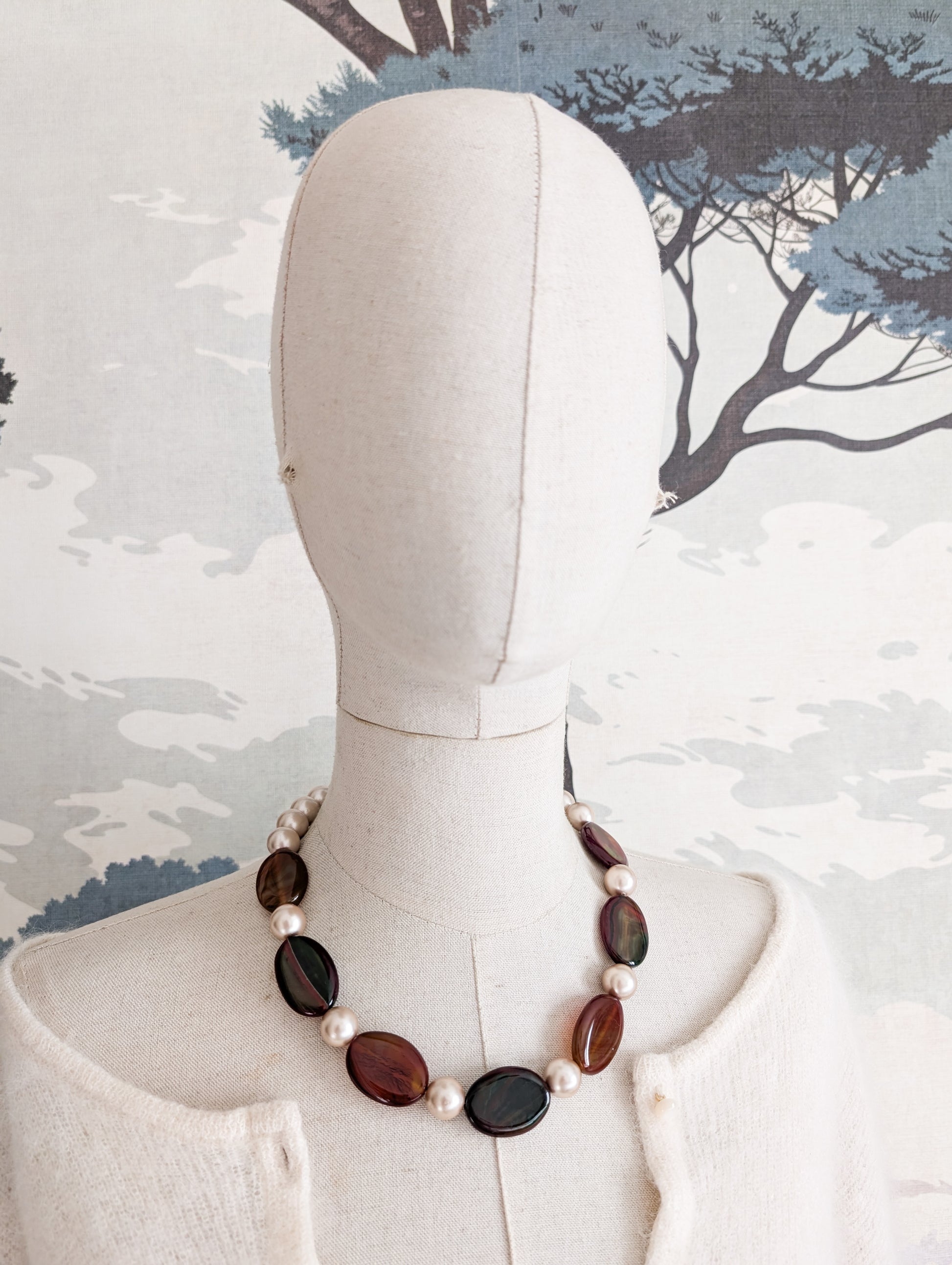 Les perles nacrées sont des perles de Malte, des perles fantaisie en verre de très belle facture. Elles ont une magnifique teinte champagne.