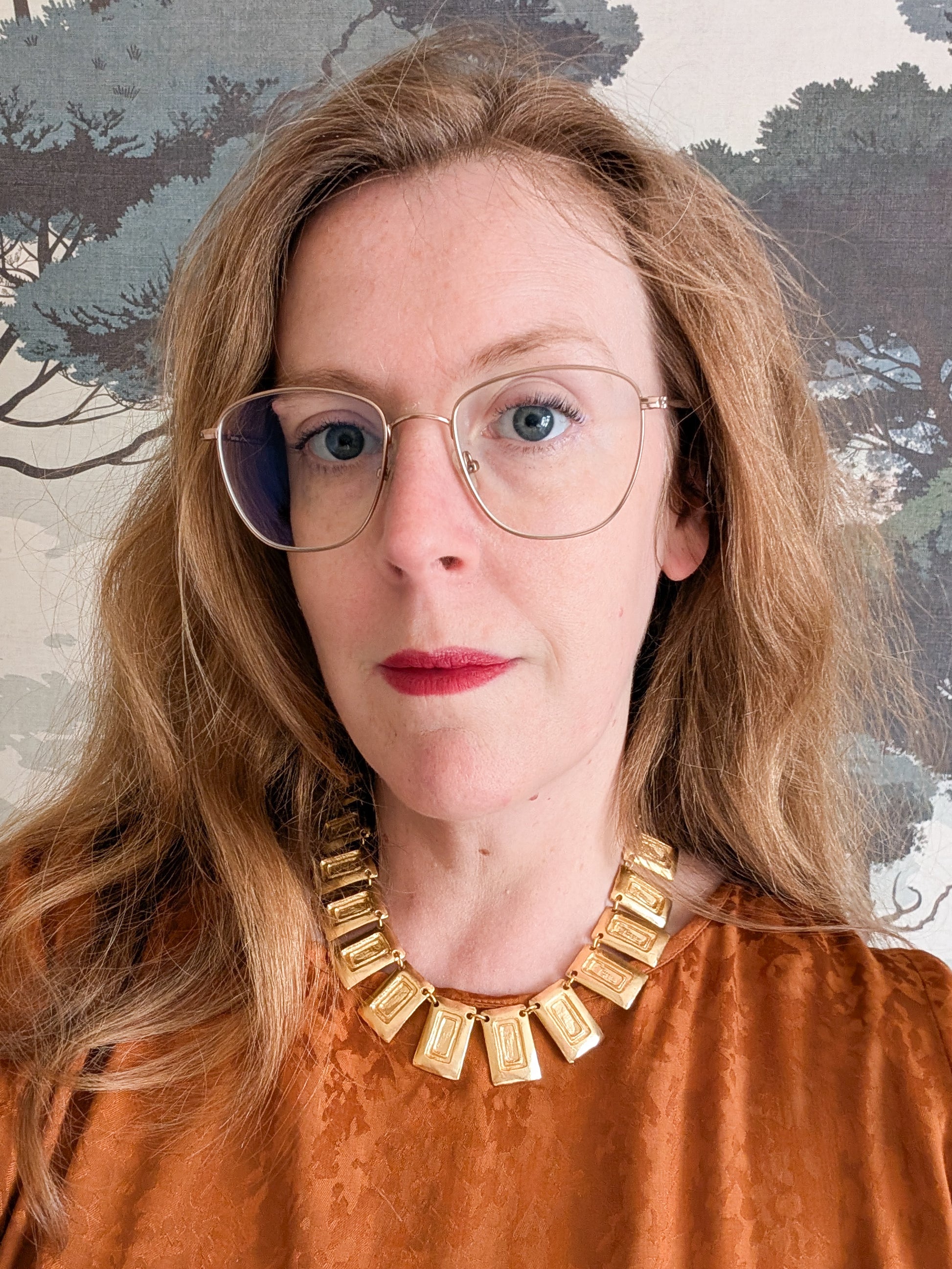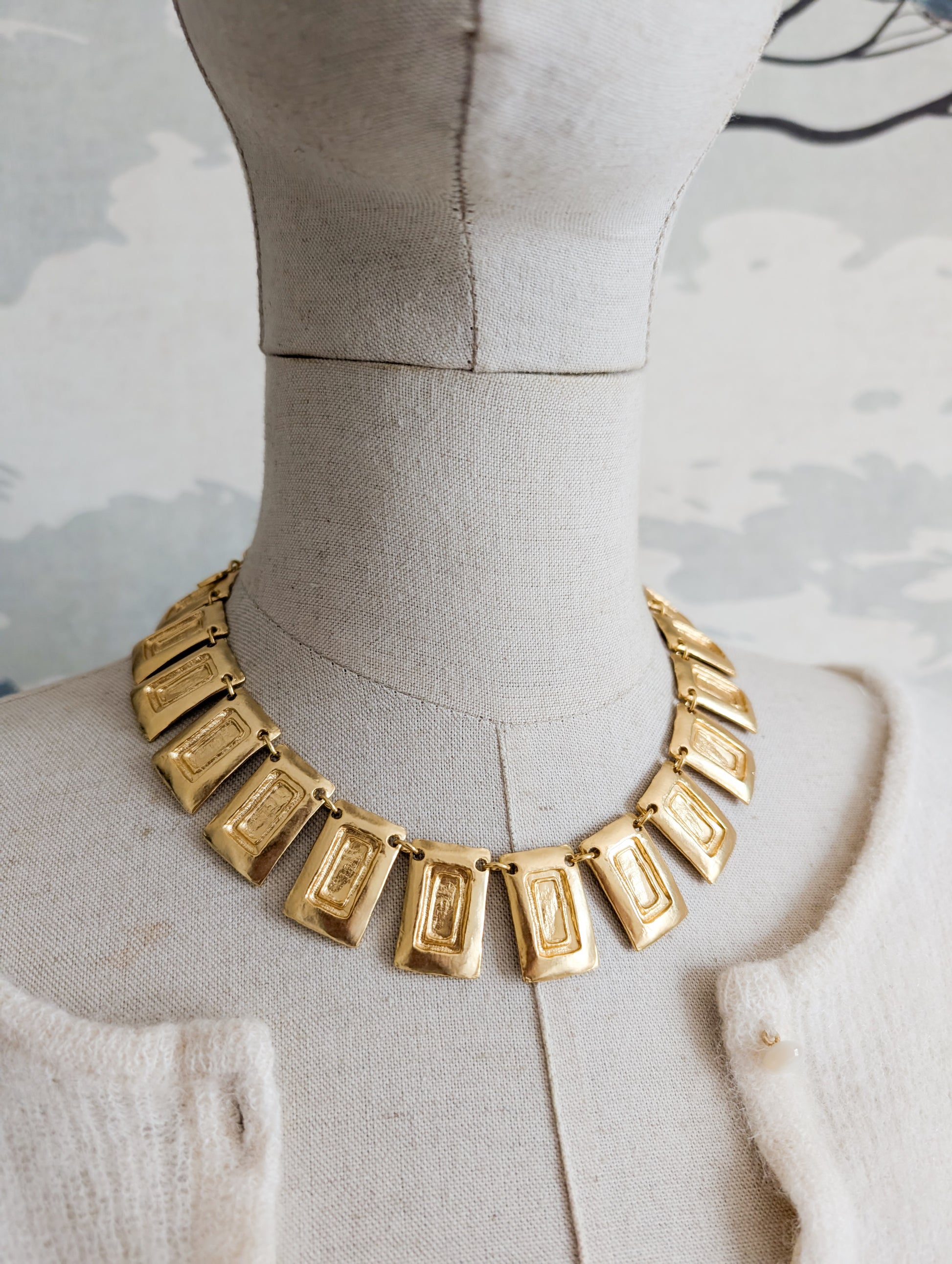 Le collier présente une succession de mailles rectangulaires en bas relief. Les mailles se posent très joliment autour du cou, rappelant un bijou antique ✨