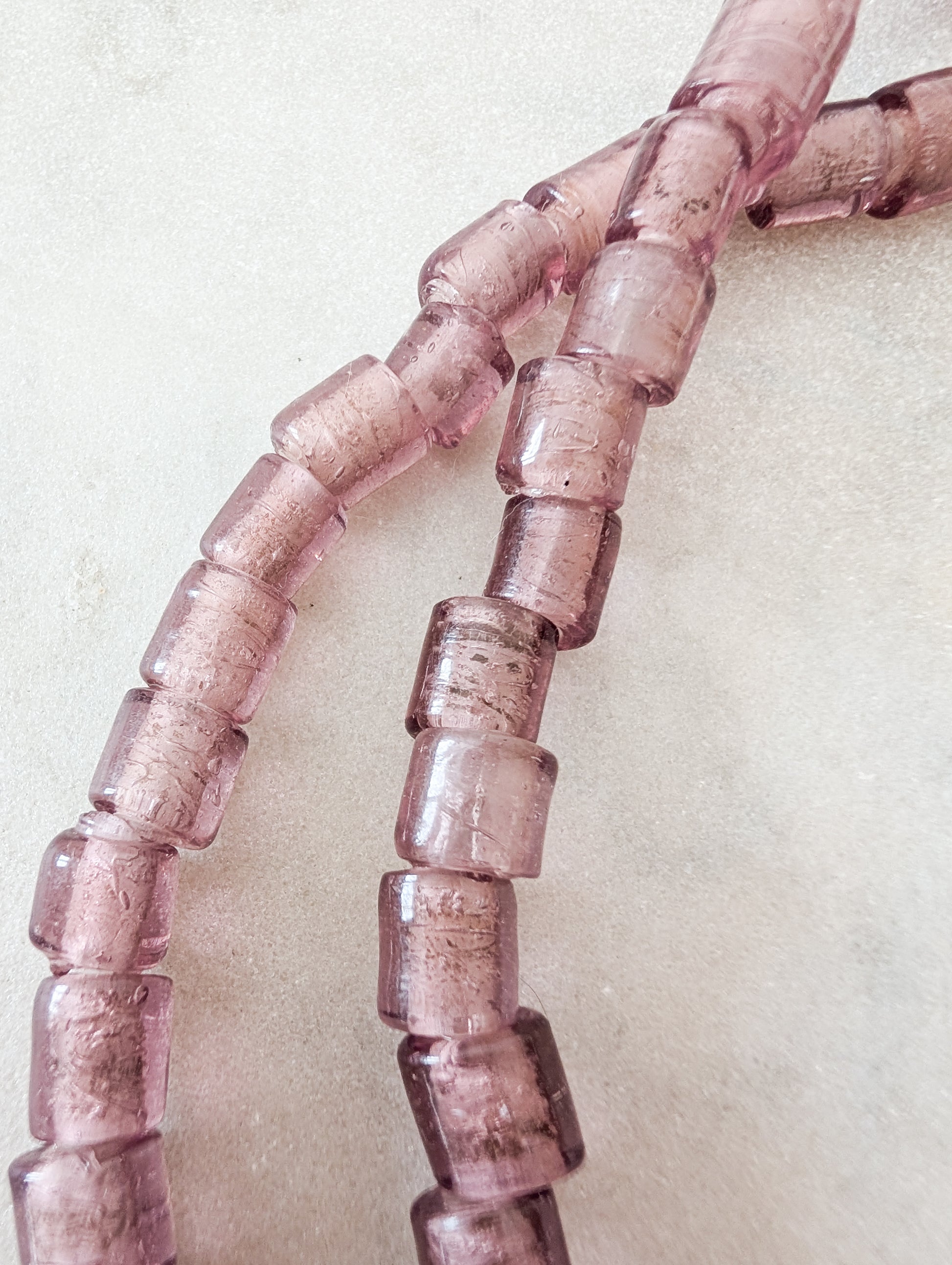 Magnifique collier composé de deux rangs de perles de verre tubulaires. Ce sont des perles artisanales, réalisées par un verrier.