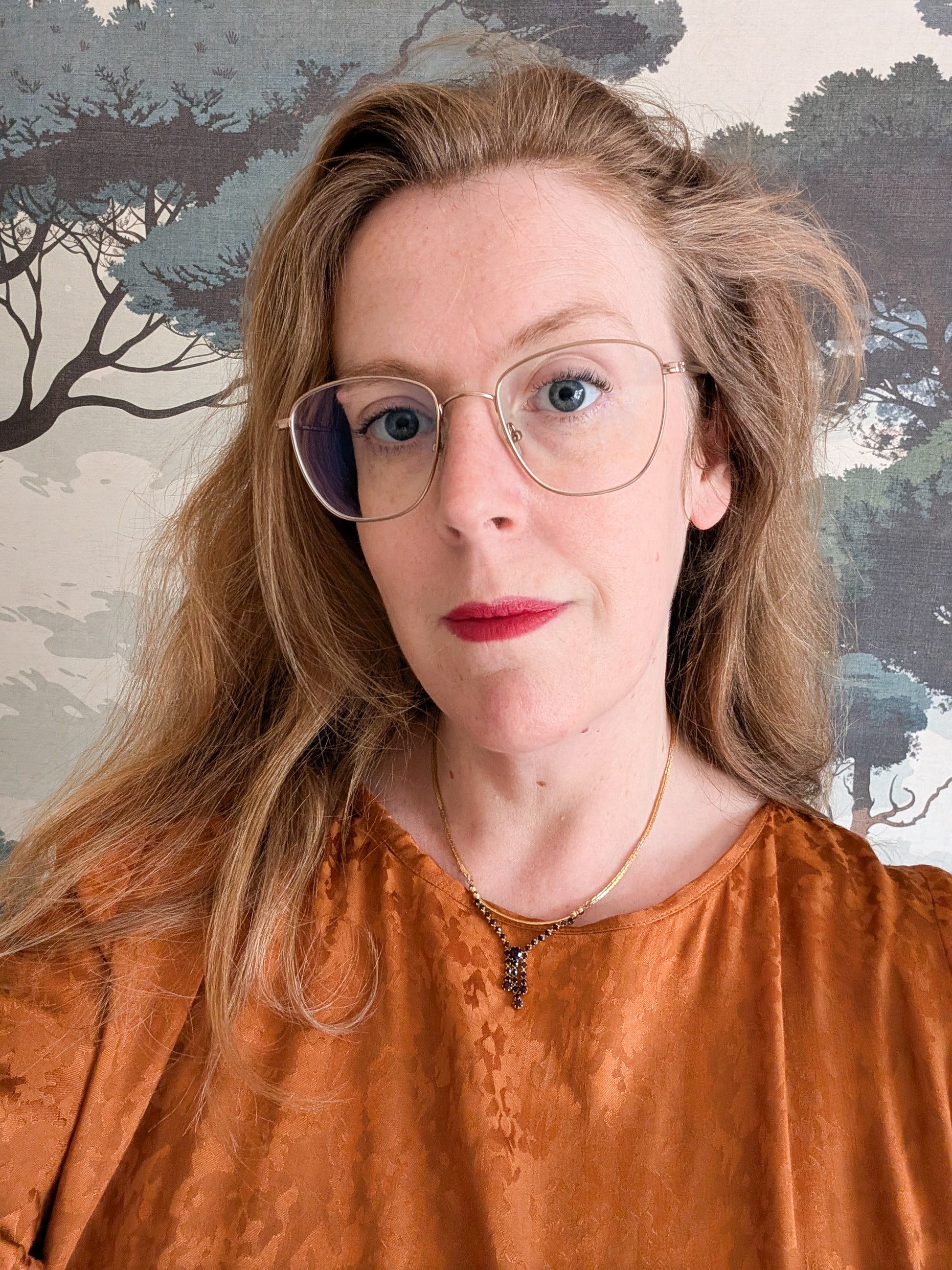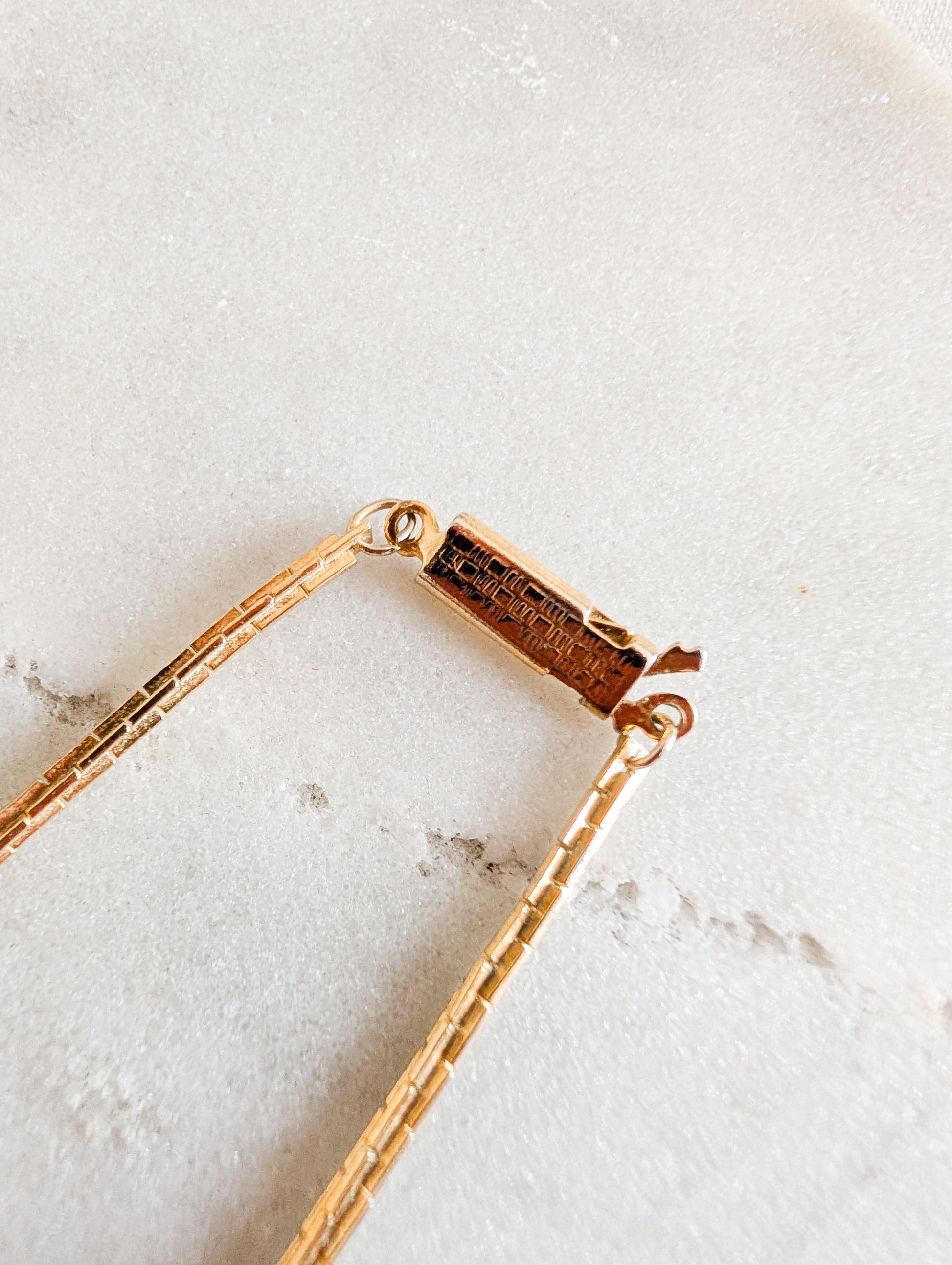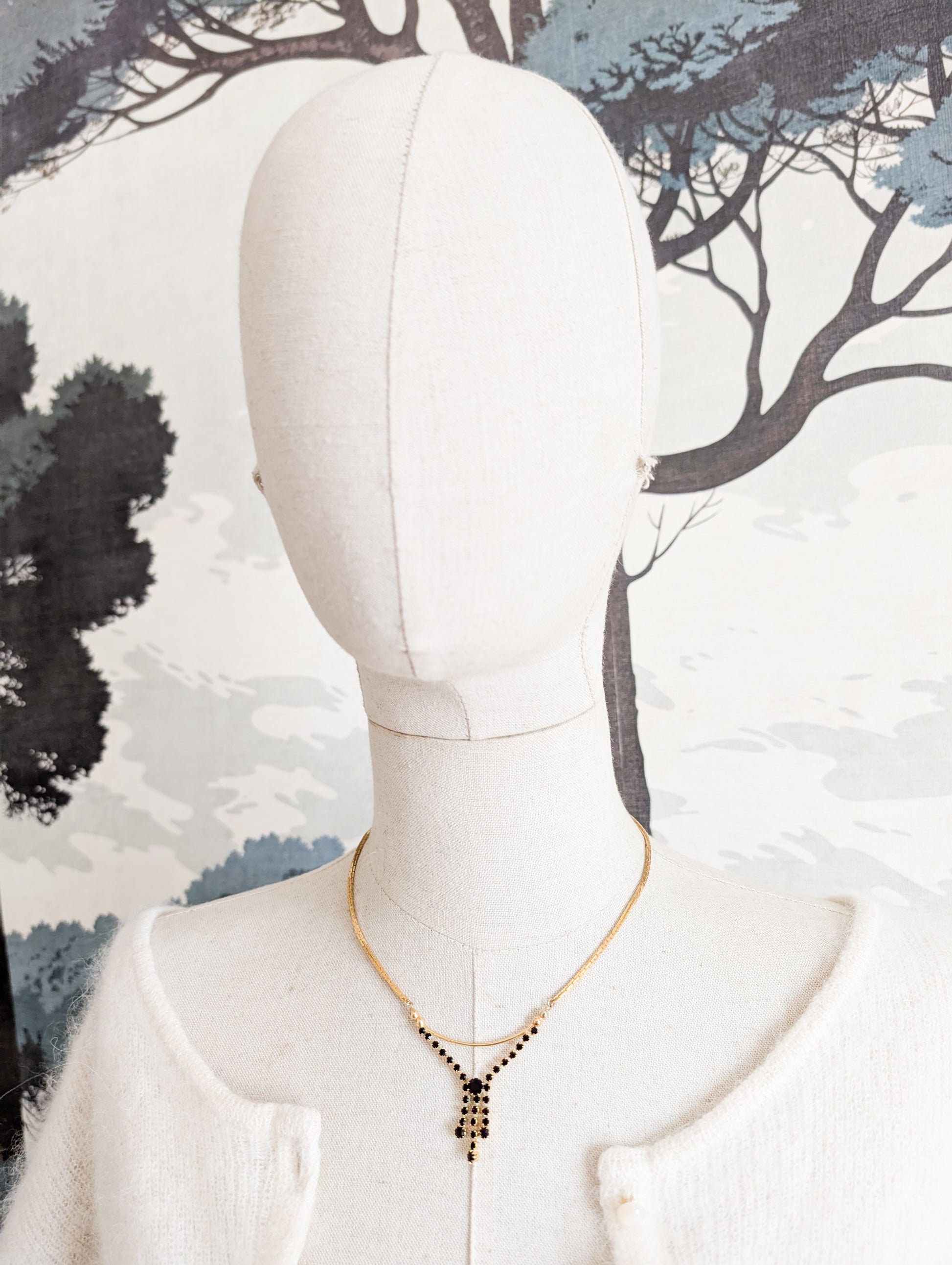 Au centre, un très beau pendentif est pavé de petits strass en verre bordeau.