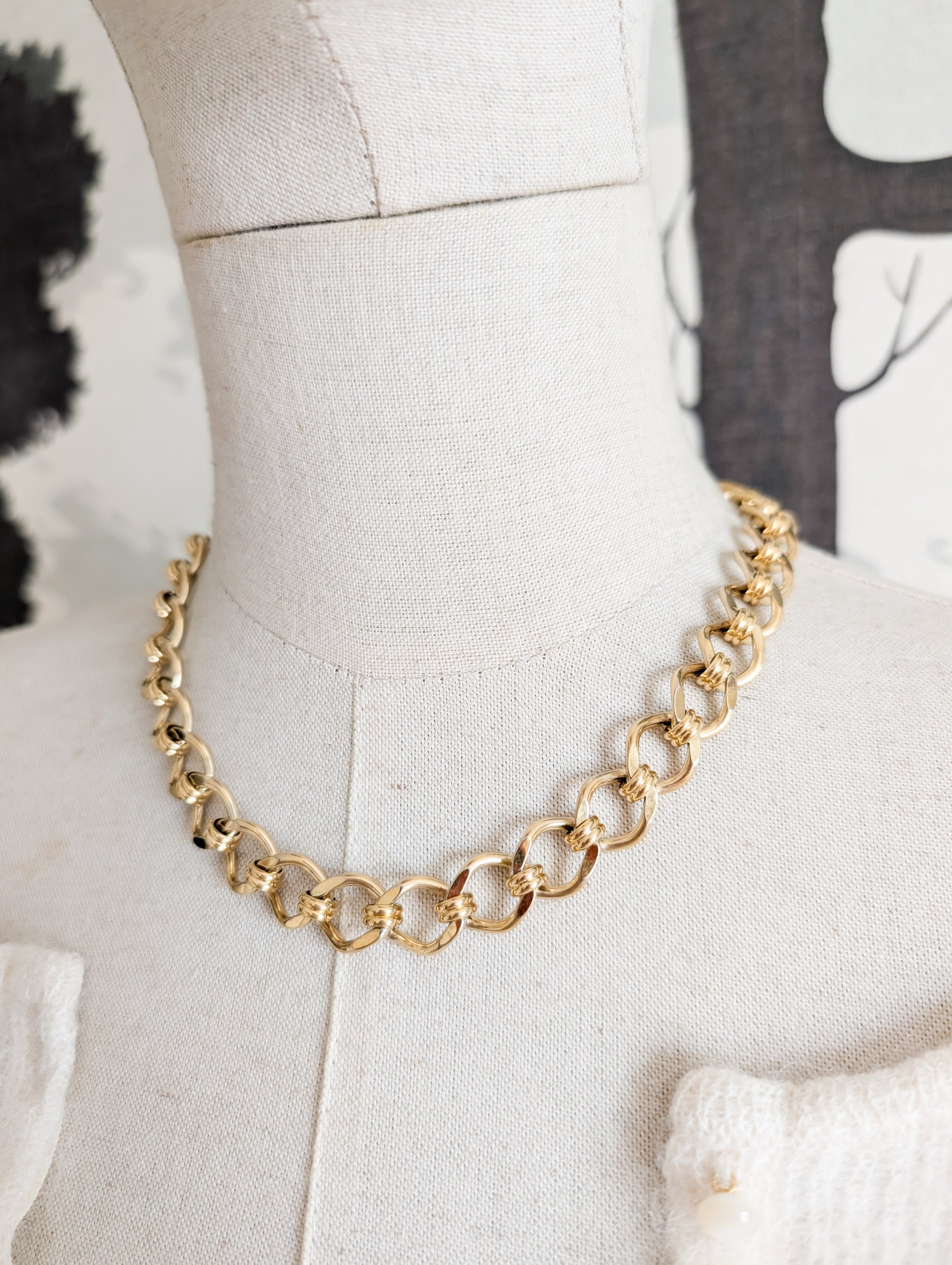 Le collier présente une belle chaîne en métal doré. C'est un très bel intemporel. Il peut être porté de façon plus ou moins classique !