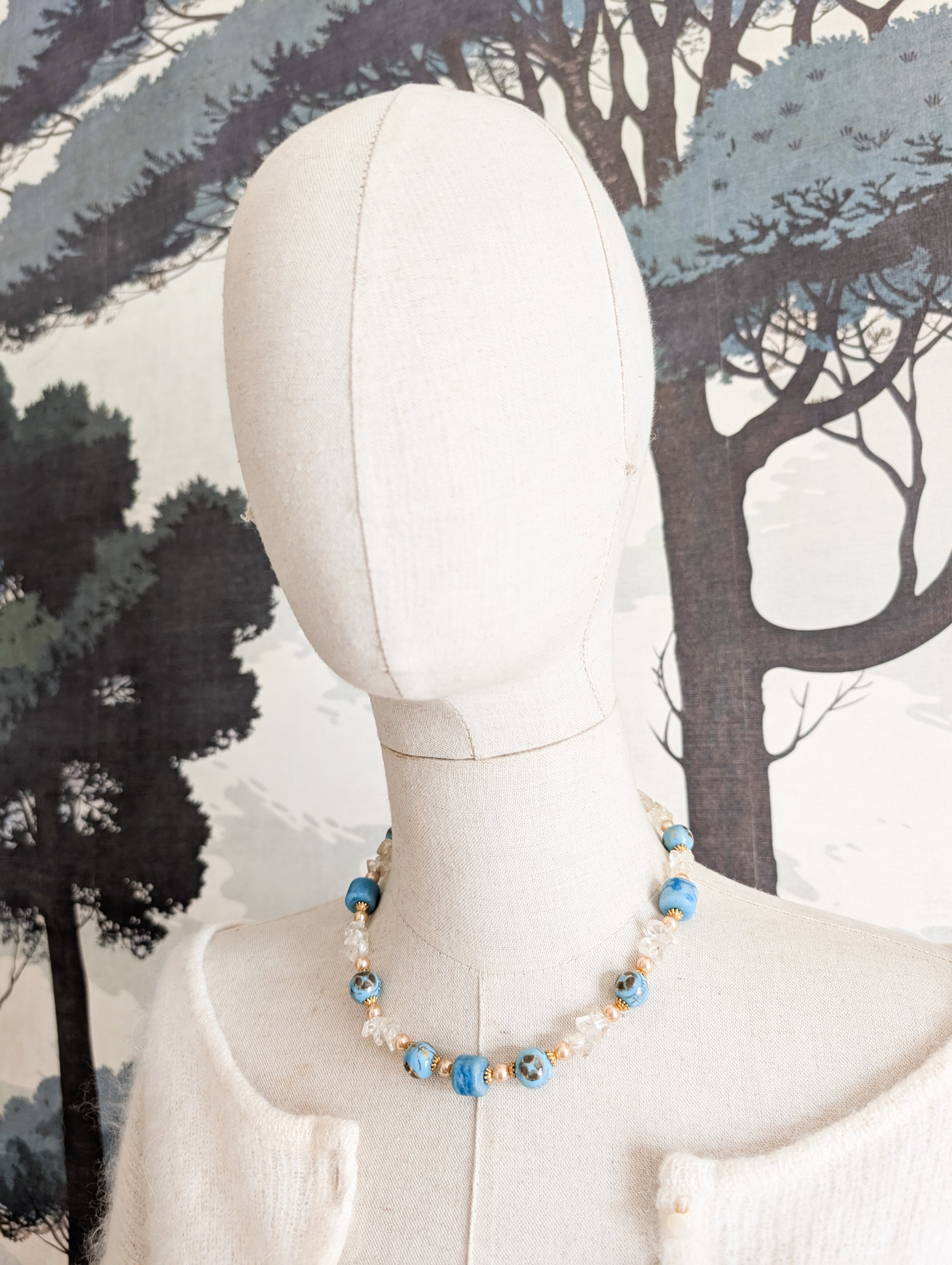 Collier cloisonné et cristaux