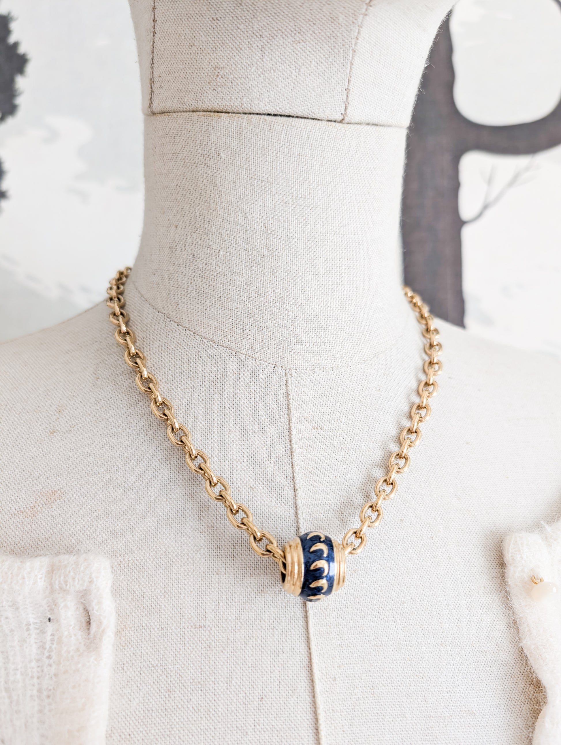 Très beau collier datant des années 90. Il présente une maille en métal doré de belle facture.