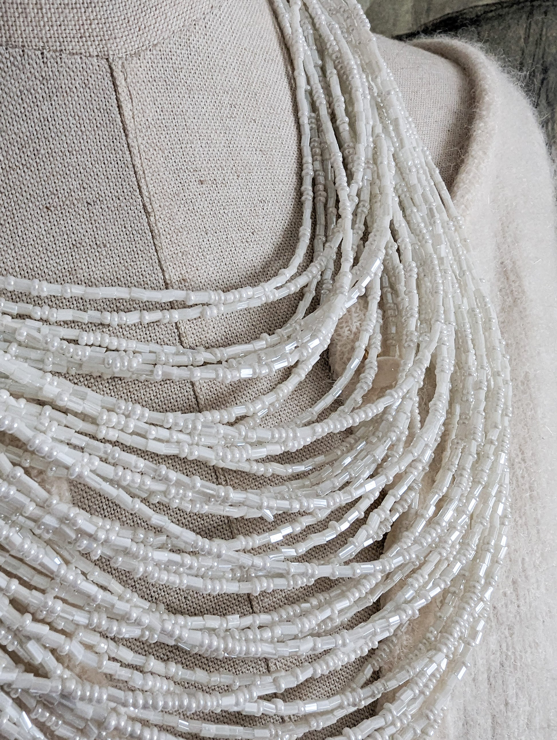 Extraordinaire collier multirangs. Il est composé d'une quarantaine de rangs de perles de rocaille.