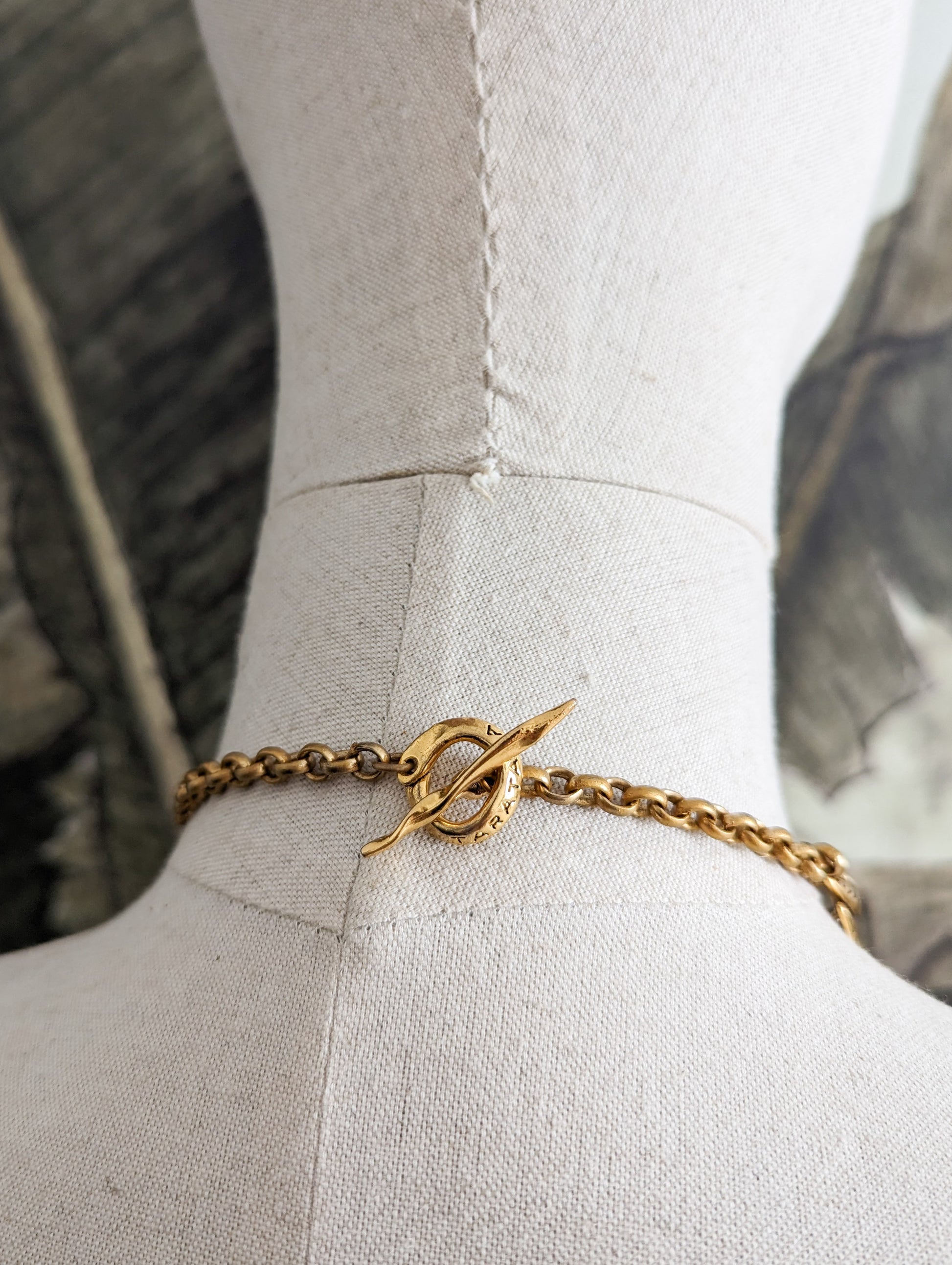 Le collier est en métal doré. Les mailles sont très belles, toutes en rondeur. Un vrai bijou d'artiste ❤️