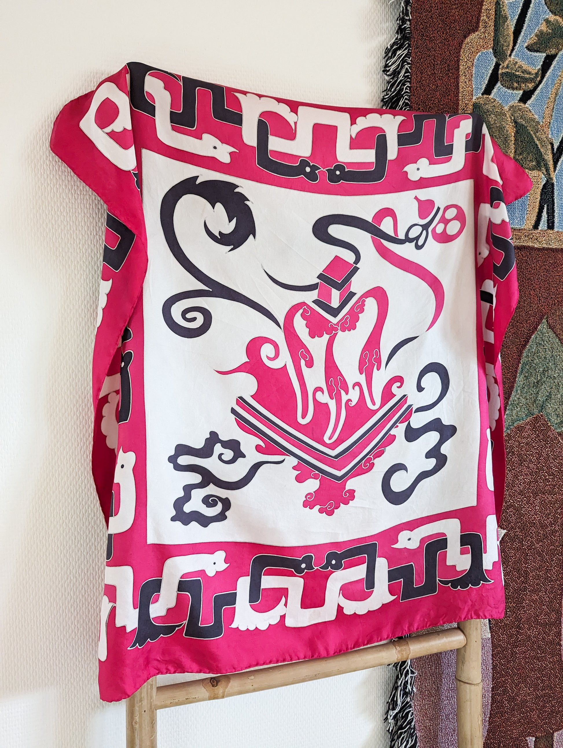 Coup de cœur pour ce magnifique foulard en soie. Il date probablement de la fin des années 60 début des années 70.