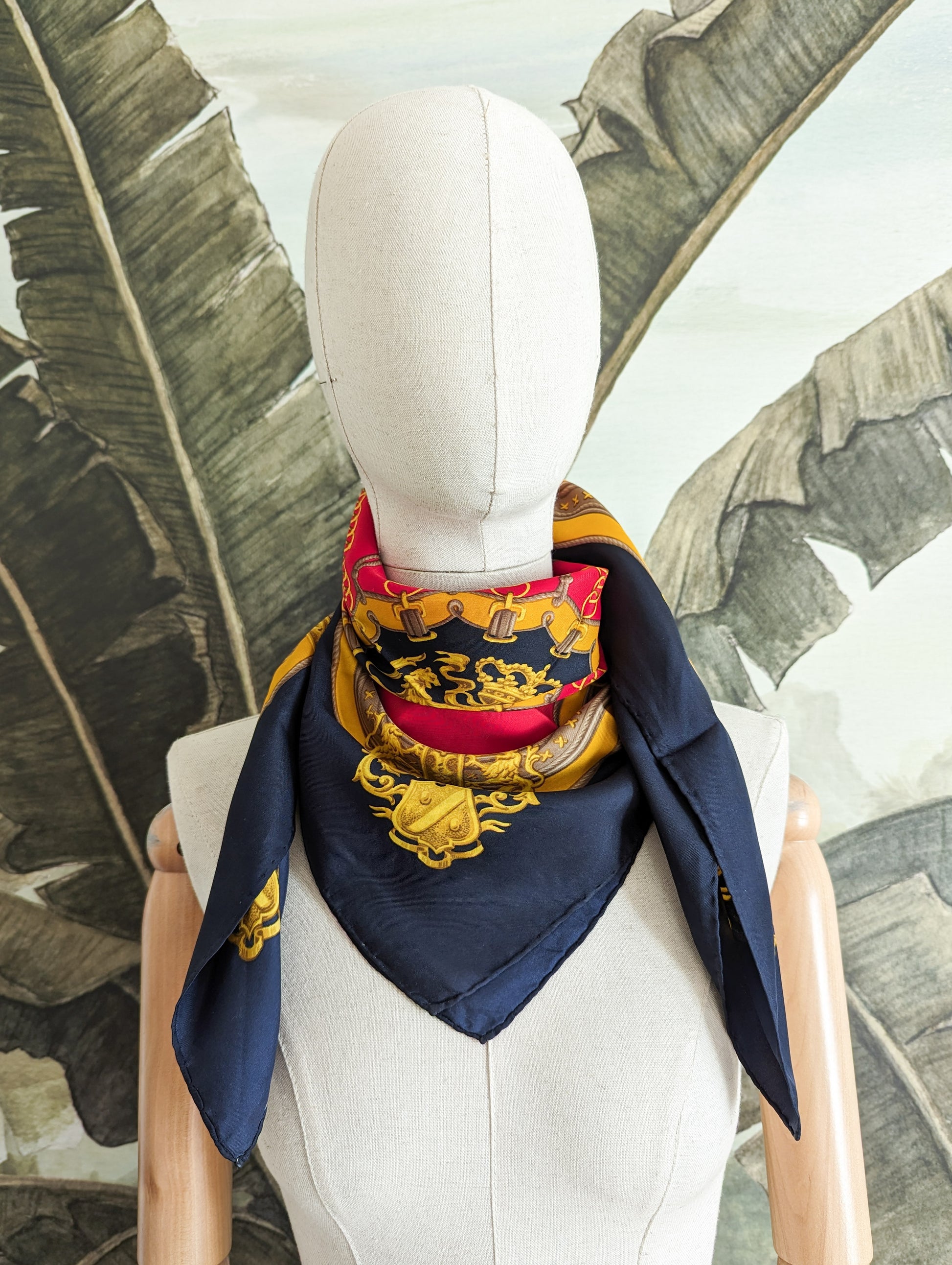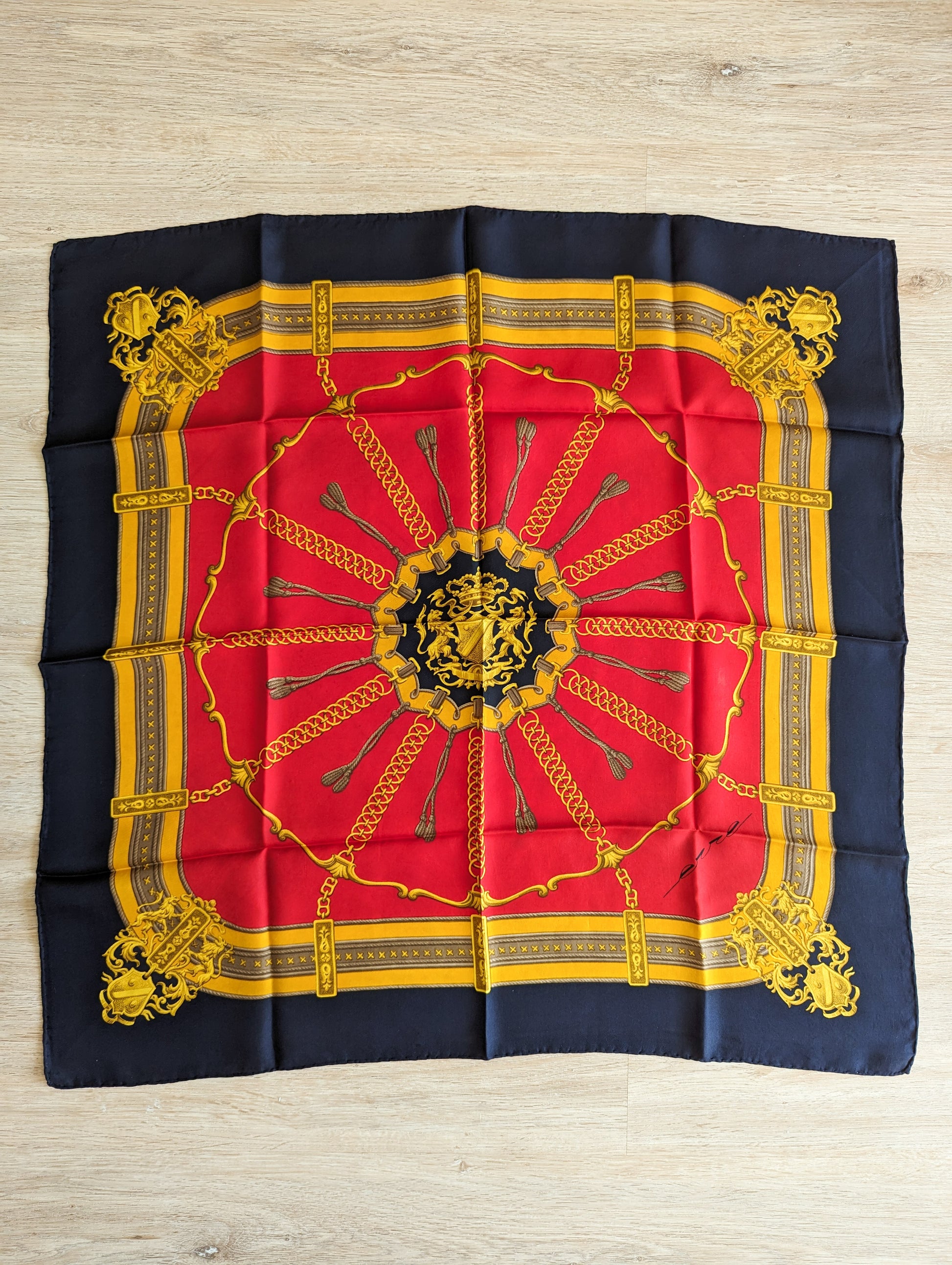 Beau foulard en soie datant des années 80. Il est signé Erre.