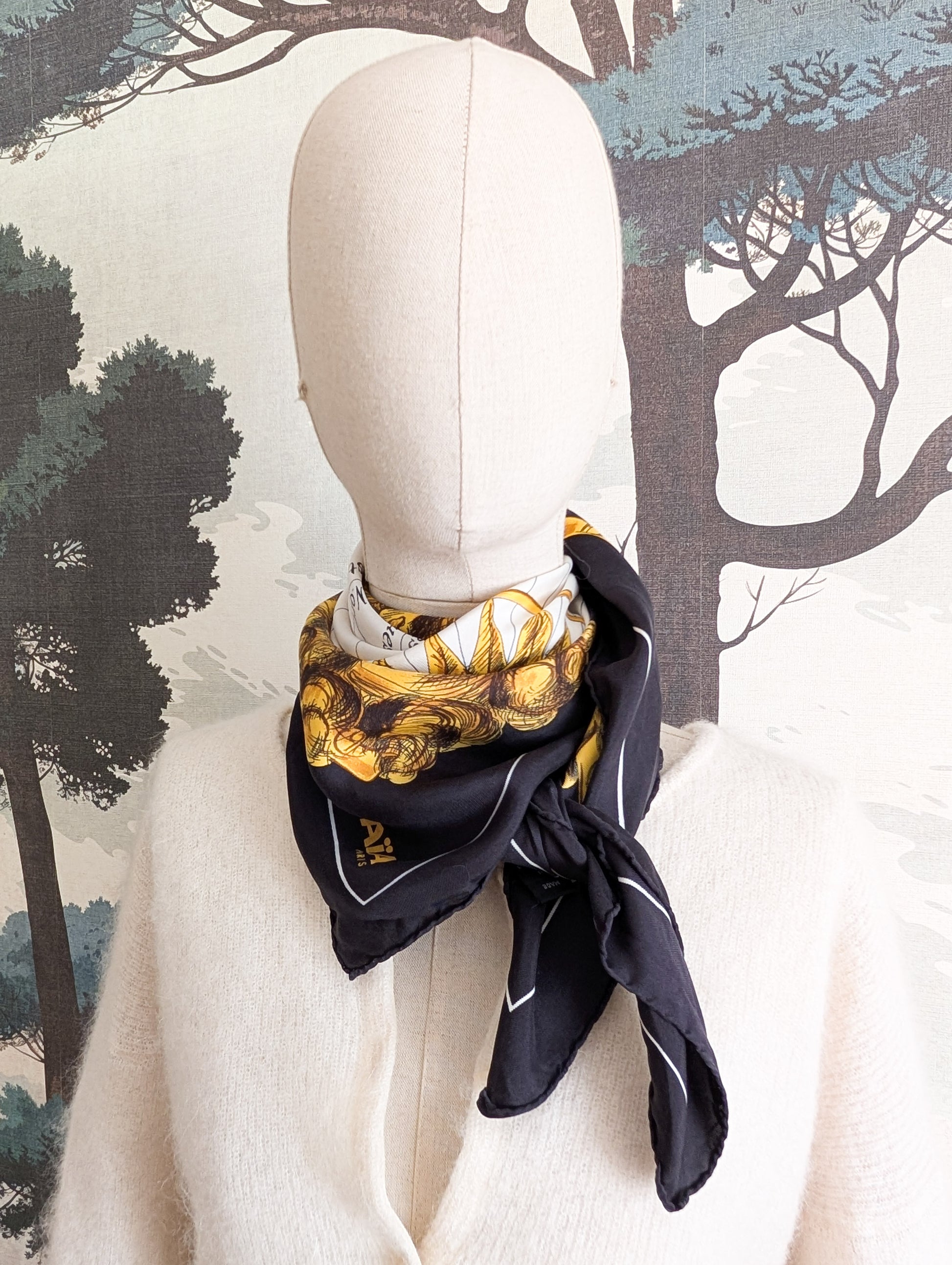 Superbe foulard datant des années 80. Il est signé Gaïa Paris.