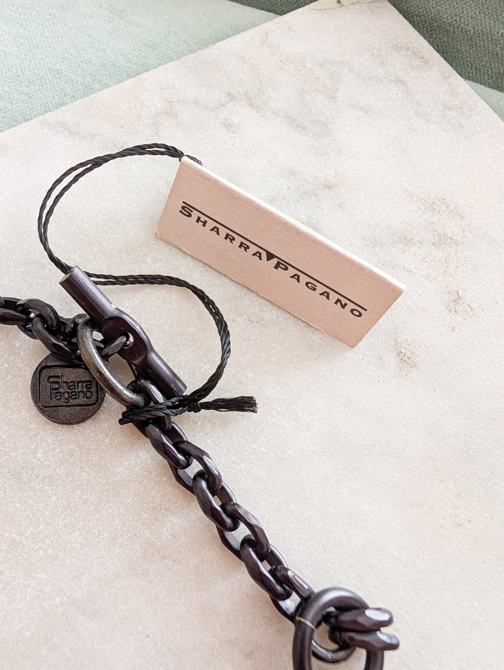 Grand collier signé du créateur Sharra Pagano. Il date des années 90. Le collier présente toujours son étiquette d'origine.