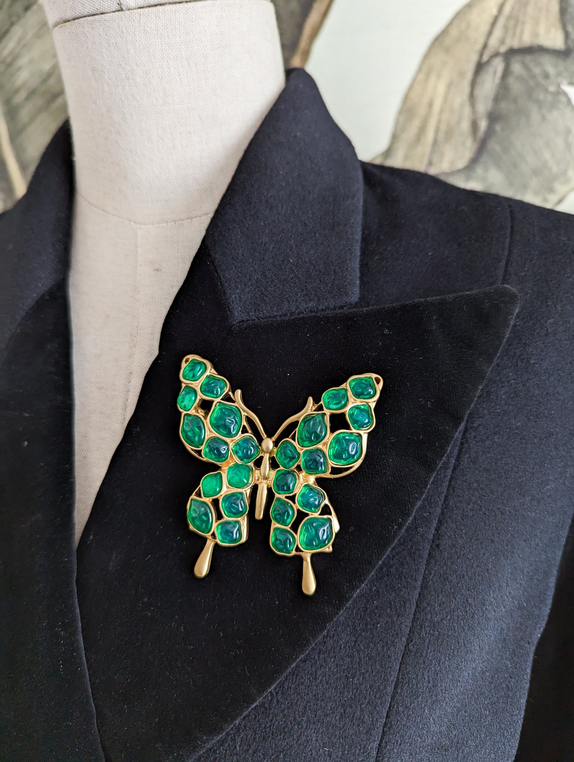 Très belle et grande broche en forme de papillon. Elle est en métal doré mat.