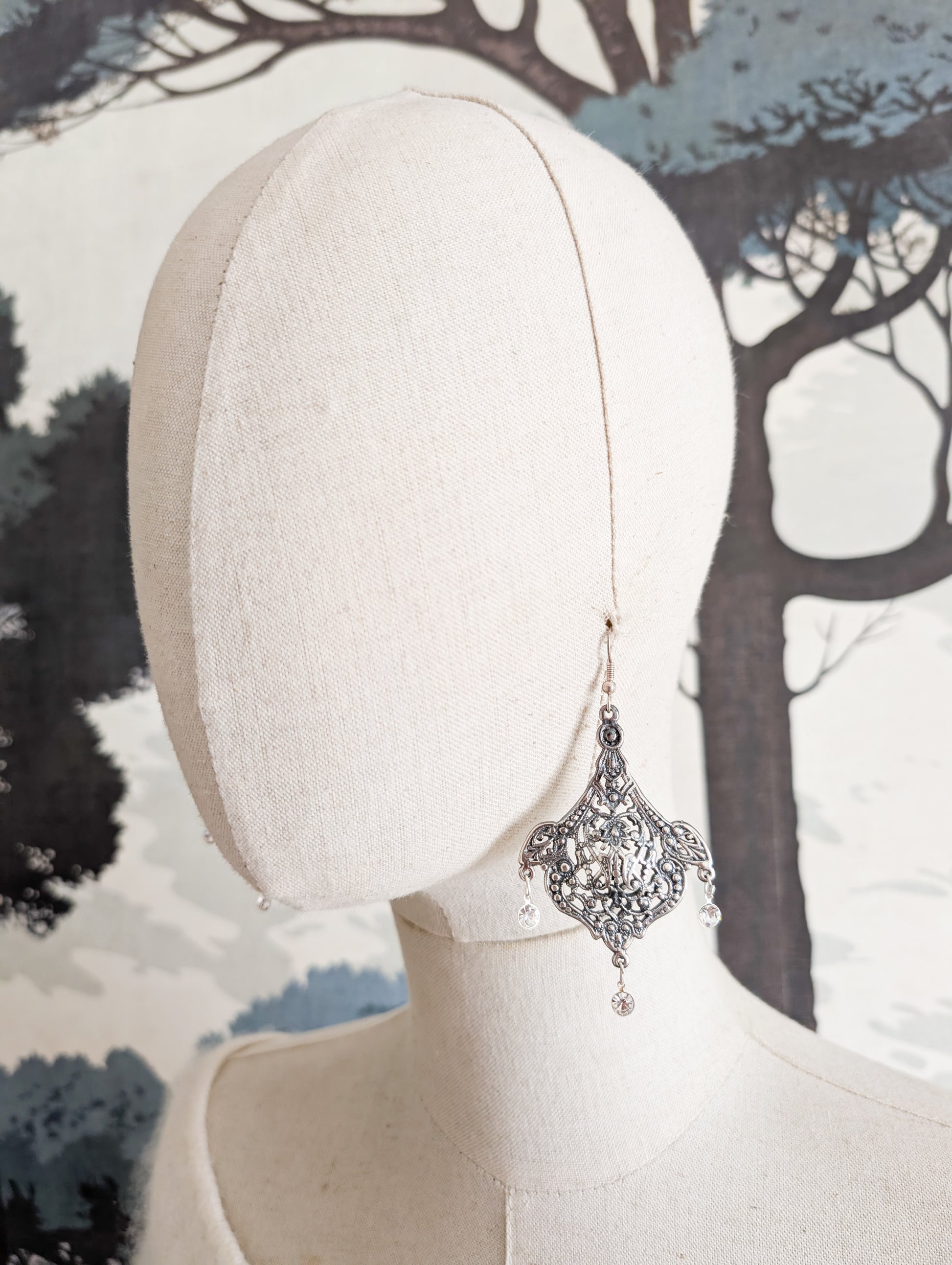 Grandes boucles Art Nouveau pierres blanches