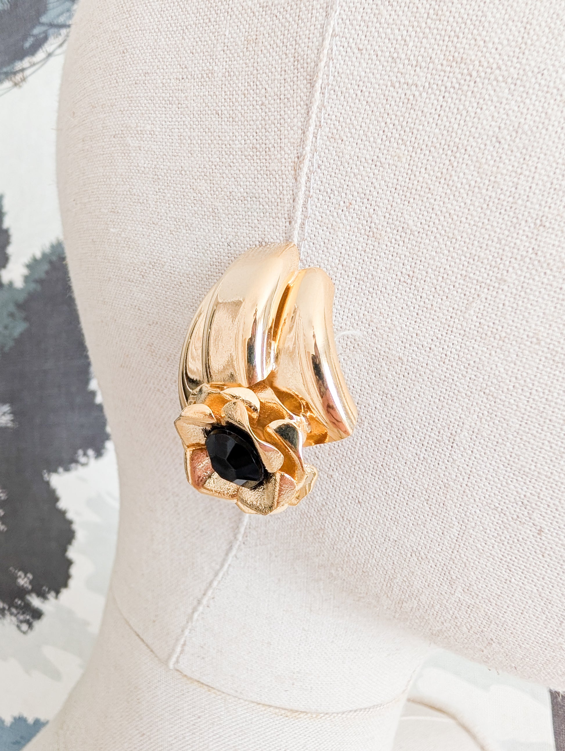 Le travail du métal en relief est remarquable. Une pierre en resine noire au cœur de chaque boucle. Comme le coeur d'une fleur.