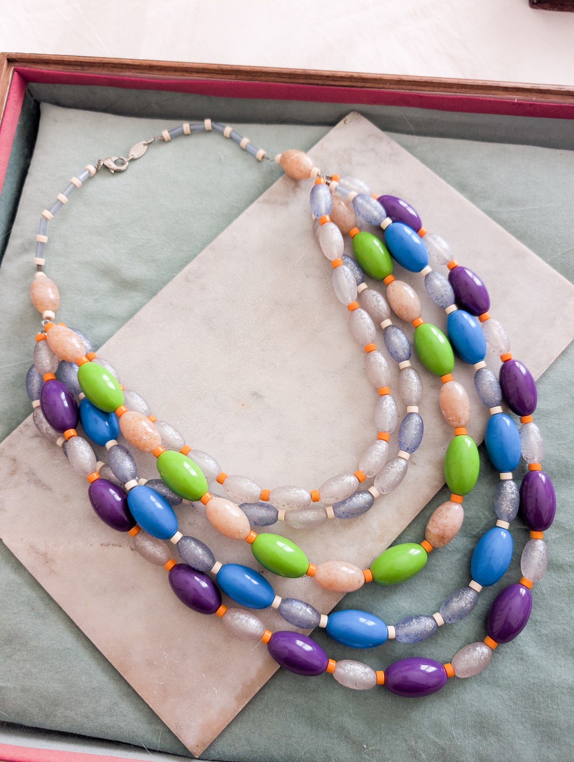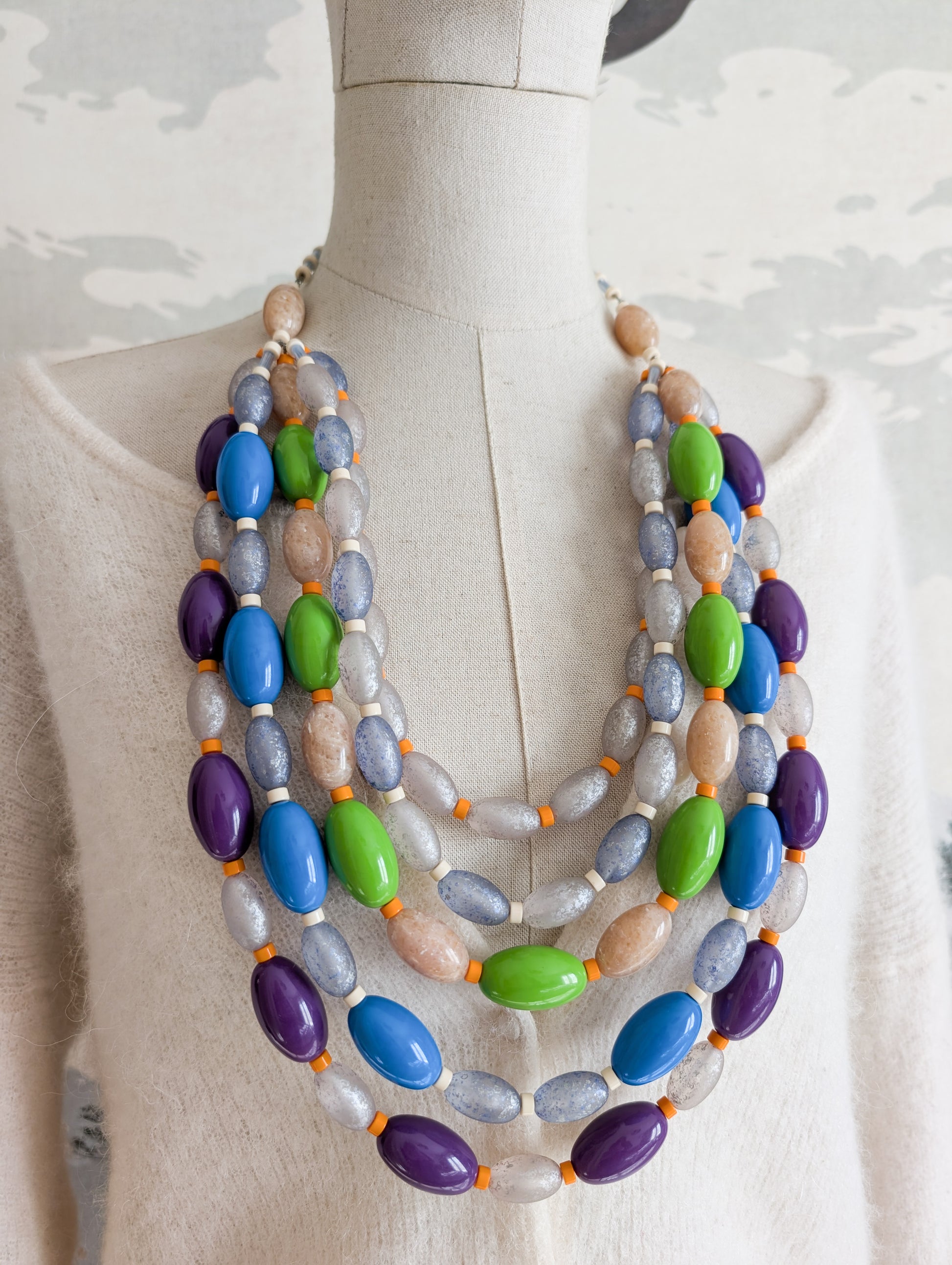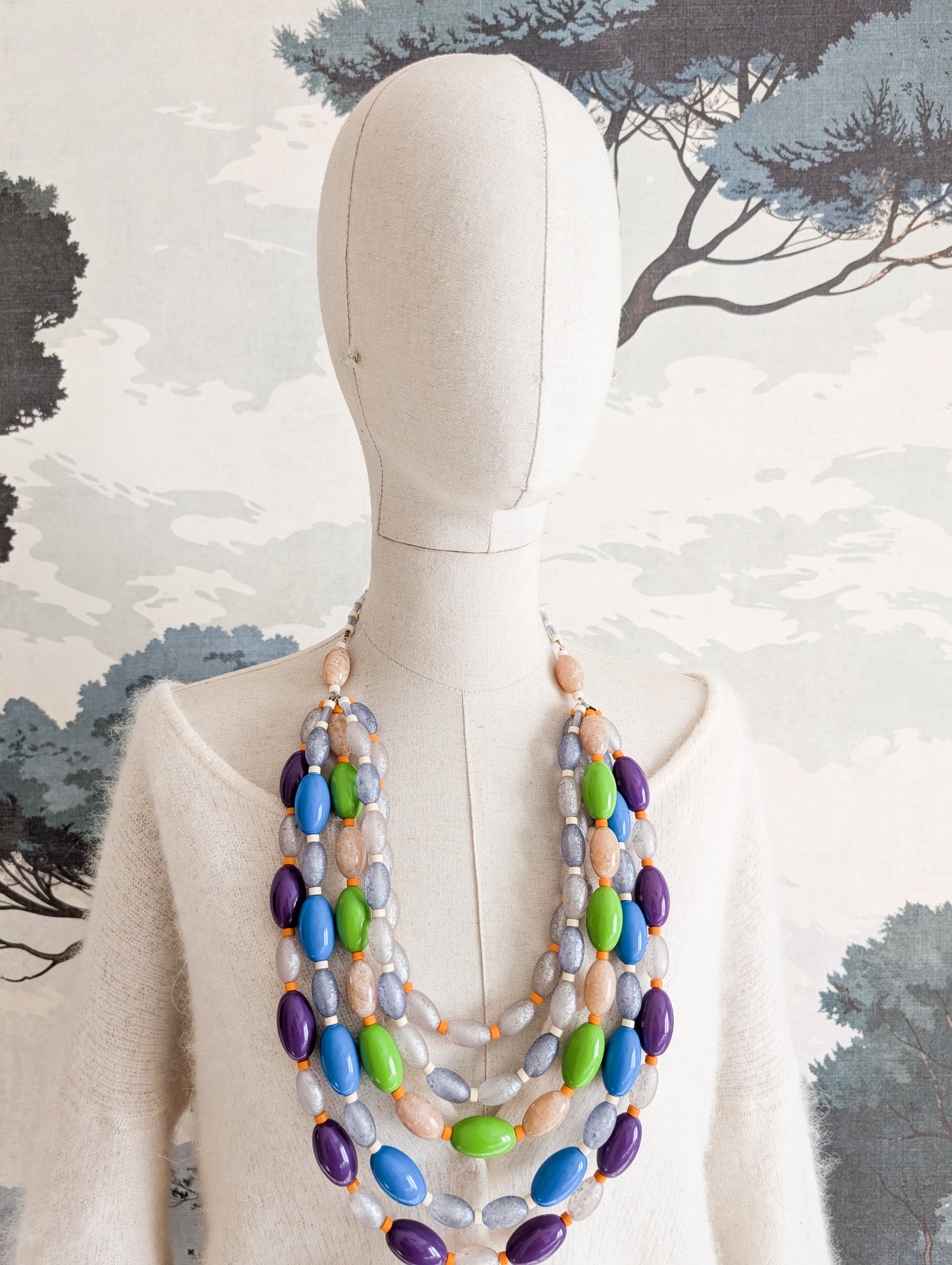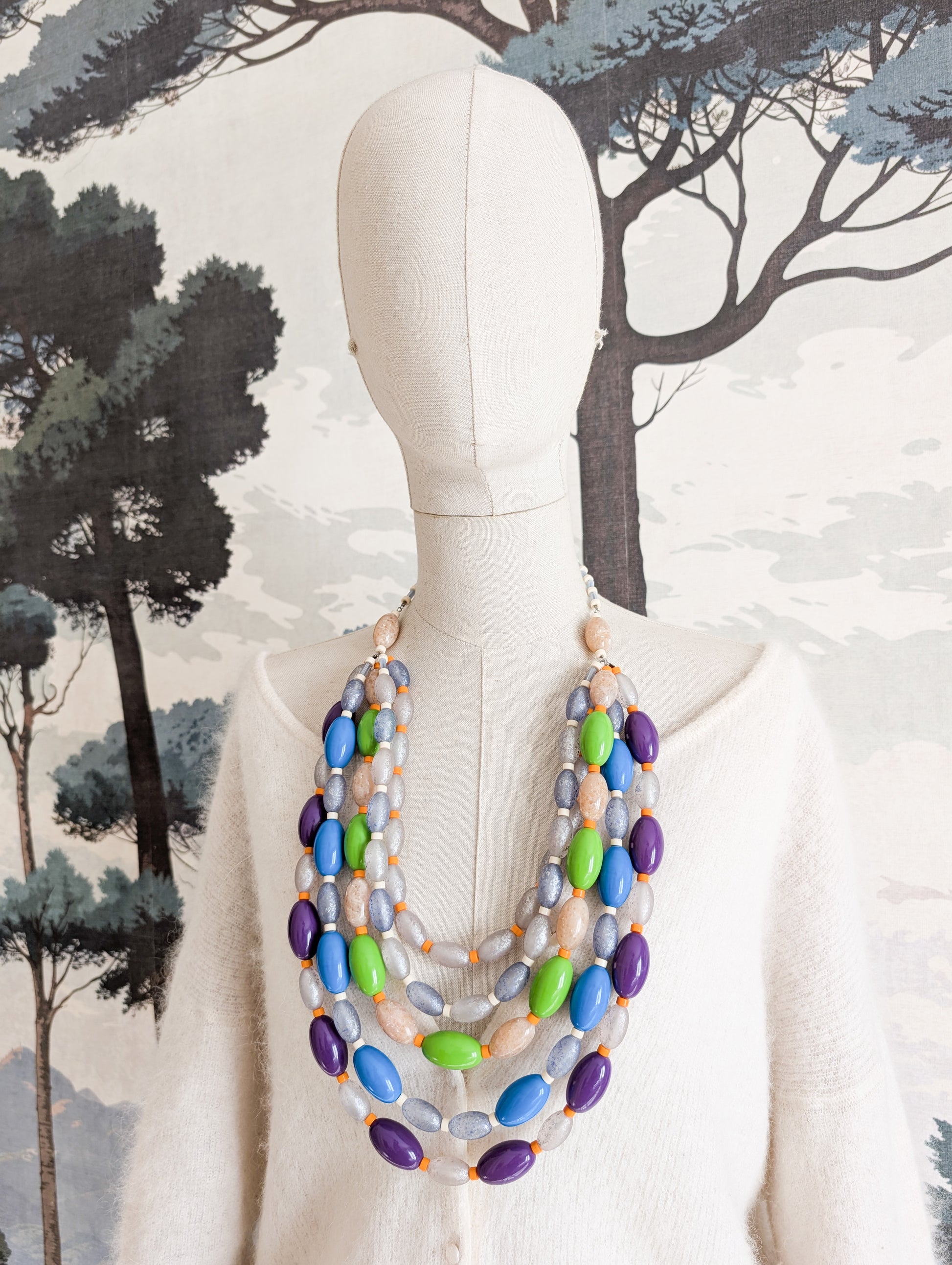Le collier est à proprement parler exceptionnelle . Il est composé de 5 rangs de grandes perles en résine être plastique.