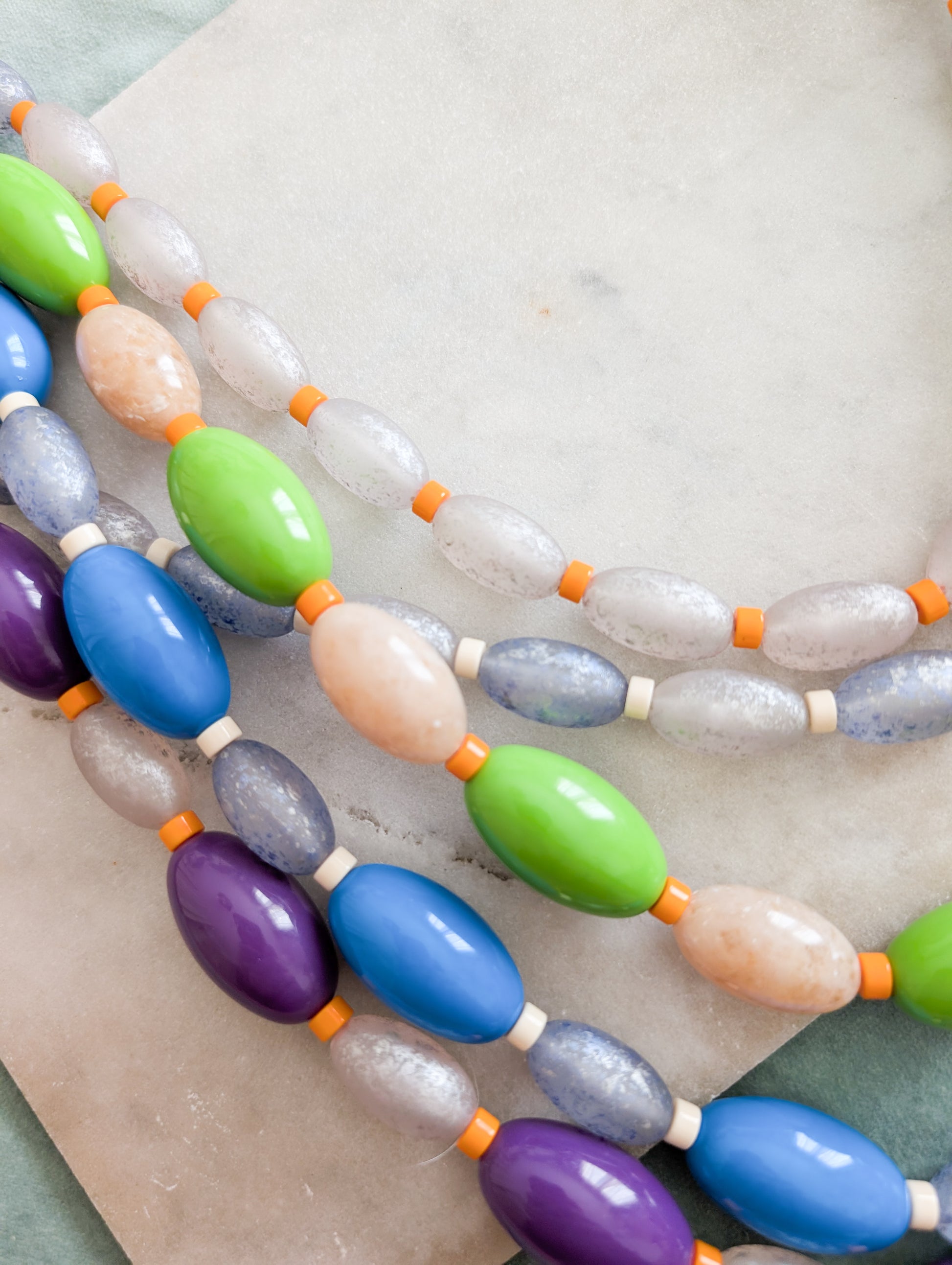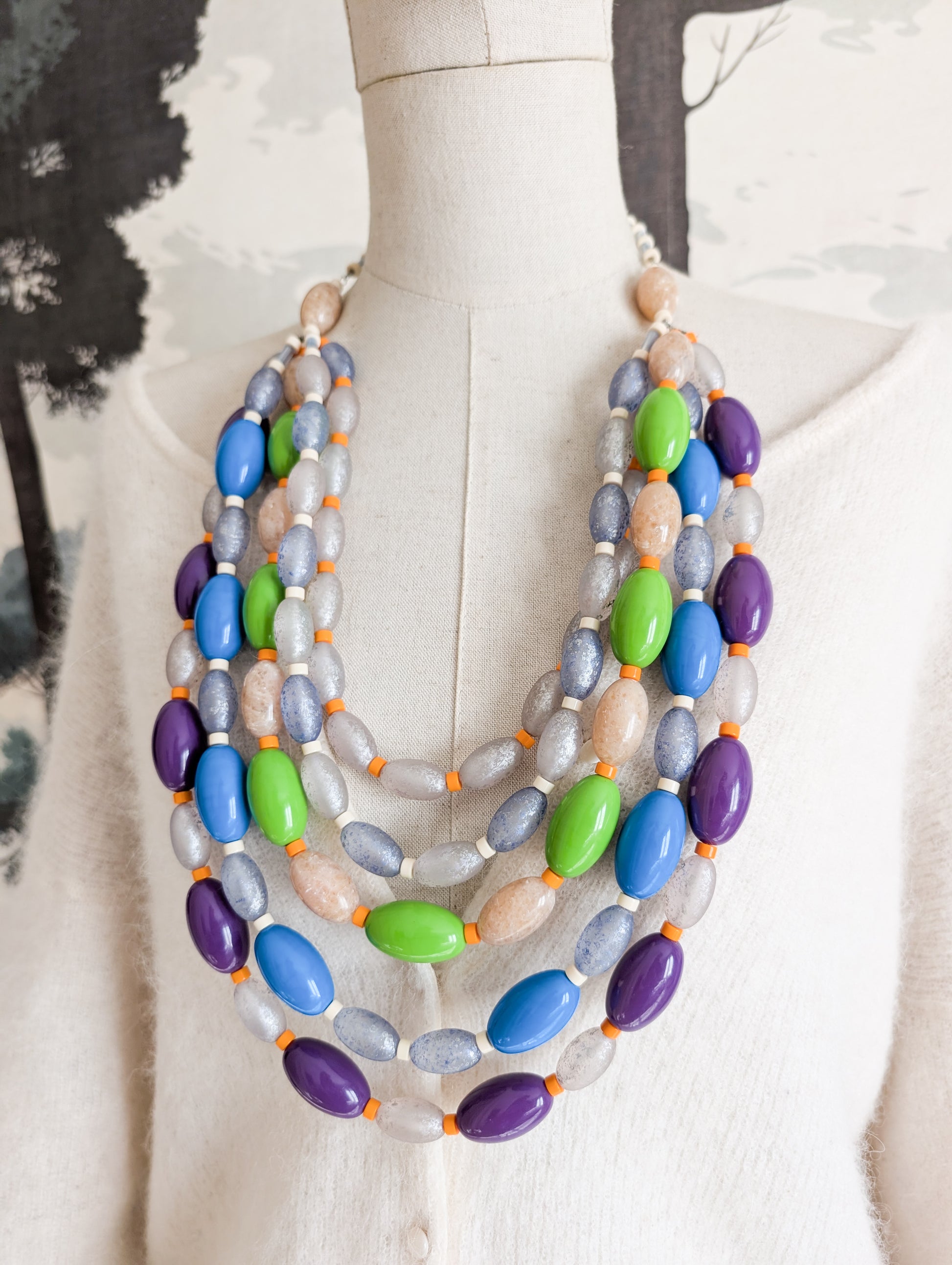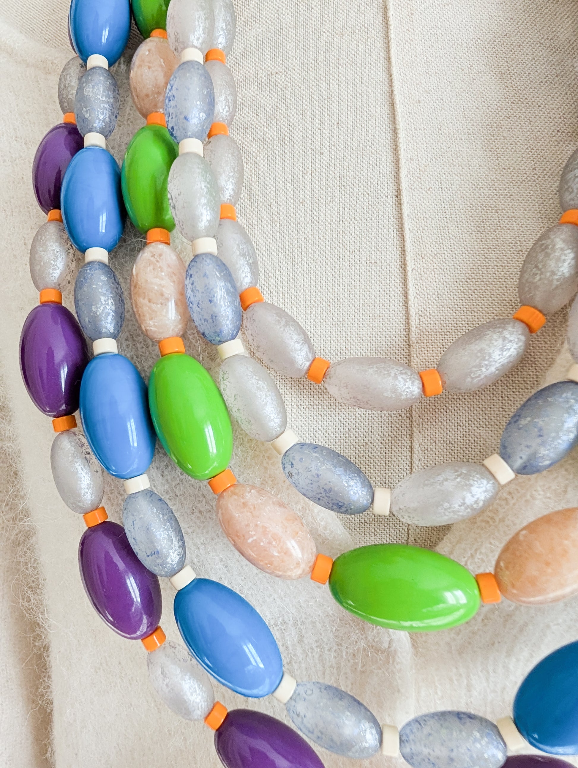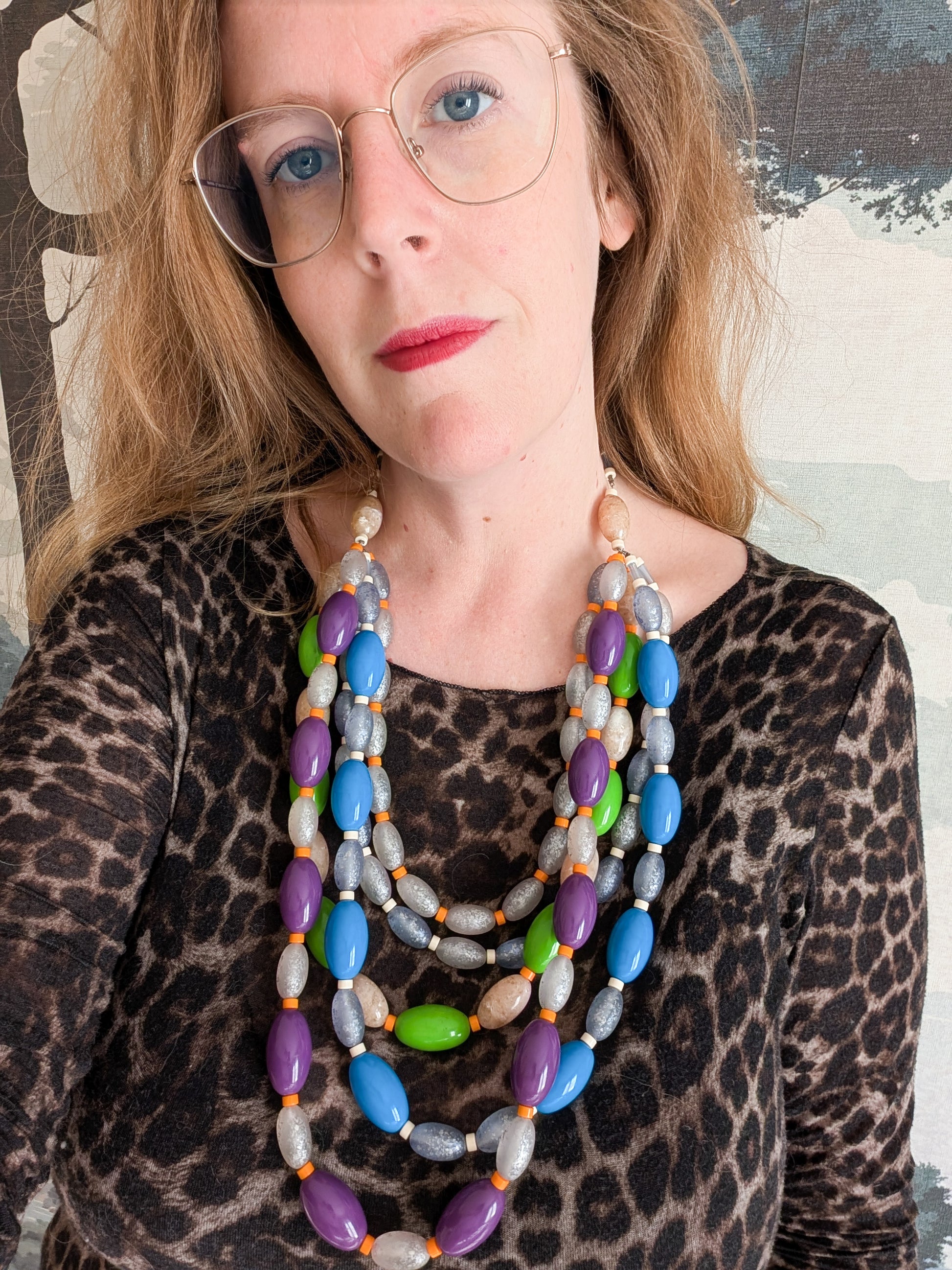Le collier est à proprement parler exceptionnelle . Il est composé de 5 rangs de grandes perles en résine être plastique.