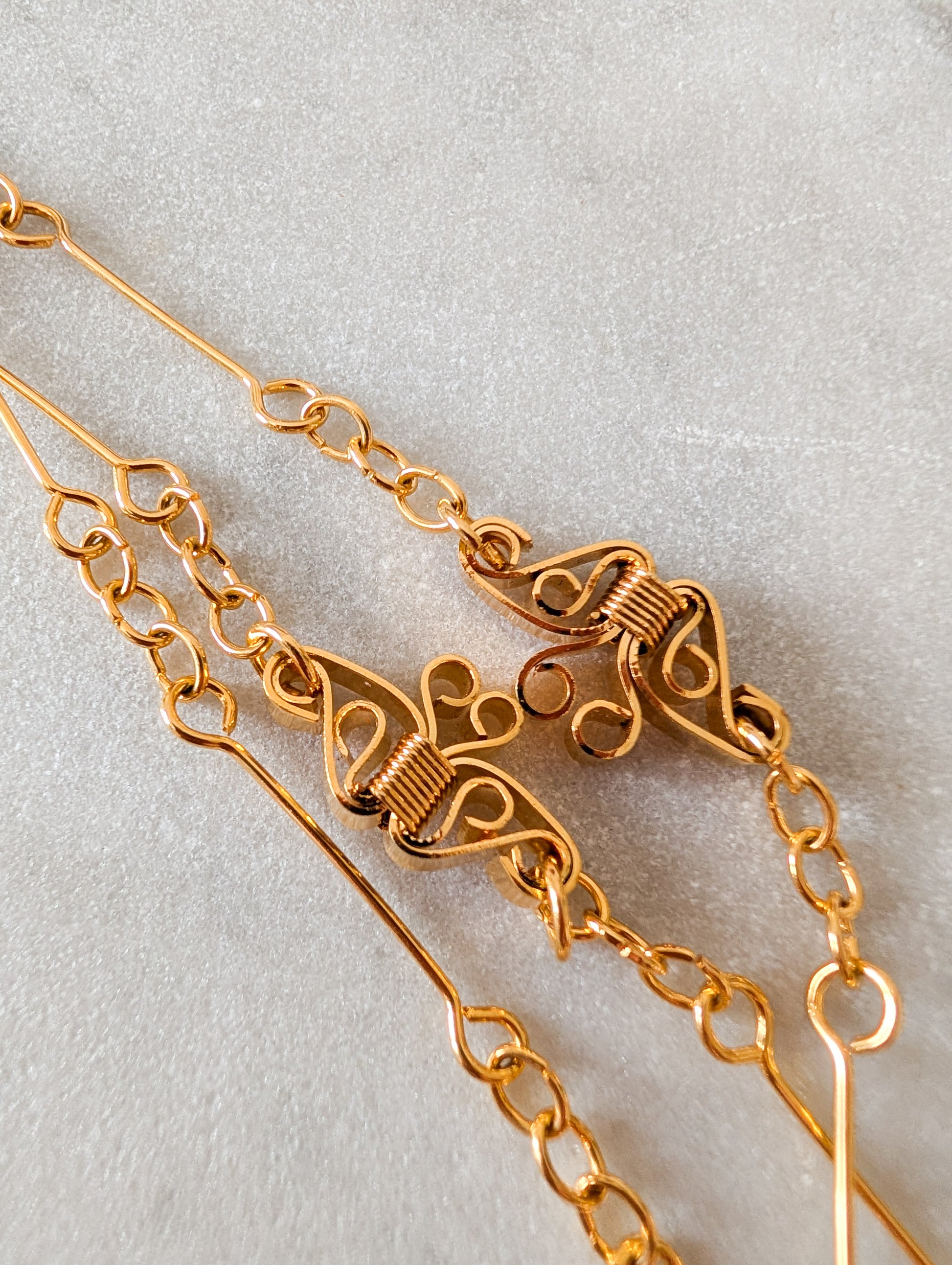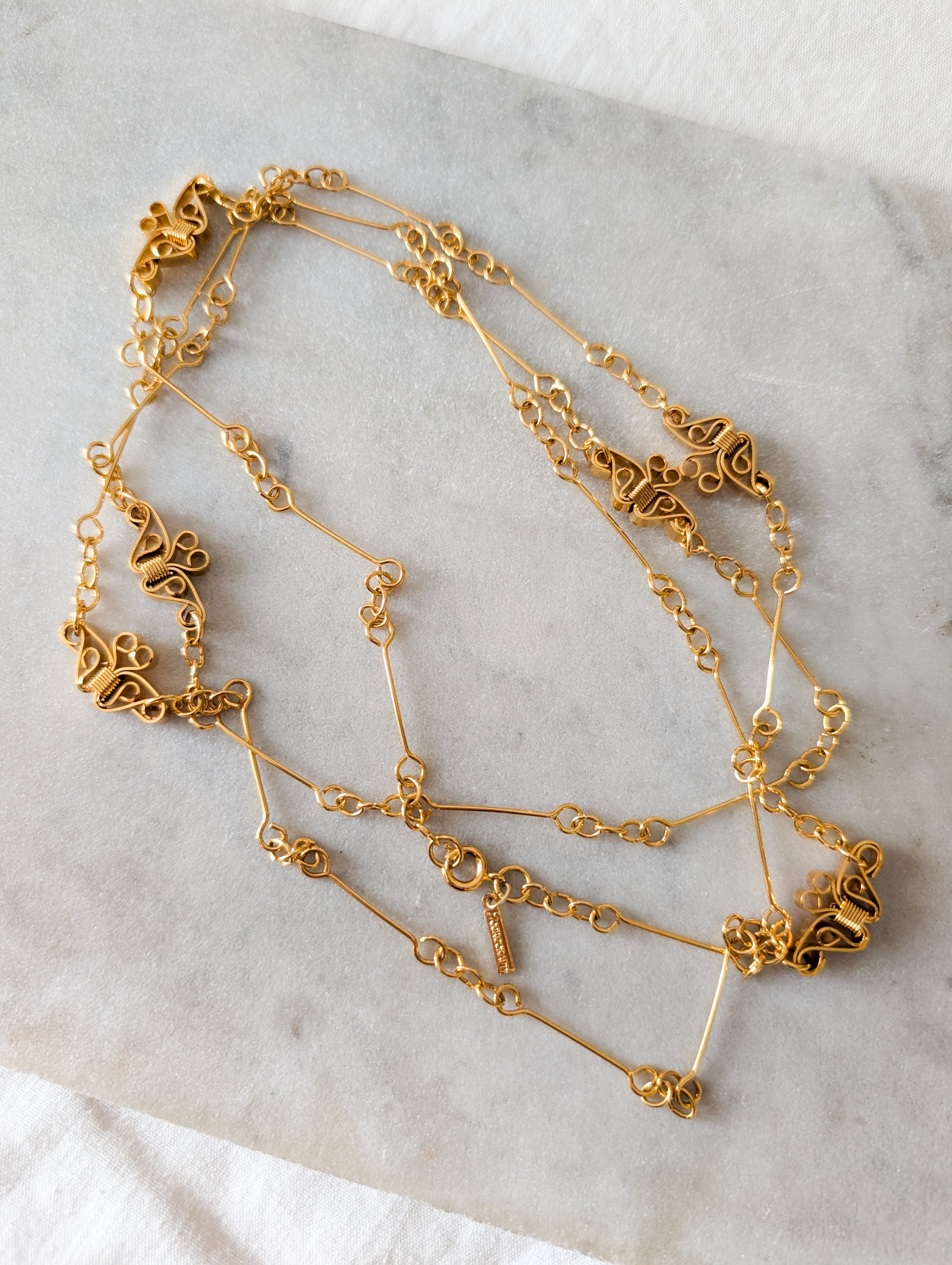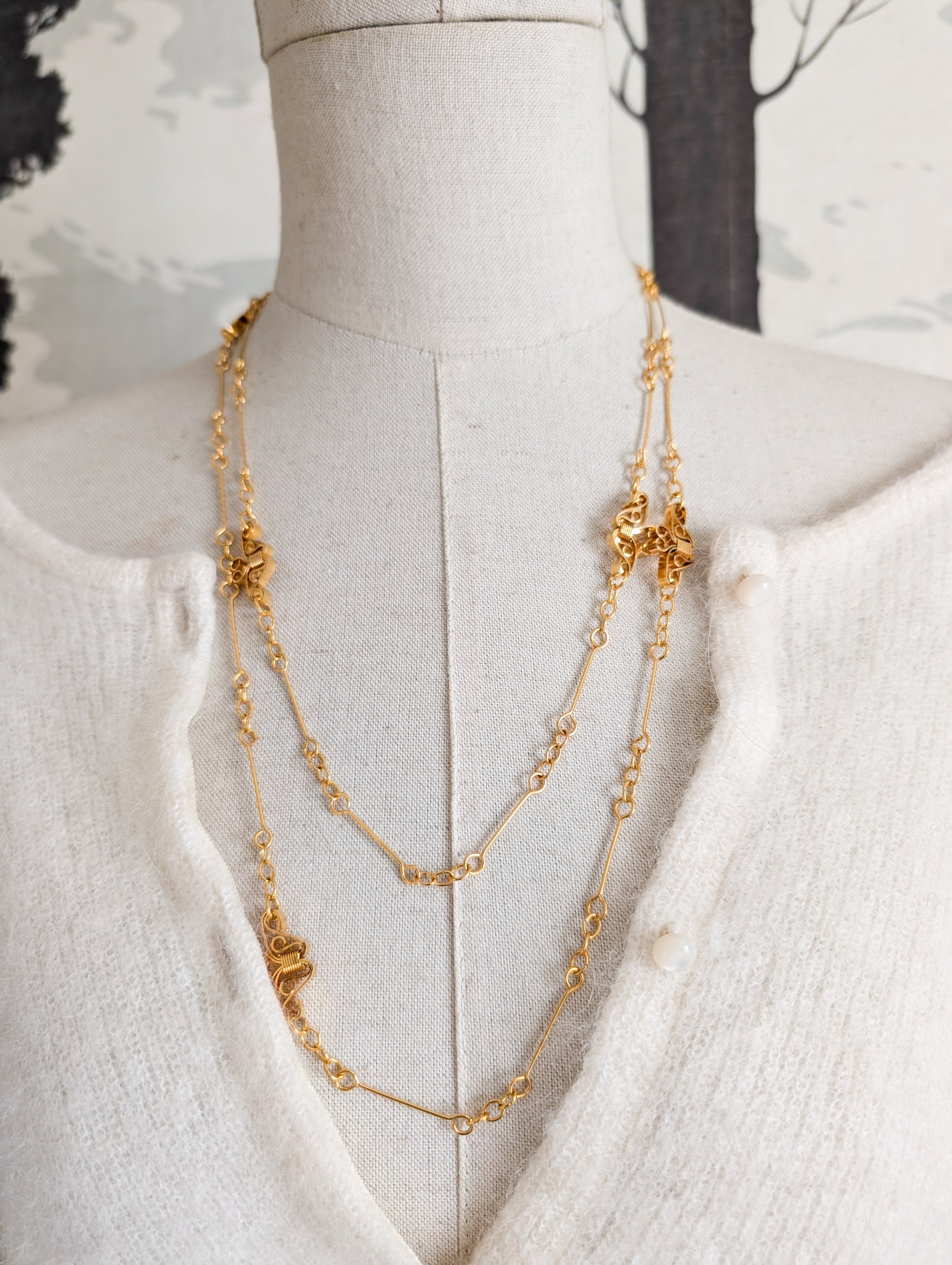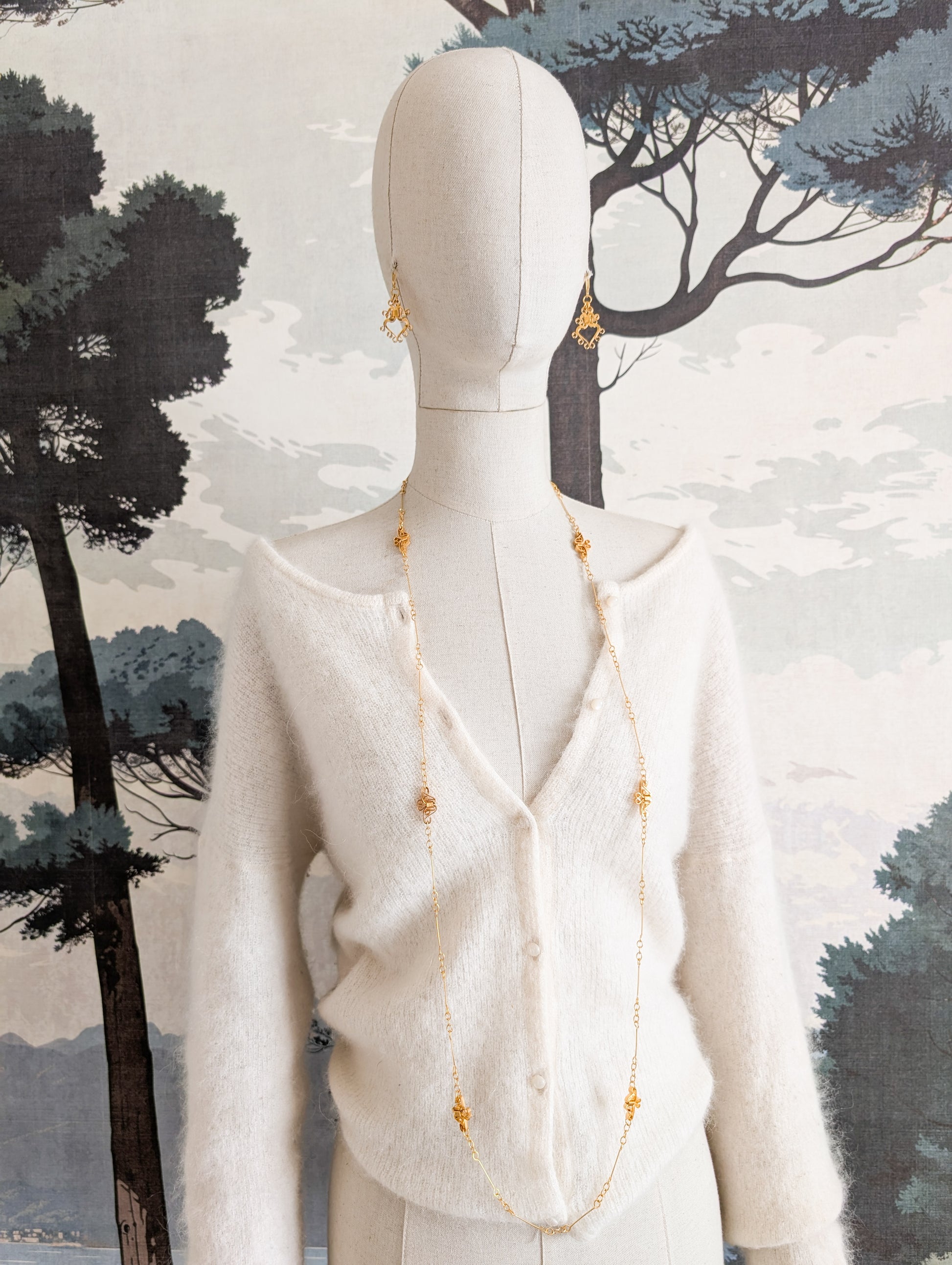 Le collier est très long, il peut être porté en rang simple, double ou même triple !