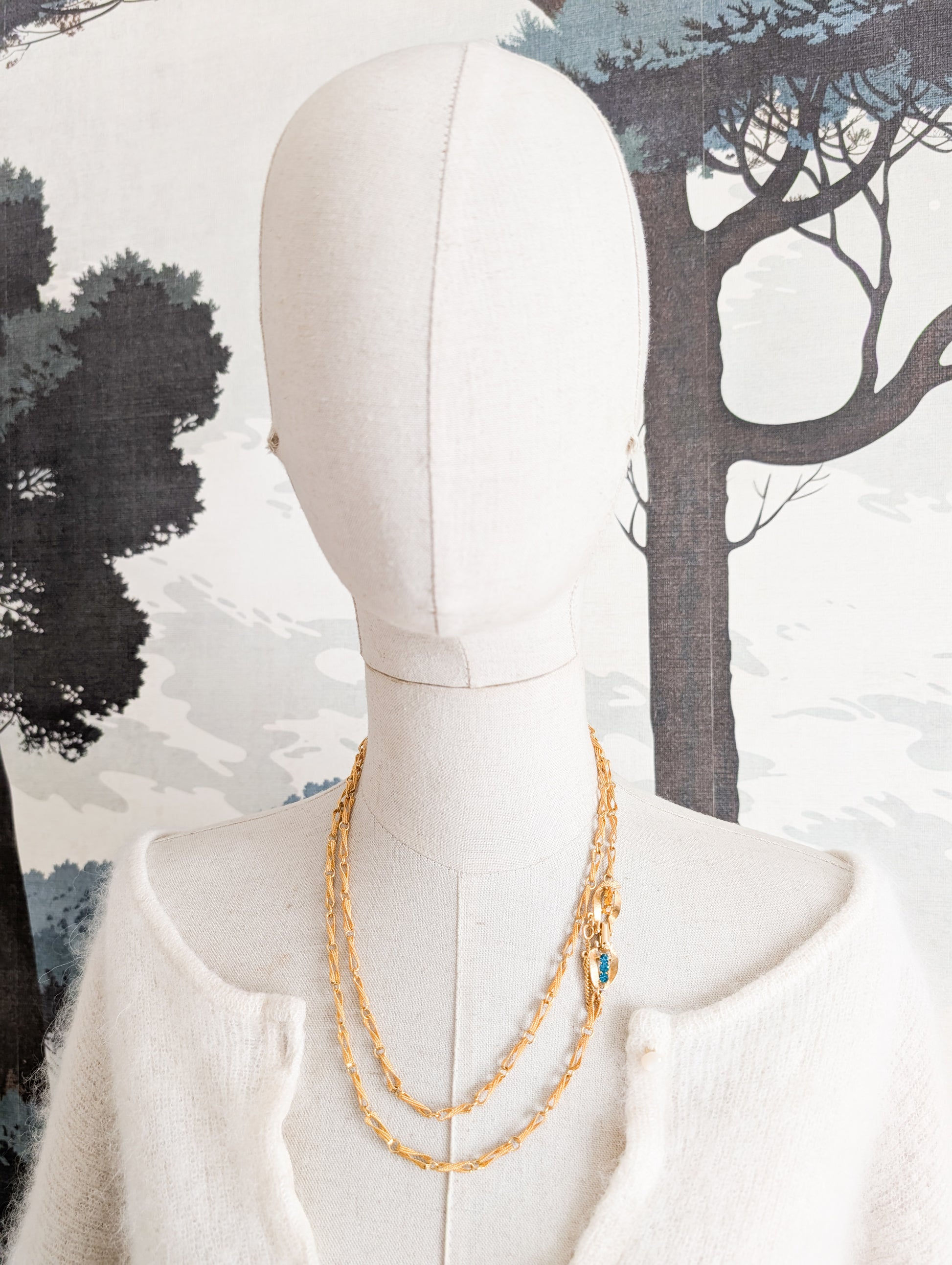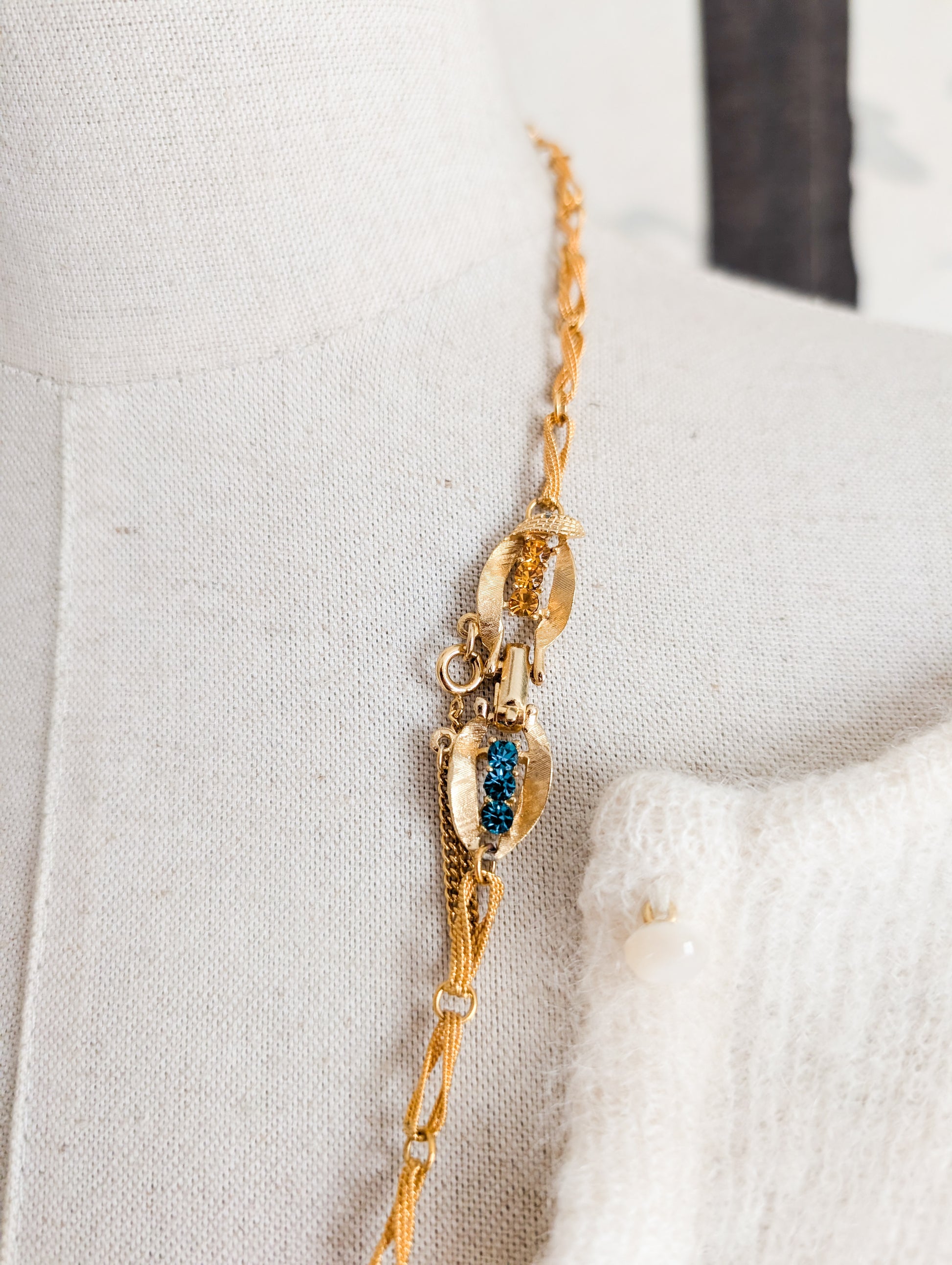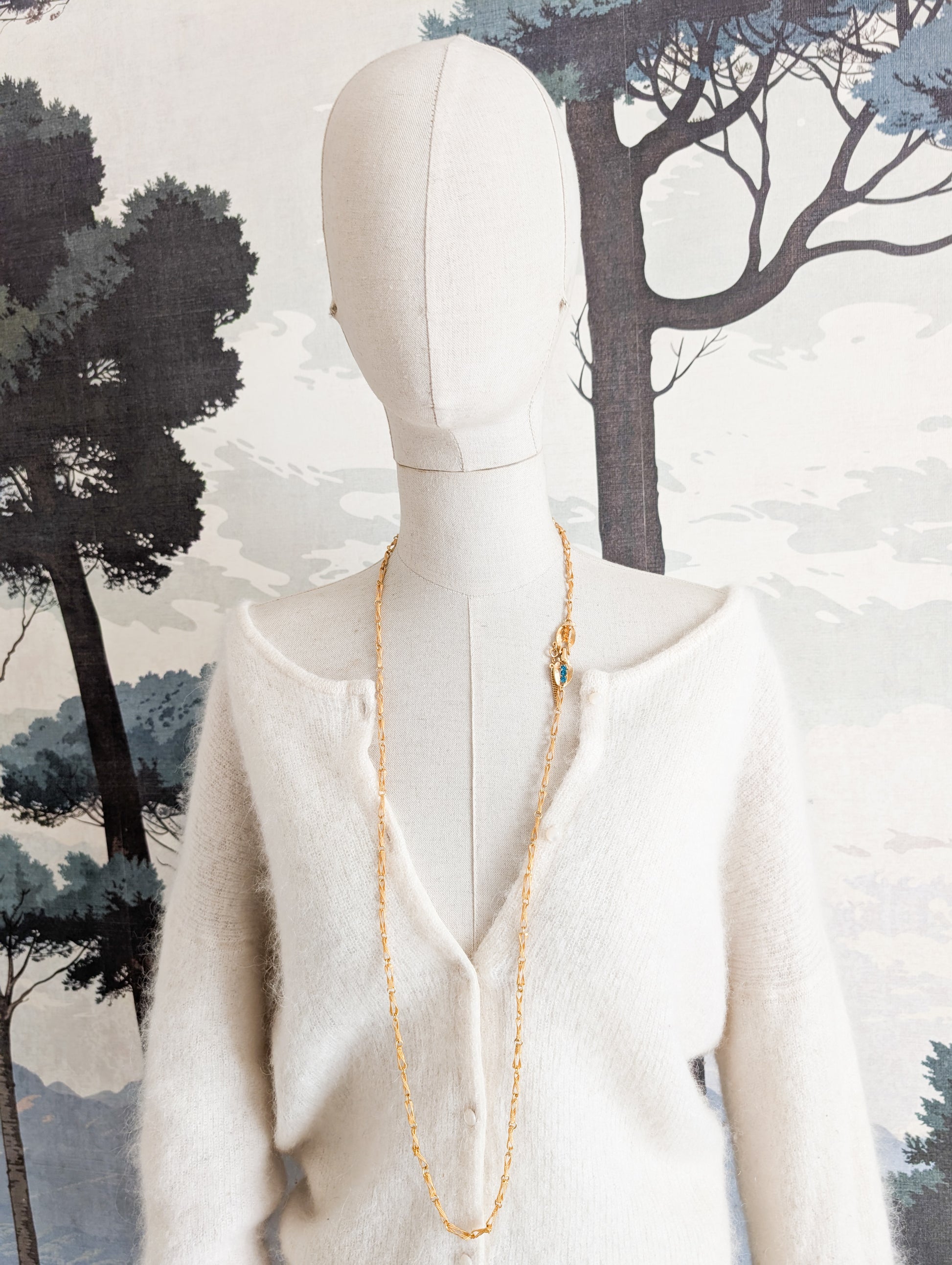 Magnifique collier sautoir datant des années 70. Il provient des ateliers de fabrication de la maison Corocraft (même si il n'est pas signé, c'est un bijou Corocraft.).