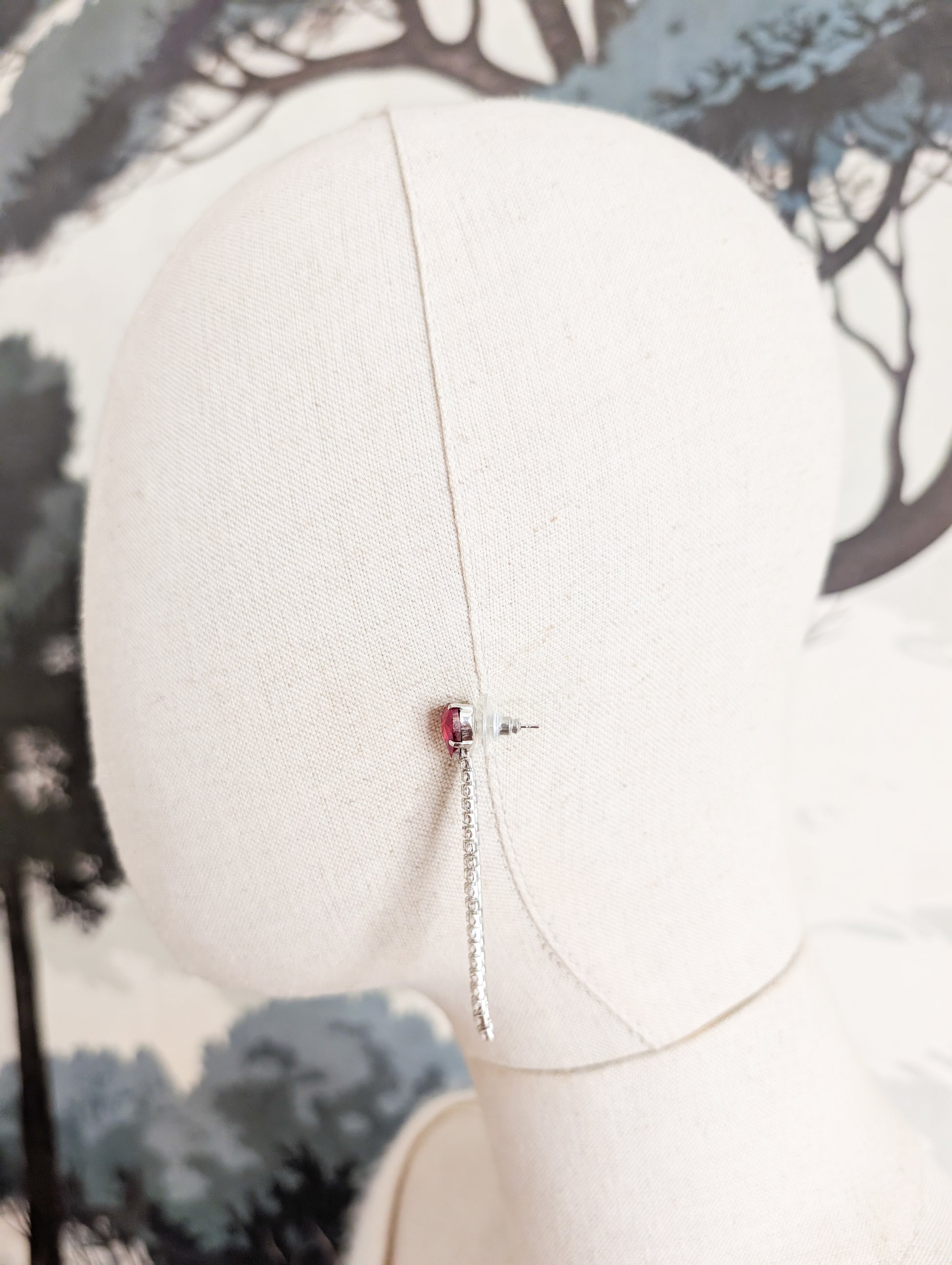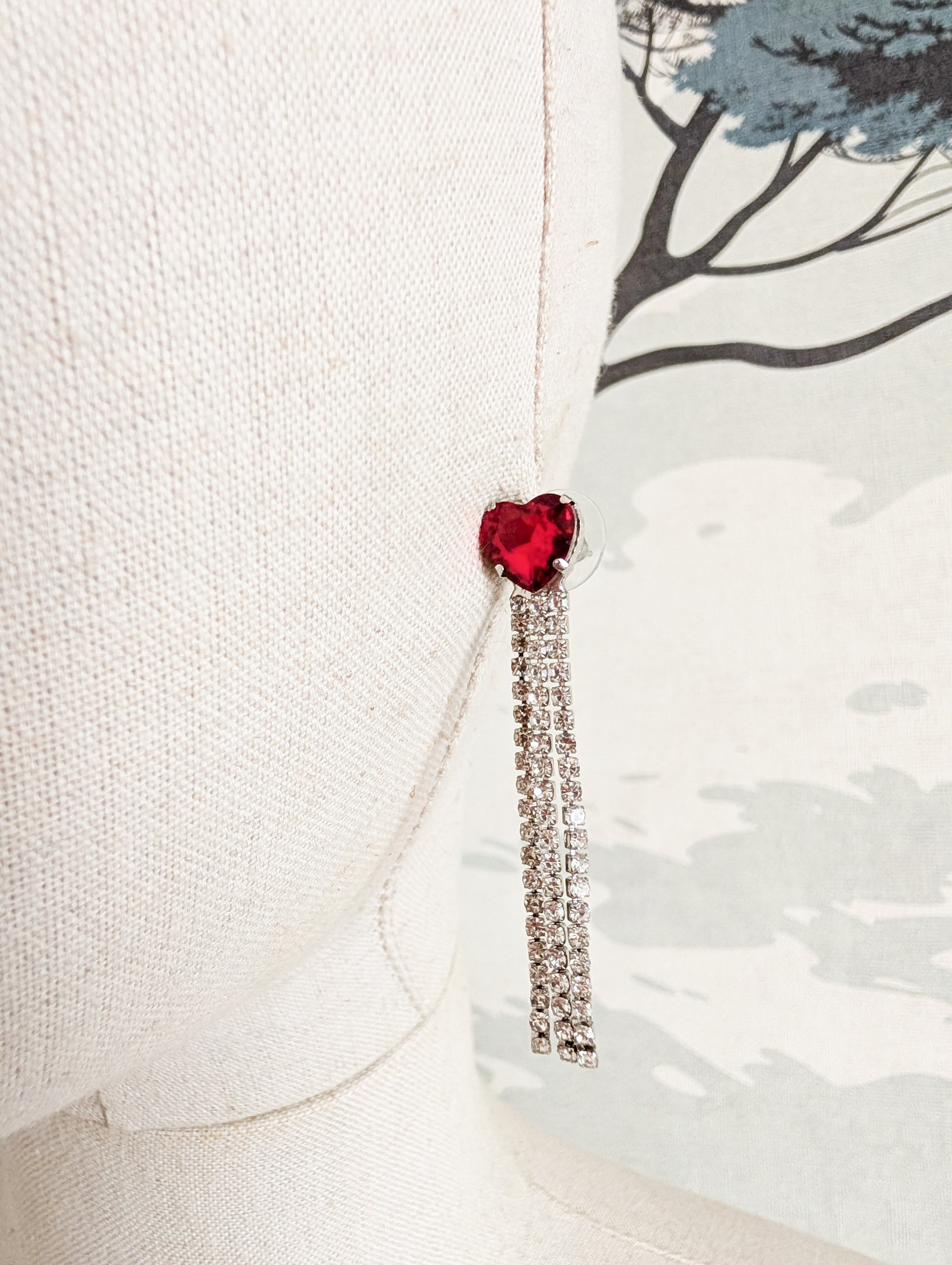 Les boucles présentent un coeur strass en verre rouge en forme de coeur et de petits strass en verre blanc.