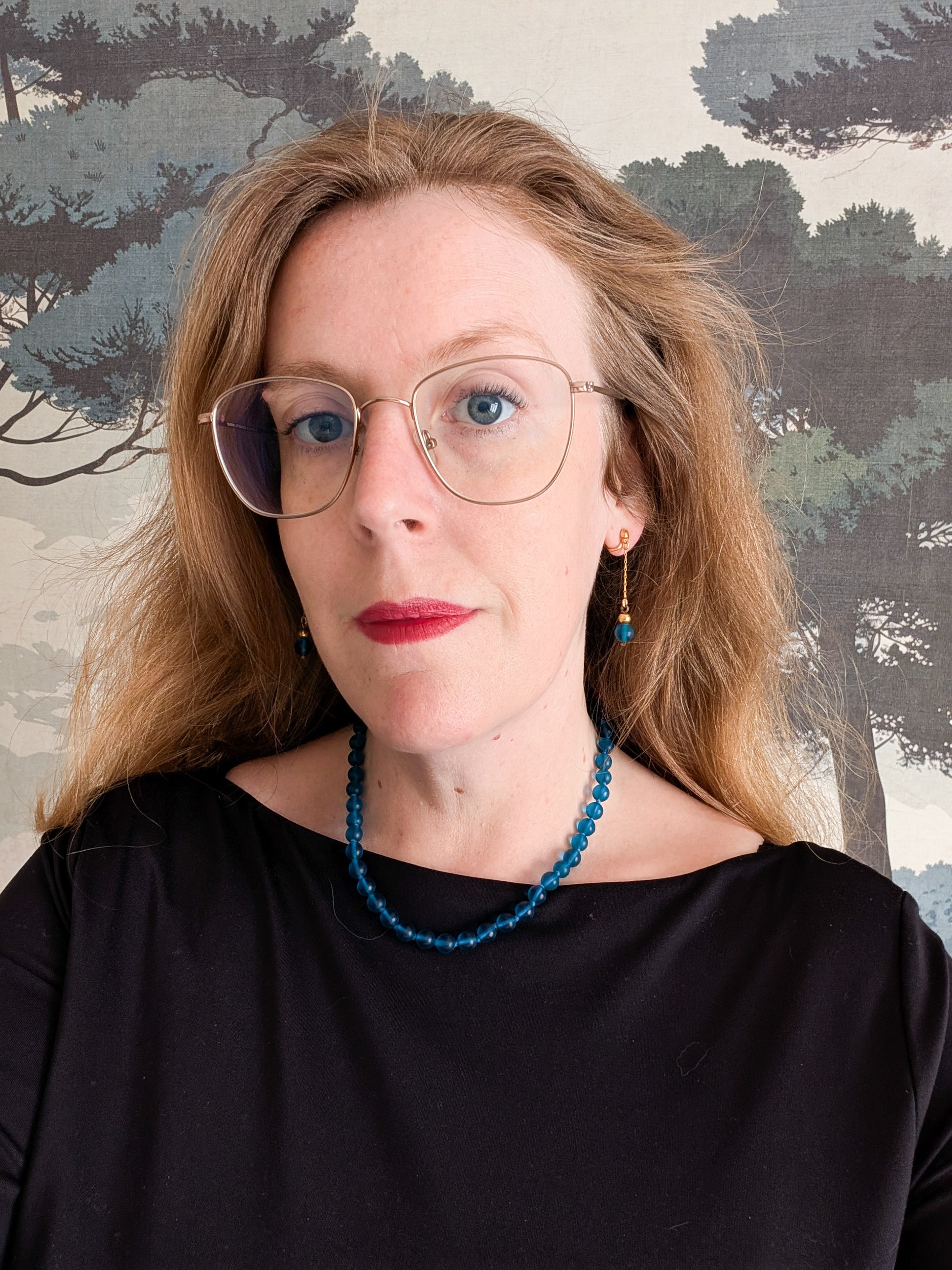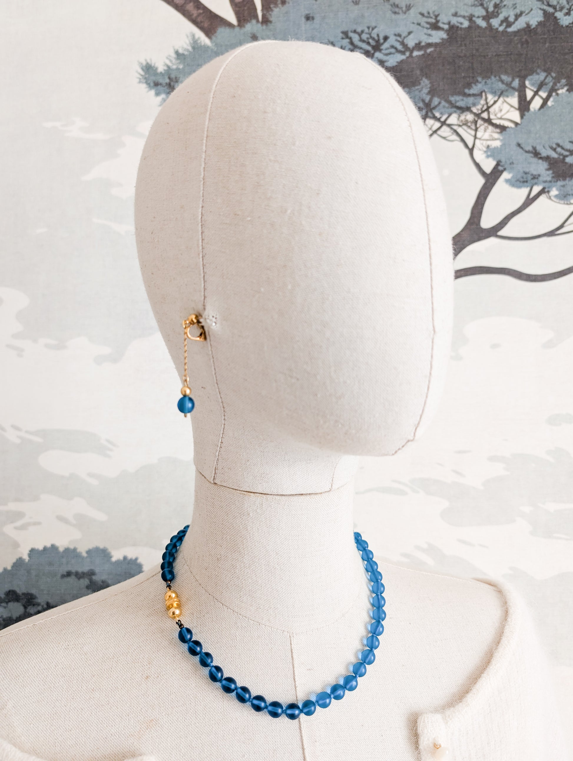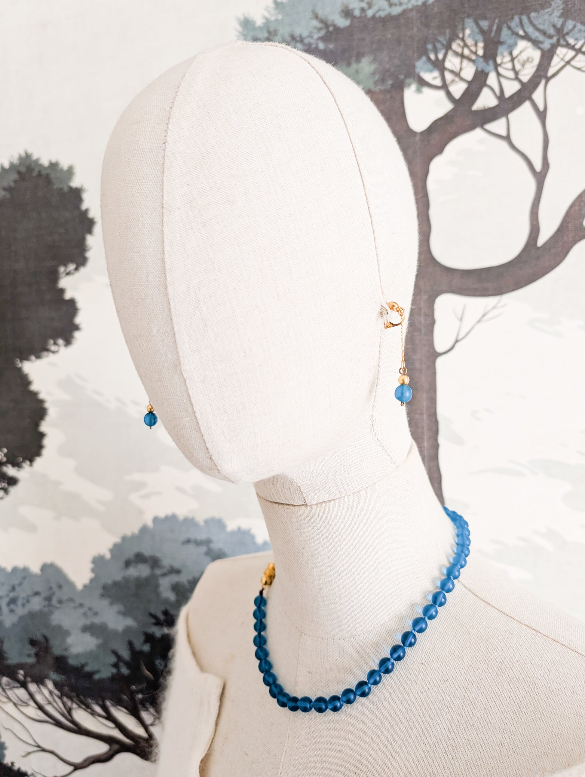 Les bijoux sont composés de perles en verre bleu. Les perles sont mat et translucides, absolument merveilleuses.