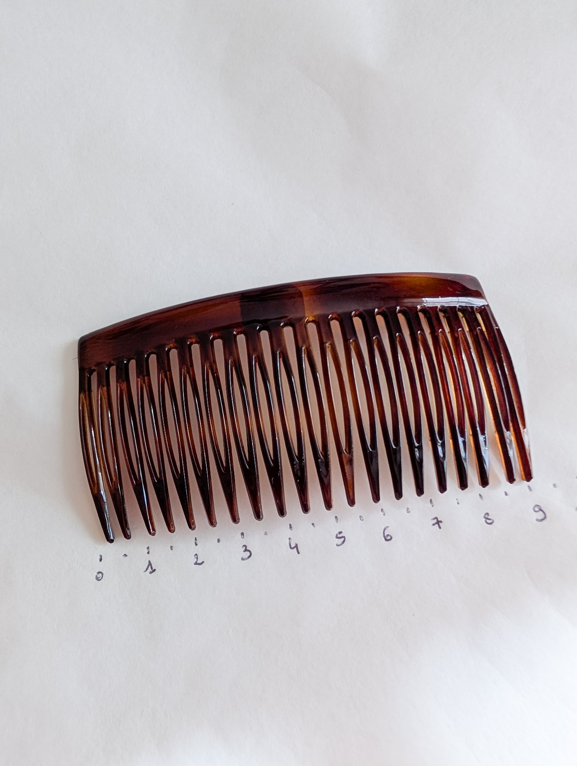 La pièce provient du stock d'un atelier de fabrication de barrettes et bijoux de cheveux situé dans le Jura. Le Jura est le berceau de l'industrie du plastique français. On y fabrique des pièces de très grande qualité.