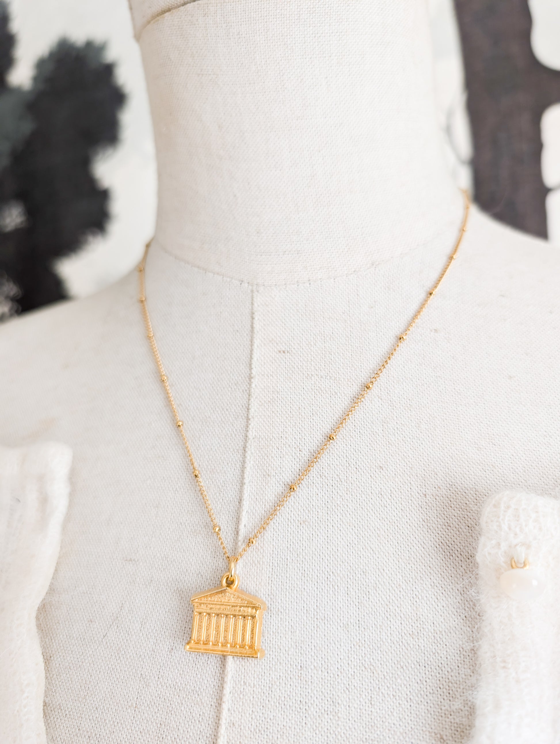 Très beau pendentif représentant la Madeleine à Paris. Le pendentif est une fève réalisée par Aria Nordia au début des années 90.