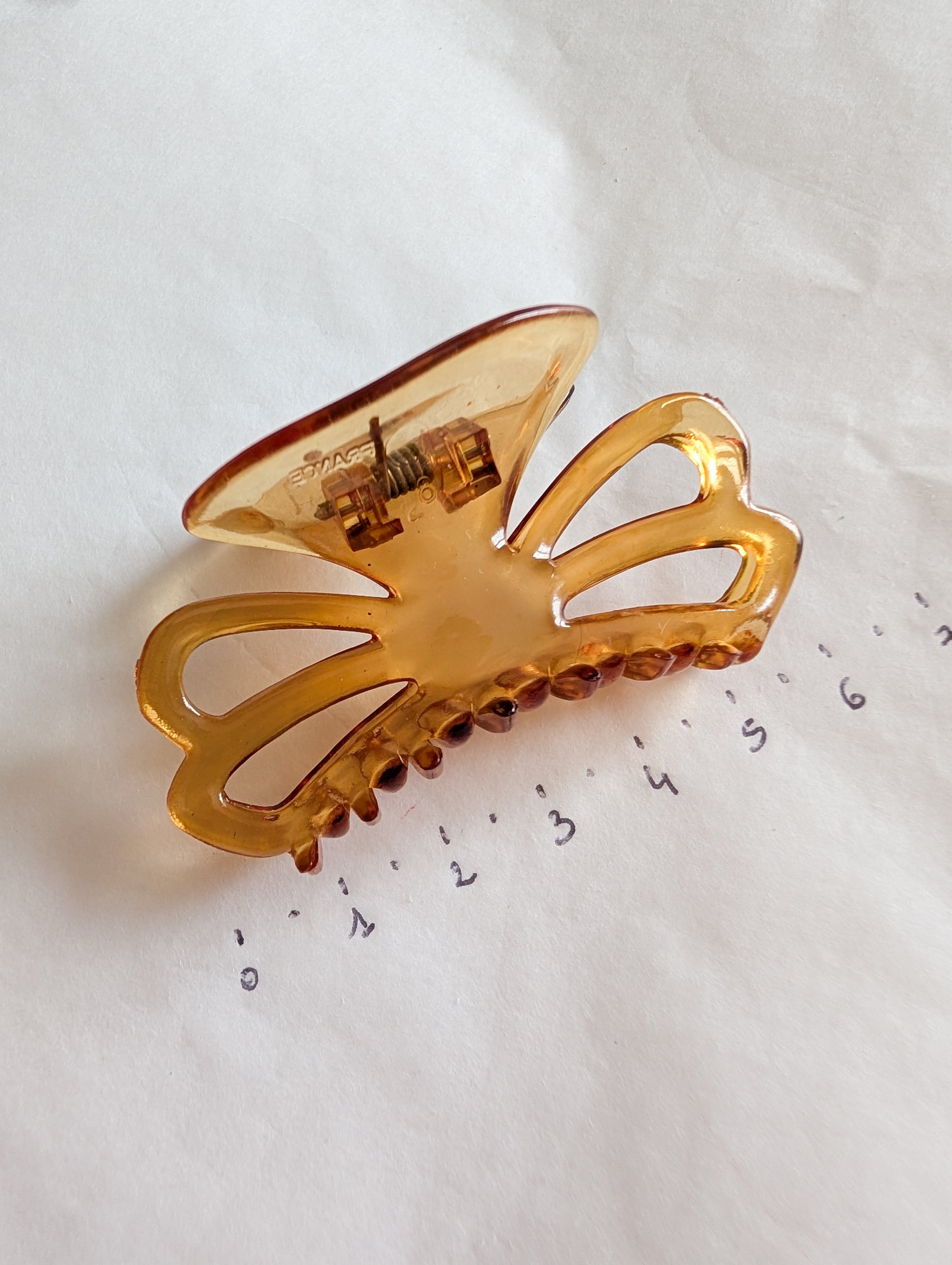 La pièce provient du stock d'un atelier de fabrication de barrettes et bijoux de cheveux situé dans le Jura. Le Jura est le berceau de l'industrie du plastique français. On y fabrique des pièces de très grande qualité.